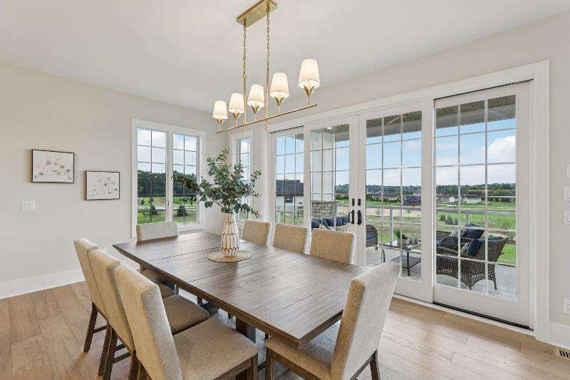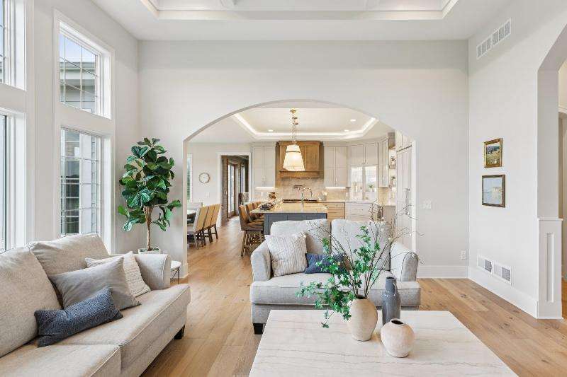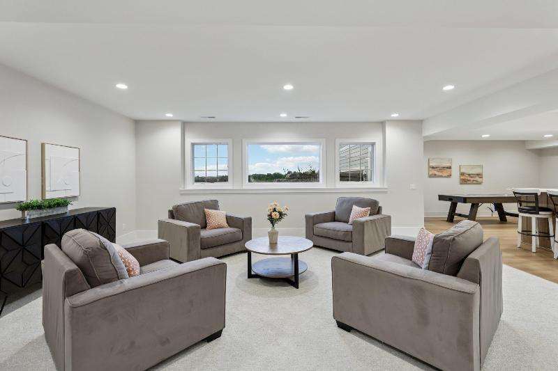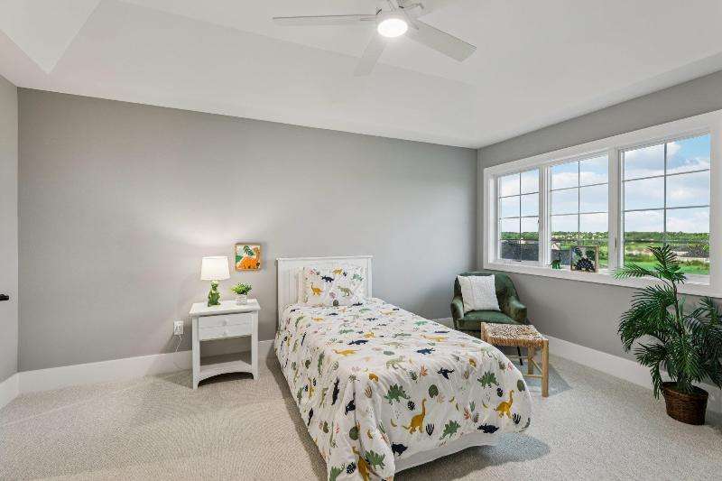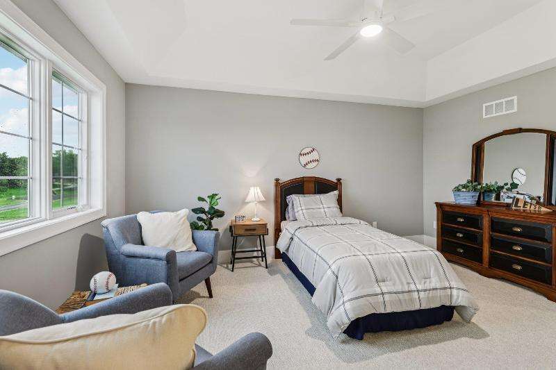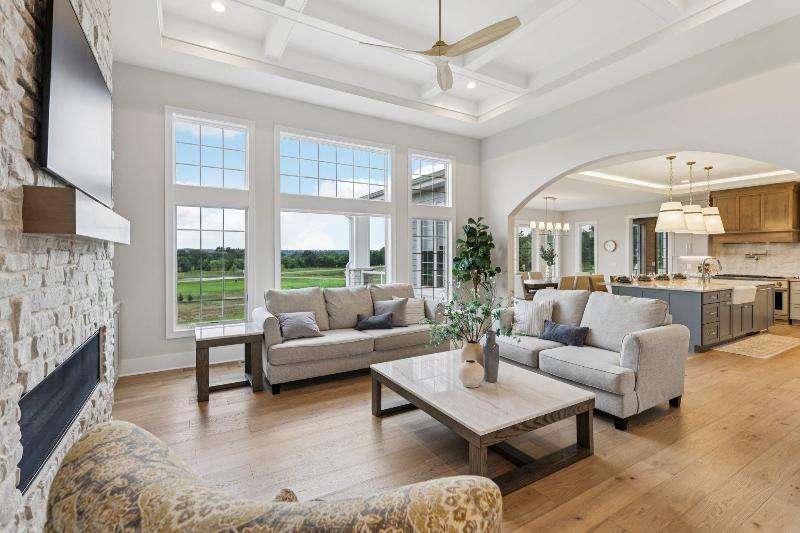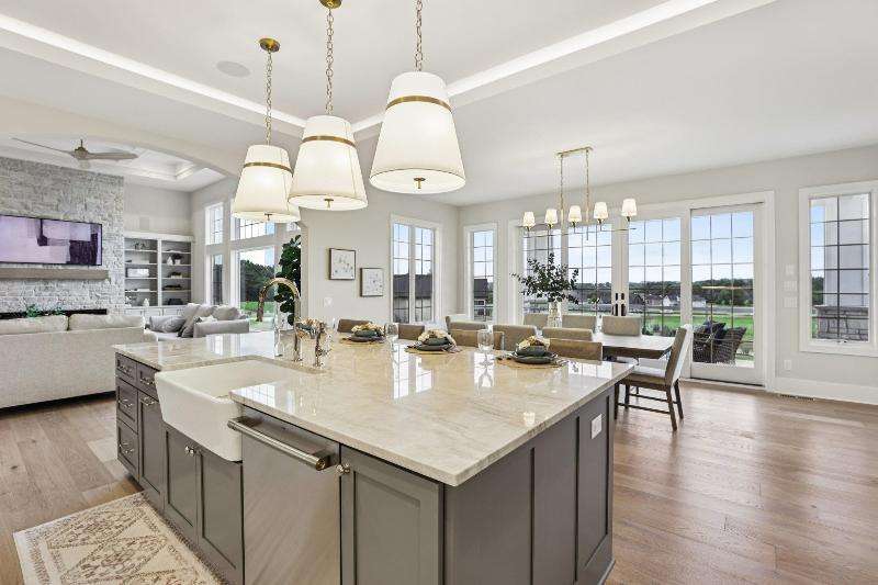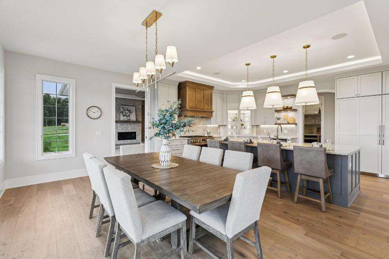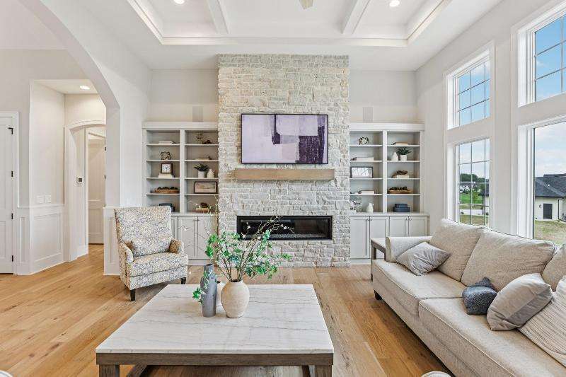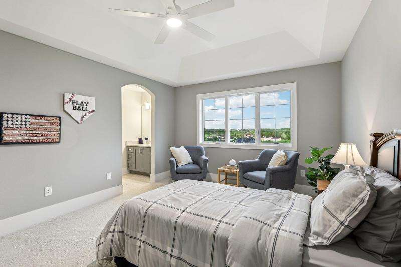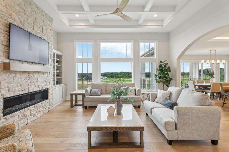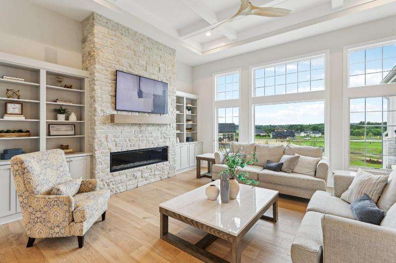 Exceptional 5-bedroom new build by Victory Homes of WI! Filled with natural light, this home features soaring ceilings and walls of windows. The chef's kitchen and spacious dining area open to a large covered porch--perfect for outdoor entertaining. A stunning 4-season hearth room with rustic beams and a stone fireplace adds warmth and charm. The main floor owner's suite offers a spa-like retreat with a tiled walk-in shower, soaking tub, and custom designer closet. Upstairs includes 3 large bedrooms and a dedicated study space. The finished lower level boasts a bar, game area, theater room, 5th bedroom, full bath, exercise/yoga room, and ample storage.