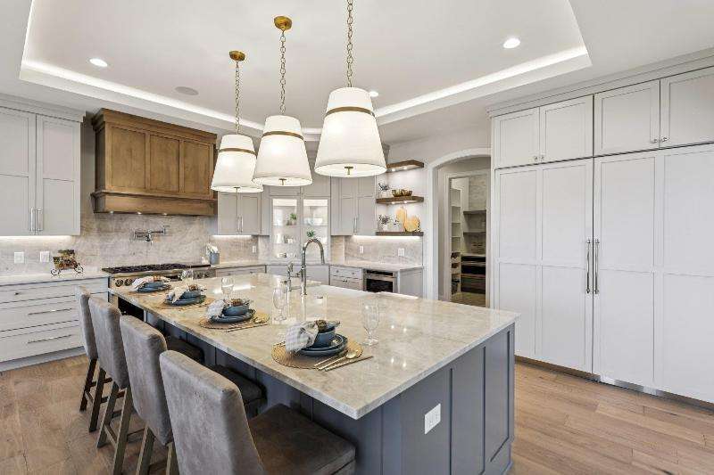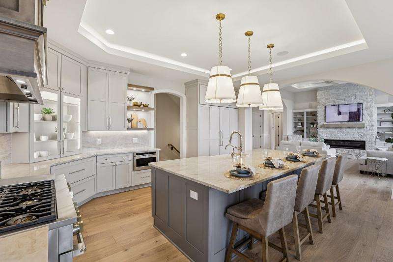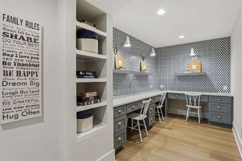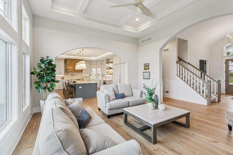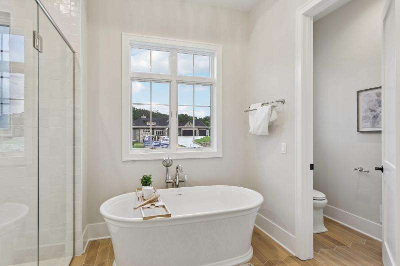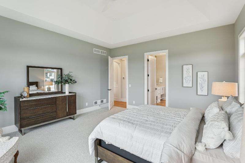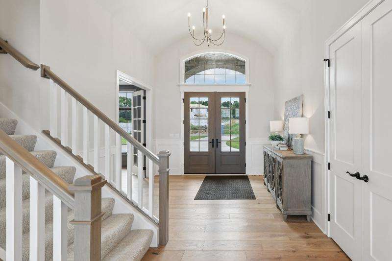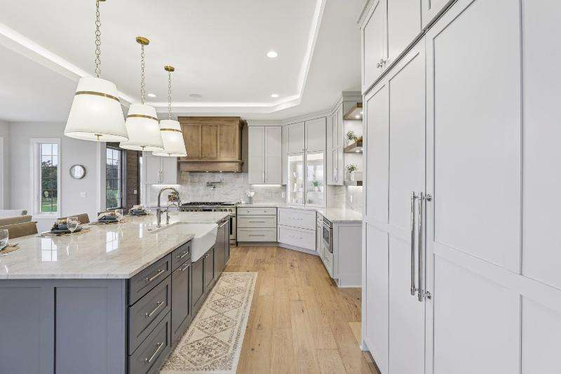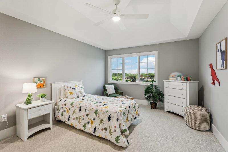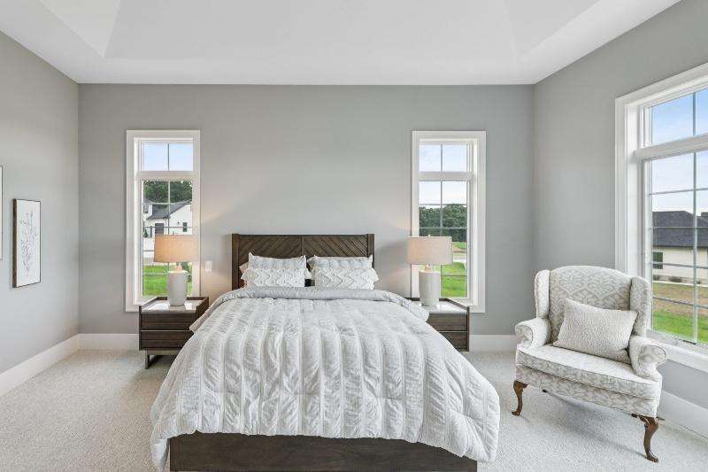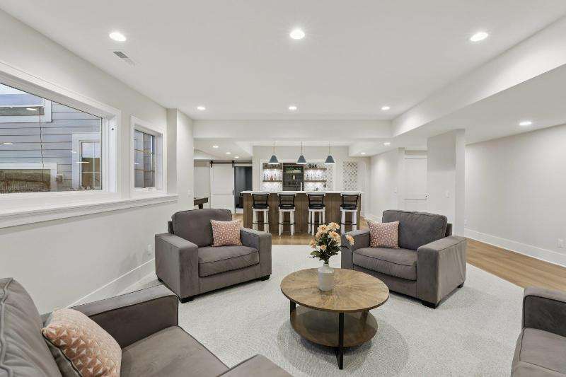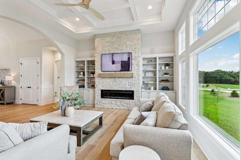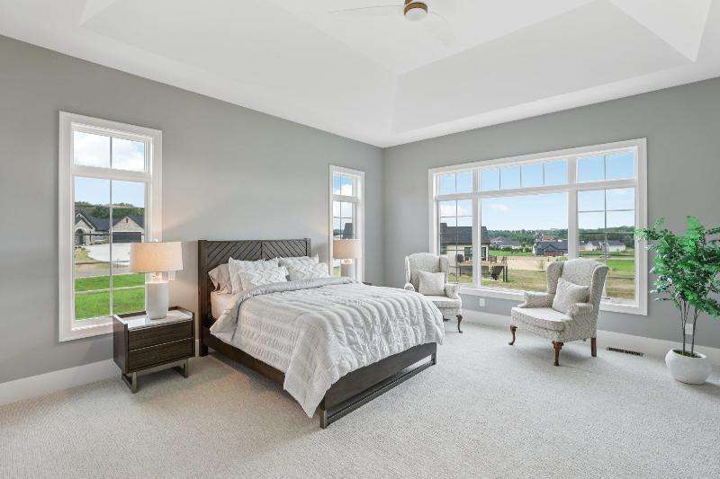 Exceptional 5-bedroom new build by Victory Homes of WI! Filled with natural light, this home features soaring ceilings and walls of windows. The chef's kitchen and spacious dining area open to a large covered porch--perfect for outdoor entertaining. A stunning 4-season hearth room with rustic beams and a stone fireplace adds warmth and charm. The main floor owner's suite offers a spa-like retreat with a tiled walk-in shower, soaking tub, and custom designer closet. Upstairs includes 3 large bedrooms and a dedicated study space. The finished lower level boasts a bar, game area, theater room, 5th bedroom, full bath, exercise/yoga room, and ample storage.