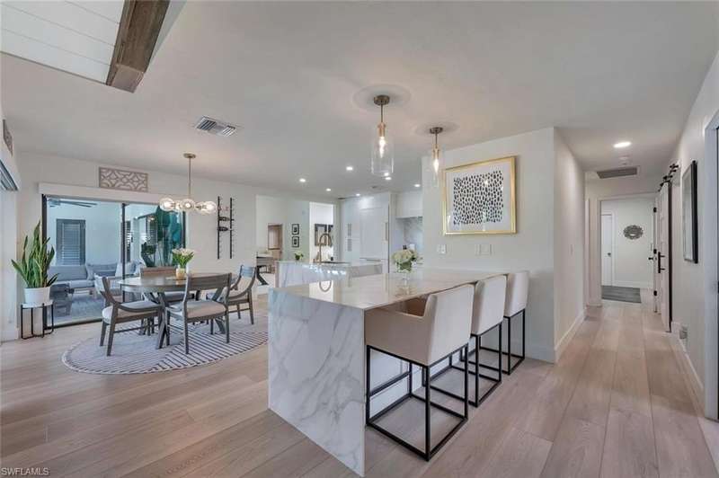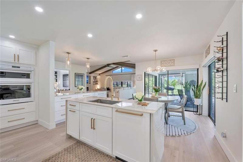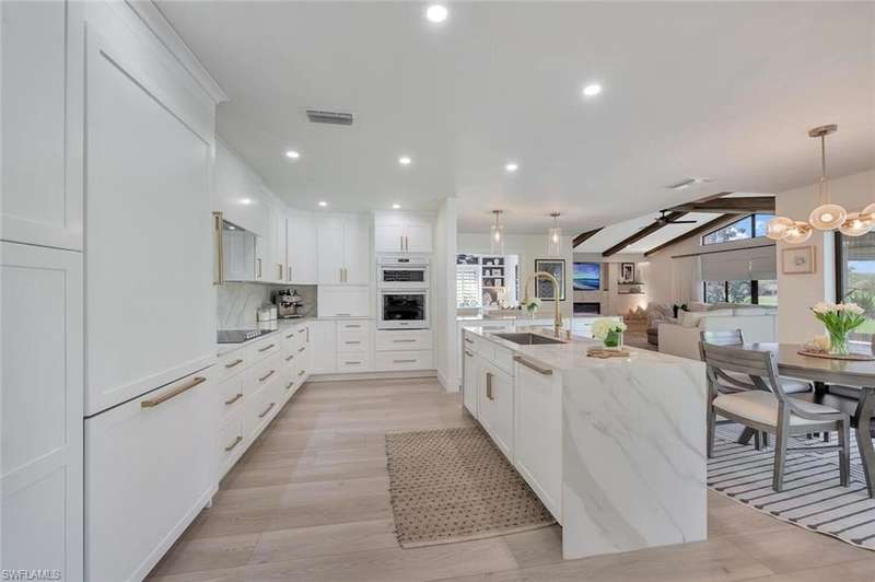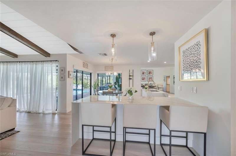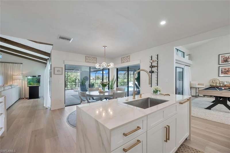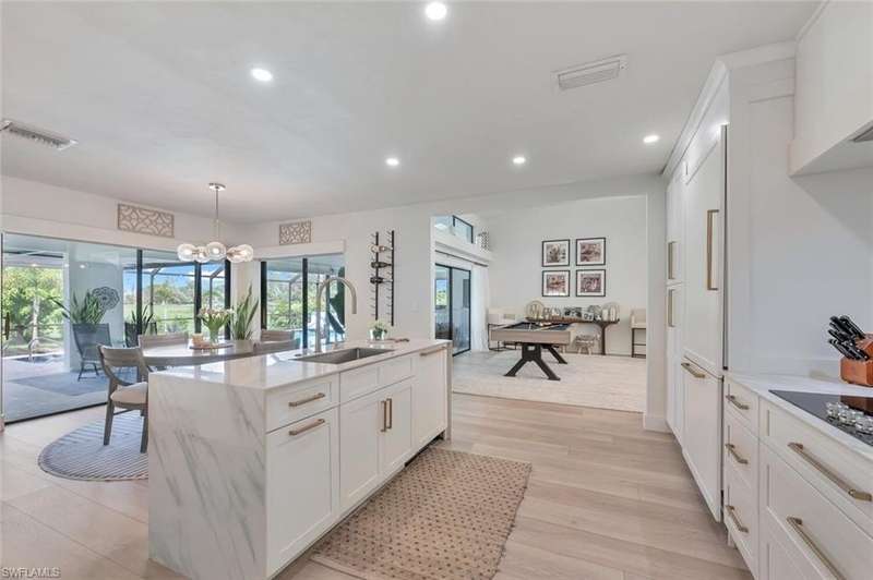 Stunning 4-Bedroom Pool Home with $150K in Dream Upgrades & Sunset Views in Eagle Ridge This home has been fully transformed with over $150,000 in dream upgrades, combining sleek designer finishes with modern functionality and peace-of-mind features you won’t find anywhere else. The southwest-facing backyard is a true showstopper, offering expansive views of the 17th fairway and two lakes, with breathtaking sunsets every evening. Just today, a bald eagle was seen grazing on the fairway before soaring into the sky—a fitting sight for Eagle Ridge Golf Community. The eagle, a timeless symbol of freedom and strength, reflects the rare balance of nature and luxury living found here. Outdoor space, your way: Remove the lanai cage for an open-air, resort-style vibe and unobstructed views Add a fence for a secure dog yard or play space Keep it as-is for classic Florida living Inside, you’ll find 4 bedrooms, 2.5 baths, and over 2,500 sq. ft. of living space, plus a 2-car extended garage and a 1,355 sq. ft. pool surround with a spacious, covered lanai. The designer-renovated kitchen is the crown jewel, featuring: Custom, soft-close shaker cabinetry with sleek brass hardware Dramatic, full-height quartz backsplash Top-of-the-line built-in appliances, including a paneled extra-deep refrigerator, double ovens, and smooth cooktop Thoughtful drawer storage and under-cabinet lighting This stunning kitchen perfectly blends style and function, making it the heart of the home for cooking and entertaining. Throughout the home, high-end LVP flooring provides a clean, modern look. Additional major upgrades include: Whole-home water filtration system New sprinkler system Kitchen and bath re-piping Pocket sliders that open wide to the pool area for a seamless indoor-outdoor flow The split-bedroom floor plan ensures privacy for guests, while the spacious owner’s suite and cozy family room—featuring an electric fireplace with an option to revert to wood-burning—make this home both welcoming and practical. Why This Home Stands Out Ultra-low HOA fees – only $300/year Pay-as-you-play golf – no membership required No flood zone and never flooded – hurricane-friendly, stress-free living Hospital power grid location – rarely loses power Generator hookup in garage for added peace of mind Minutes to RSW Airport, shopping, dining, and sports stadiums