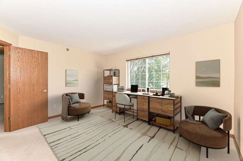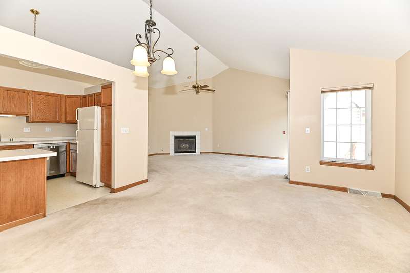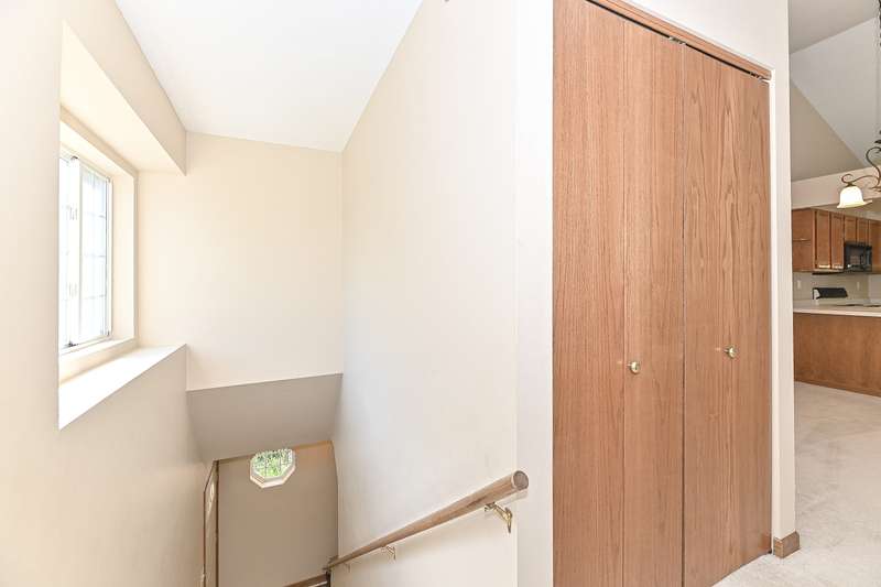 Beautifully situated along a nature preserve, this condo offers a serene, park-like setting with exceptional privacy. Arrive thru the secluded drive to condo complex with surface parking and a fully drywalled 2-car tandem garage with endless storage options. This 2nd-floor unit provides additional privacy and a balcony to enjoy the peaceful views. The open-concept layout features a spacious living area with a gas fireplace, patio doors to the balcony, and a seamless flow between dining and kitchen spaces. The laundry closet comes complete with washer and dryer. Storage is abundant throughout- between the garage, lower-level storage area with large closet, and a generous 2nd-floor mechanical/storage room. The primary suite includes two closets and a walk-in shower, while the second bedroom offers double closets. Wide stairwells make moving in a breeze. Enjoy the quiet, private setting while being just minutes from local amenities.