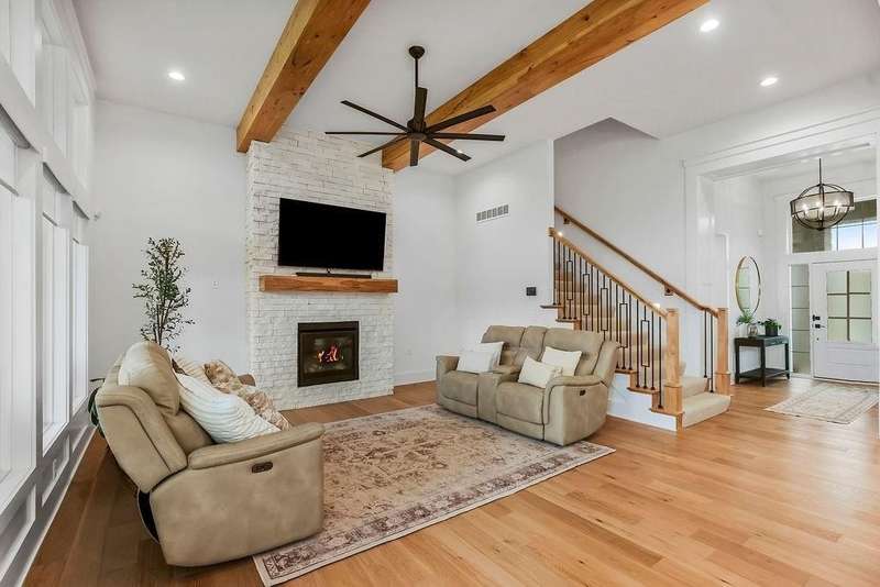 Rare 1.5-Story in Terrybrook Farms—Now $835,000. If you’re looking for main-level living without giving up space, this is the one to see. Built in 2022 by James Engle, this Laurel plan gives you the best of both worlds: your primary suite, kitchen, great room, and a BONUS office all on the main floor, with three bedrooms upstairs. Every bedroom has its own private bathroom. No delays. No builder surprises. Just a move-in ready home on a quiet cul-de-sac with a fenced yard, screened porch, and window treatments already done. With lawn care, snow removal, and trash service all included, weekends are truly yours again—whether it’s soccer games, running errands, or a late brunch. Enjoy all the perks of single-family living, plus full access to resort-style amenities like the pool, clubhouse, gym, sport court, and walking trails. Located in the highly sought after neighborhood of Terrybrook Farms with access to top-tier amenities and Blue Valley Schools, this is one of the only homes of its kind under $850,000. Come see why this plan makes sense!