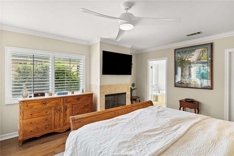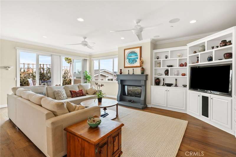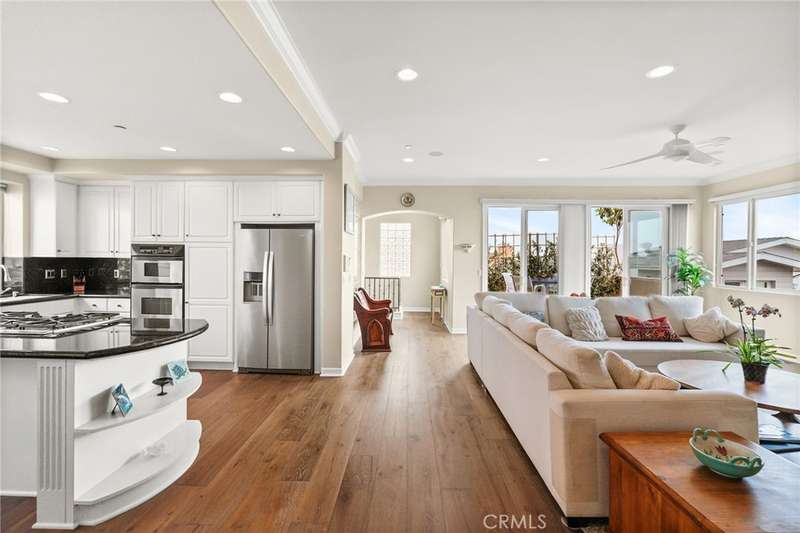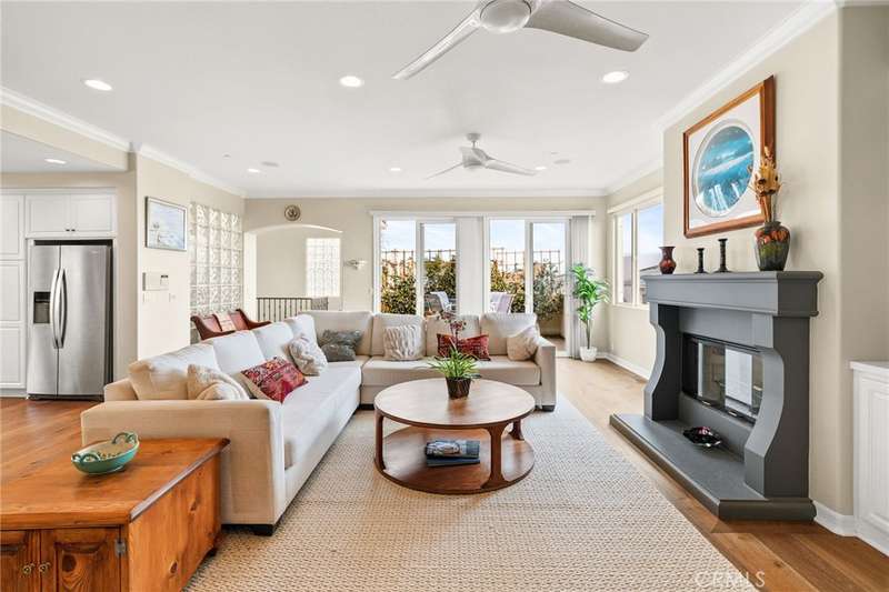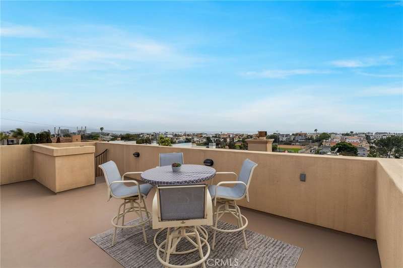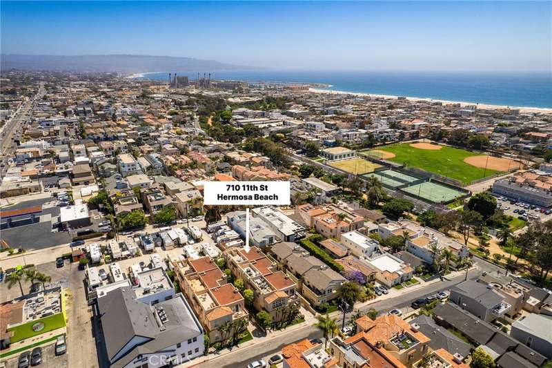Welcome to this gorgeous OCEAN VIEW 3 bedroom, 2 1/2 bathroom townhome with 3 outdoor decks located in the heart of Hermosa Beach. The upstairs living area features a spacious open floor plan with ocean views, cozy fireplace, hard wood flooring, a spacious living room, dining area. kitchen and guest bathroom. The kitchen has granite counter tops, stainless steel appliances, double ovens, cook top and peninsula with countertop seating. Enjoy the ocean breezes from the living room that leads to one of the ocean view decks perfect for entertaining and outdoor dining. From this level a staircase leads to a private rooftop deck with stunning panoramic views. On the entry level you will find 2 spacious bedrooms with ample closet space and the primary bedroom. The primary bedroom has two walk-in closets, private balcony, fireplace and a large ensuite bathroom with a double vanity. All the bedrooms feature hardwood flooring. The lower level offers flexibility with an additional room for a home office, gym, or playroom. On this level you will find a laundry room and storage closet and direct access to the oversized 2 car garage with plenty of room for additional storage. This back unit townhome offers an additional off-street driveway parking spot . Conveniently located and just a short distance to the greenbelt, South Park, Hermosa Valley School, shopping, coffee shops, grocery stores, numerous downtown restaurants, the beach and bike path.