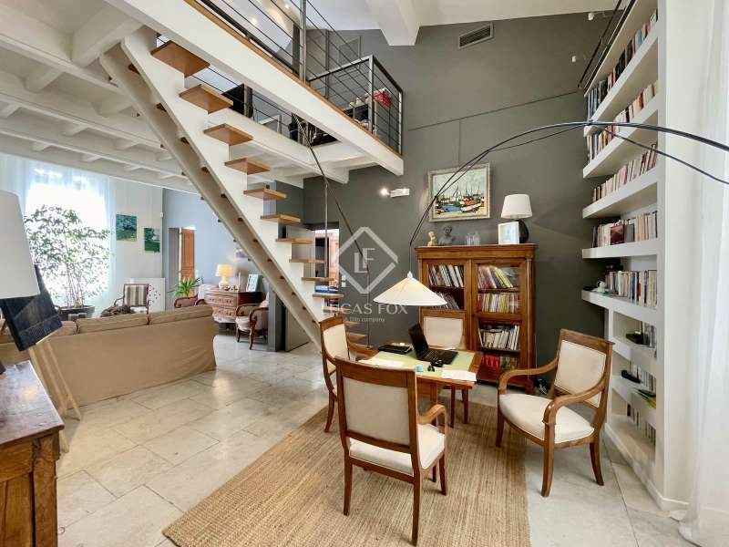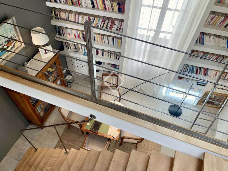 Exclusive to Lucas Fox International Properties, on the top floor of a bourgeois building in the Ecusson district of Montpellier, stylish apartment. Renovated a few years ago and accessible by elevator, the apartment stands out for its spacious layout and abundant natural light. On one side, it overlooks a quiet alleyway, and on the other, the building's large courtyard. Its predominantly southeast exposure allows residents to fully enjoy the sunshine in a warm and intimate setting. The apartment is equipped with air conditioning. Its 282 m² consist of 242 m² on one level, with an entrance, a charming double-height living room/library, a kitchen open to the dining room, a TV lounge, 5 bedrooms including a large master bedroom, a bathroom, a shower room, two toilets and a laundry room. A 10 m² room for storage, with upstairs, an independent 28 m² room allowing for the possibility of a music room, a workshop or any other project. The apartment consists of 2 condominium units and can very easily be divided to isolate 70 m² for rental, use as an office or for any other project. Information on the risks to which this property is exposed is available on the Géorisques website: www.georisques.gouv.fr.