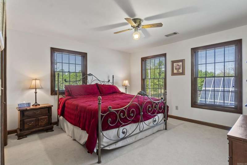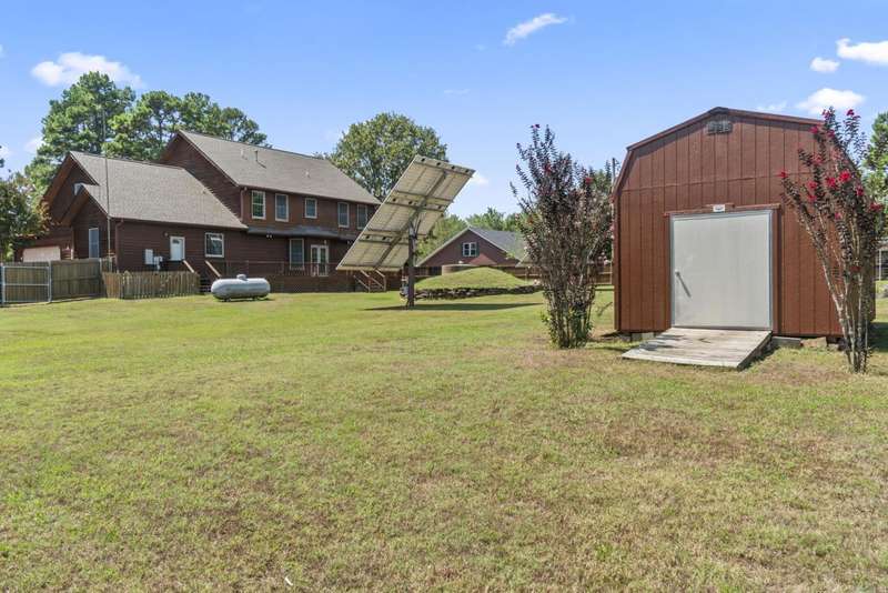 This beautiful home is a must see! Setting on 1.80 acres. Home has a new high resistant roof, it is the best for wind hail. Open floor plan, eat in kitchen with lots of windows. Half bath downstairs. also downstairs has large Master bedroom walk-in closet a large master bath with granite throughout, walk in shower, double vanity, large jacuzzi tub. Home has a large laundry room with lots of storge. Upstairs has 3 bedrooms full bath. Home has an additional 275 sq. feet room that could be used as an office. The home has a pellet stove. Two car garage, large porch on front and back. Property has raised garden beds a storage building and extra parking.
