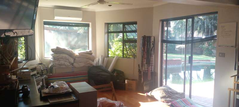 Tucked away in a secure estate, this beautifully crafted single-storey facebrick home on a generous half-acre stand offers the perfect blend of family comfort, elegant finishes, and exceptional entertainment spaces – with a fully self-contained cottage and room to expand even further. East Wing – Family Living & Bedrooms • 3 Generously Sized Bedrooms with built-in cupboards, ideal for family members or guests. • 2 Stylish Bathrooms: o One with a bathtub and basin o The other with both shower and bathtub • Elegant Formal Lounge with a cozy gas fireplace, air-conditioning, and large windows that invite an abundance of natural light. • Open-Plan Dining Area, seamlessly connected to the lounge, featuring modern built-in cabinetry and high-end finishes. • Contemporary Kitchen with: o Granite countertops o Gas hob, electric oven and grill o Sleek handleless cabinetry o Space for a double-door refrigerator • Separate Scullery with room for three appliances, keeping the kitchen clutter-free. West Wing – Entertainment & Main Suite: • Entertainment Lounge: A spacious indoor second living area complete with a built-in bar, perfect for entertaining or relaxing in style. • Luxurious Main Bedroom Suite: o Air-conditioning and laminate flooring o Built-in office space – ideal for working from home o Large walk-in dressing room with back-to-back cupboards o Full en-suite bathroom featuring granite tops, double basins, large shower, and a Jacuzzi bathtub o Adjacent chill area with an open-air shower – a unique and tranquil space to unwind Outdoor Living & Entertainment • Expansive Covered Lapa with: o Built-in braai o TV cabinet o Bar fridge o Ideal for all-weather entertainment • Covered Patio with awnings and paving, flowing onto a beautifully landscaped garden with mature palm trees and vibrant birdlife. • Sparkling Swimming Pool – perfectly positioned for seamless indoor-outdoor living. Separate Cottage / Office Space: Located above the double garage and carport, this versatile, open-plan unit includes: • Fully fitted kitchen with ample cupboard space • Bathroom with granite finishes and walk-in shower • Laminate flooring, air-conditioning, and lots of natural light • A private patio with sweeping views – perfect for guests, extended family, or rental income Additional Features: • Double Automated Garage, Double Carport, and 3 additional covered parking spaces (7 total) • Trelli doors, high boundary walls, and estate razor fencing for top-notch security • Aluminium windows and doors, tiled roof, and glass sliding doors throughout • Two geysers, north-facing orientation, and energy-efficient design • Double-storey foundations with approved building plans to extend upwards • Ample space to build 1–2 additional cottages on the back of the stand – perfect for extended family or rental income Prime Location: Situated near leading schools, top shopping centres, restaurants, and with easy access to the N1 freeway, this home offers both tranquillity and convenience. SOLE MANDATE