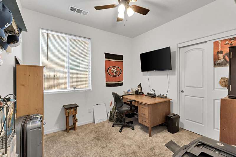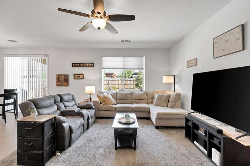 A Spectacular 4 Bedroom, 2 Bath Home, located in a quiet Cul De Sac, is ready for New Owners!!! This beauty is set in a Wonderful Neighborhood, close to walking trails and friendly parks. While the open concept and large windows bring an airy, cozy feel to the main spaces, the 4 Bedrooms allow for multiple options and opportunities! Along with Solar and Central HVAC, a Whole House Fan adds additional cooling/energy saving options for enjoying those cool mornings and evenings. In the Backyard, you will discover a lovely, simple and fun space with a Firepit area, patio, green turf, and a shed! This is a Gem and you'll want to see it!!!