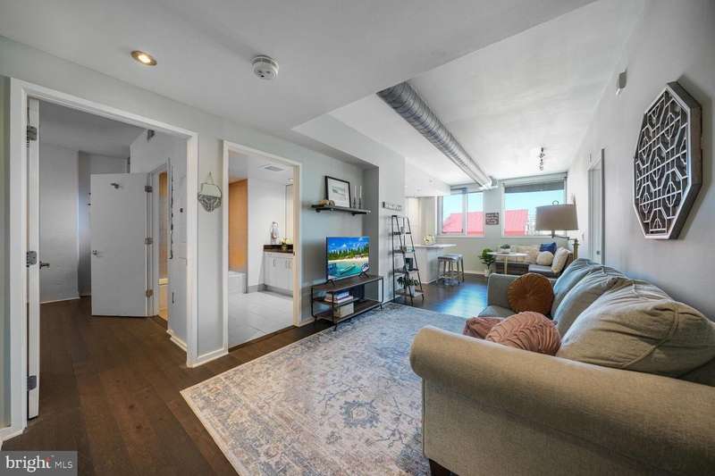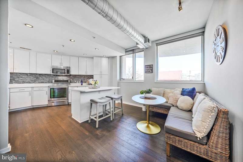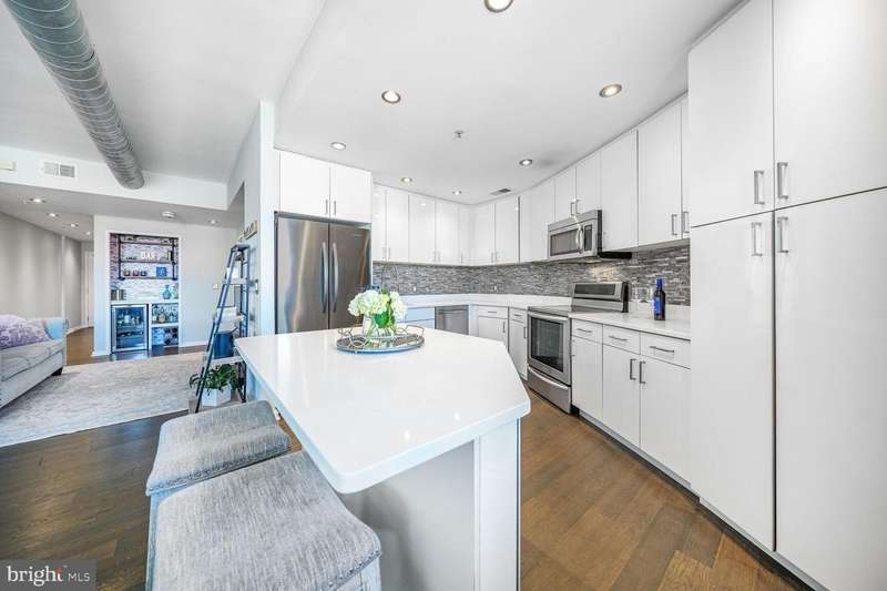 Urban living at its absolute best, must-see, 2-bed, 2-full bath condominium on the second floor of the contemporary ARC 3409 in the heart of Arlington. Conveniently located on the orange line at Virginia Square and close to Clarendon Metro, this modern loft-style condo features 9ft ceilings, exposed ductwork, hardwood floors, and a stunning kitchen with white cabinets/white quartz countertops w/custom backsplash and large central island, stainless steel appliances. Washer and dryer in unit. HVAC (2019) Water Heater (2017), Dishwasher (2025). From the entrance hallway, enter a spacious light filled Living/Dining room combination. Perfect for relaxing as well as entertaining to include an elegant dry bar complete with beverage center. Two large bedroom suites, each with a full bath and spacious walk-in closets, are located on opposite sides of the main living space, making this unit a perfect shared dwelling. The Arc is a bright and vibrant building full of amenities from a helpful and friendly 9-5 front desk concierge, a state-of-the-art fitness center and welcoming first floor lobby, enjoy secure garage parking space (81), private storage unit (#5) and covered bicycle storage. Take a trip up top to the fabulous newly renovated roof top garden deck with stunning views of the National Cathedral, Washington Monument, DC Capitol, Georgetown and beyond. Reno to include all new furnishings and landscape. A perfect spot for morning coffee or a sunset refreshment with friends. Got pets? Cats and dogs are welcome in the building, with no size restrictions (2 pets max). Conveniently located near shops, restaurants and a myriad of conveniences. The Arc is right on the metro rail with quick access to 66 and 395. Minutes from DC and Reagan Washington National Airport.