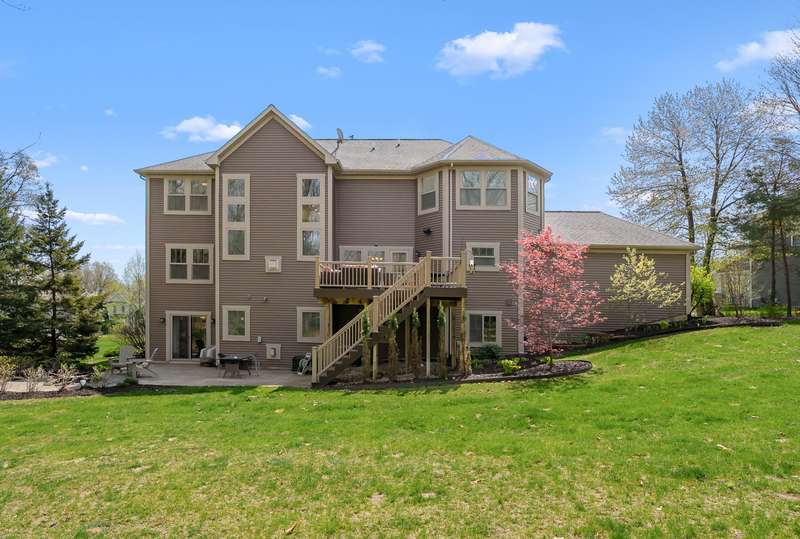 Custom built SMART home. Control everything right from your phone. Automatic 24kw Generac whole house GENERATOR and surge protection. Beautifully maintained w/ many upgrades Formal dining w/crown molding & wainscoating. Bar area w/ wine fridge.Office w/coffered ceiling. Large family room w/ hearth gas fireplace 2 story coffered ceiling w/ beams. Open to eating area & kitchen. Gourmet kitchen w/ cherry cabinets & island featuring off white cabinets, quartz counters.Large pantry, mud room & coat room access. 2 stairways going to 2nd level. Amazing primary suite w/ tray ceiling walk in closet and bathroom featuring double sinks, tub, shower. 3 other large bedrooms 2 full baths. Lower level walk out w/theater room, 2nd fireplace, possible multigenerational living space with bar, kitchen, dining area, gym w/cushioned floor. 4 CAR Garage. Private wooded backyard. Neighborhood pool walking trails, adjacwnt Texas Dr park, Woolam Nature preserve w/ swimming lake & Al Sabo Park.