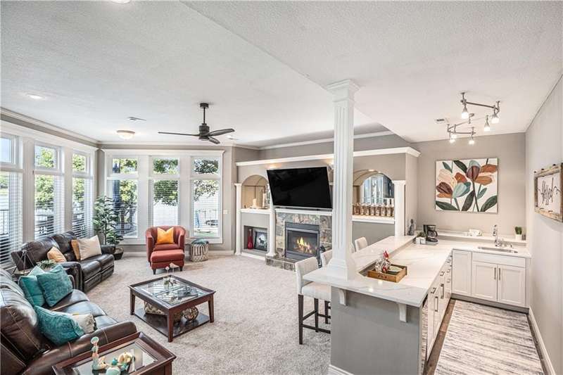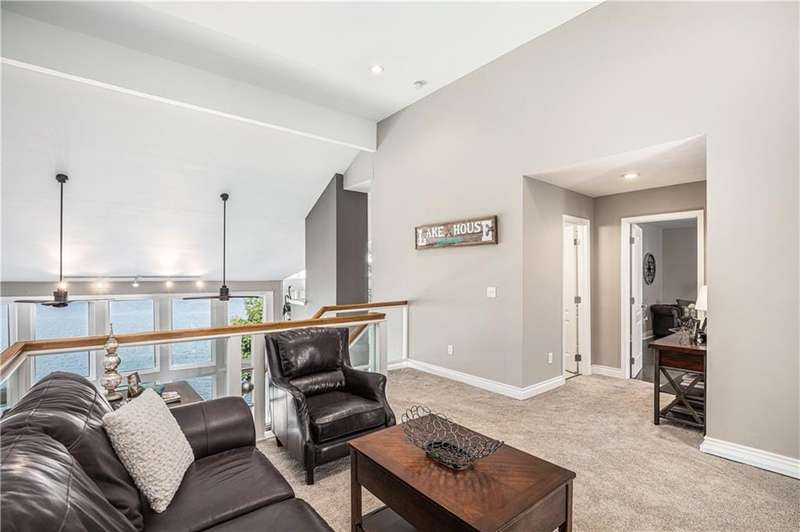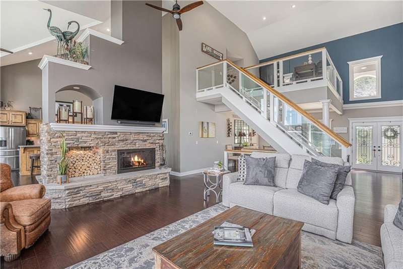 Welcome to this magnificent waterfront retreat on Lake Winnebago! This stunning 1.5-story home offers 4 bedrooms, 3.1 baths, a 3-car garage, and over 5,200 square feet of beautifully finished living space.Step inside and be greeted by soaring ceilings, floor-to-ceiling windows, and sweeping views of the lake. The semi-open layout features gleaming hardwoods and a dramatic stone fireplace that anchors the expansive formal living room. The elegant kitchen showcases granite countertops, stainless steel appliances, an island, and an additional seating area with its own stone fireplaceperfect for both everyday living and entertaining.The main-level primary suite is a private oasis with a jetted tub, walk-in shower, double vanity, custom closet, and even a three-sided fireplace. Upstairs, a spacious loft and oversized bedroom with updated bath provide extra comfort.The lower level is designed for fun and relaxation, offering high ceilings, a family room with fireplace, wet bar, kitchenette, and two additional bedrooms connected by a Jack & Jill bath. Step outside to enjoy the 3-tier deck with spectacular lake views, or head down to your new extra-wide boat dock with hydraulic lift.This home has recently undergone a $250,000 exterior renovation including new Hardy siding, 43 new lakeside windows, new roof, and new guttersleaving nothing to do but move in and enjoy!Ideally located on Southshore Drive, this tier-1 lot ensures unobstructed views with no homes across the streetjust peace, privacy, and water all around. Add in the incredible amenities of the Lake Winnebago community, and this home truly has it all.Come see why this rare lakefront gem is the perfect blend of luxury, comfort, and lifestyle. Home is priced lower price per square foot than many updated lake front properties.