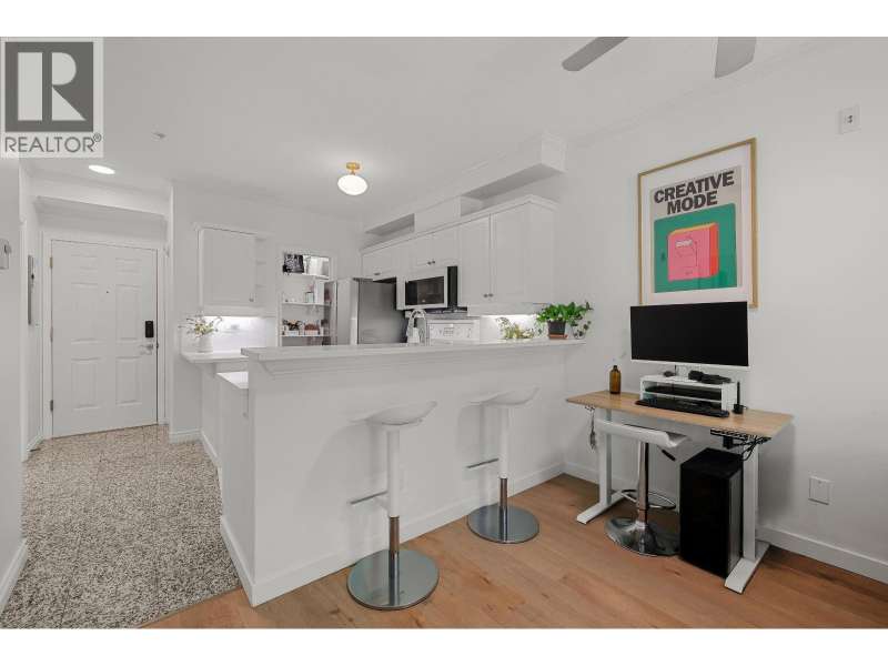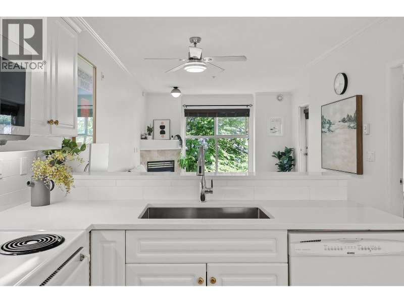Welcome to Centreville! This spacious and well-maintained 1-bedroom home offers an unbeatable location just steps to Coquitlam Centre, dining, the Aquatics Centre, Town Centre, Lafarge Lake, Douglas College, schools, SkyTrain, and WCE. This home features an expansive open layout; the gourmet kitchen boasts a large walk-in pantry, Cozy gas fireplace + Ample sized bedroom with slider to balcony + a walk-thru closet and cheater ensuite. Additional conveniences include in-suite laundry, a gym, amenity room, and a "Guest" suite. Partially renovated in 2023, including new laminate flooring, countertops, light fixture, faucets, and paint, new washer and Dryer/ Microwave/ fridge. 1 parking stall + 1 locker included. Don't miss the opportunity to make this home yours! OH: Sep 27, SAT, 2-4pm (id:58403)