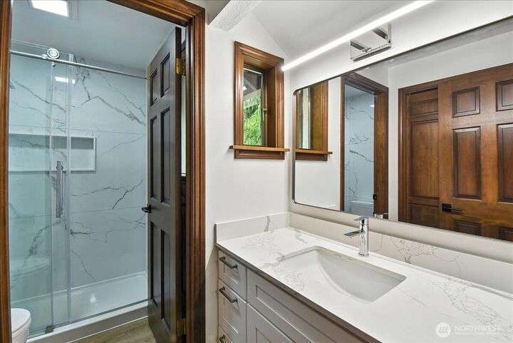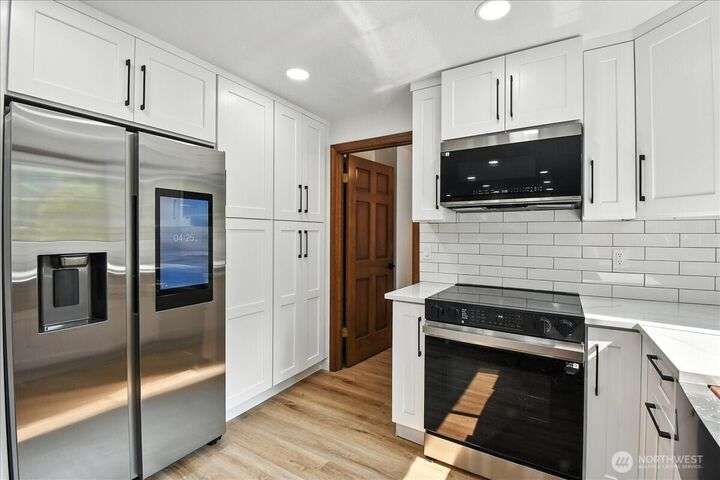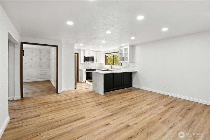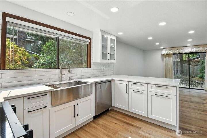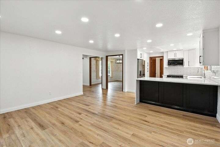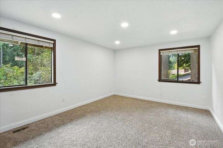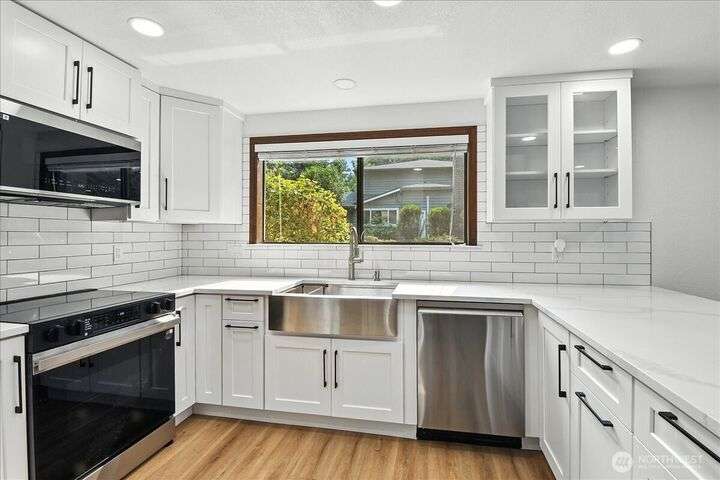 Available now! This fully remodeled 3-bedroom. 2.25-bathroom home is located on a prime corner lot in Edmonds' Westwood Hills neighborhood. Upon entry, vaulted ceilings and oversized windows fill the home with natural light. The home features new carpet, Luxury Vinyl Plank floors, and new interior paint through the main and upper levels. The kitchen boasts quartz countertops with a cascading waterfall feature, stainless steel appliances, and modern lighting. Additional amenities include a spacious 2-car attached garage with a central vacuum system. Highly sought after Edmonds Schools! Close to jobs. entertainment. food and hwys. Tenant responsible for landscaping and all utilities. Fireplace not for tenant use. just aesthetic. No pets.