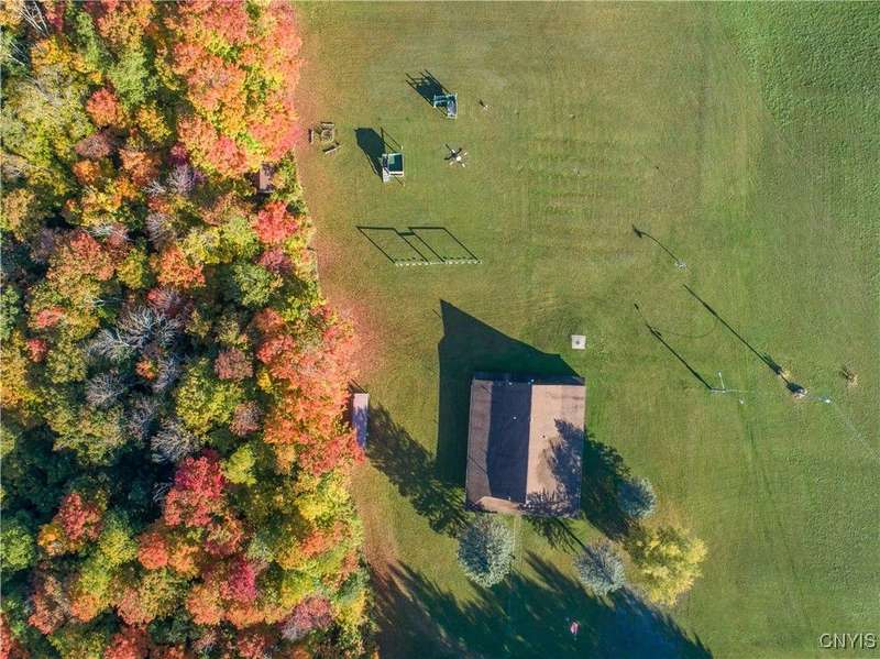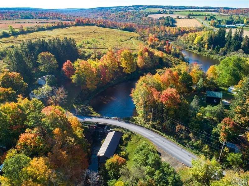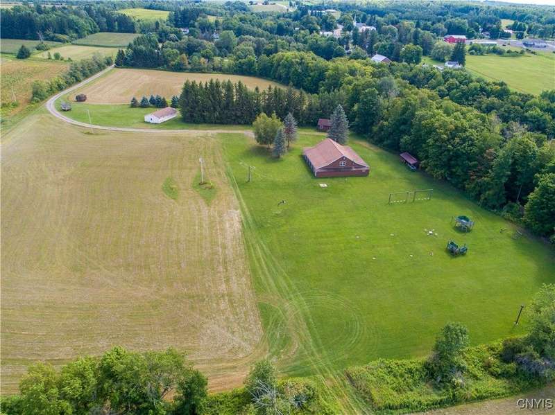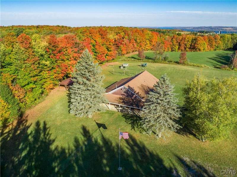 This exceptional 88-acre property offers endless possibilities with breathtaking Skaneateles Lake views bordering Bear Creek and its stunning waterfall, just a short drive from Skaneateles Village in the renowned Finger Lakes Region. This completely private sanctuary is surrounded by mature hedgerows and woods, creating total seclusion and tranquility. The substantial main lodge features an expansive commercial kitchen, three full bathrooms, and extensive storage space, all surrounded by a covered veranda with picnic tables perfect for entertaining, and with updates, could accommodate events for up to 200 guests, making it an incredible event space. The property includes two spacious 24x32 bunk houses with approved septic plans to be converted into charming 2-bedroom cottage residences, a large bath house with eight showers. Essential infrastructure is already in place, including two wells, an extensively engineered septic system, and electrical service. Previously operated as a successful church camp, this versatile property presents extraordinary opportunities for wedding venues, family compounds, equestrian facilities, private retreats, or commercial event spaces. The true value lies in the prime acreage, existing utilities, and septic infrastructure, offering a rare chance to create your vision in one of New York's most desirable locations with easy access to both Skaneateles and Ithaca.