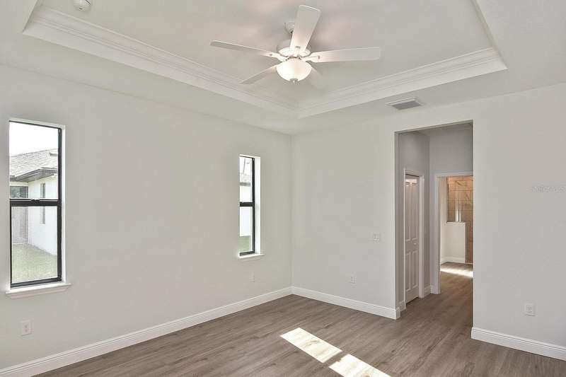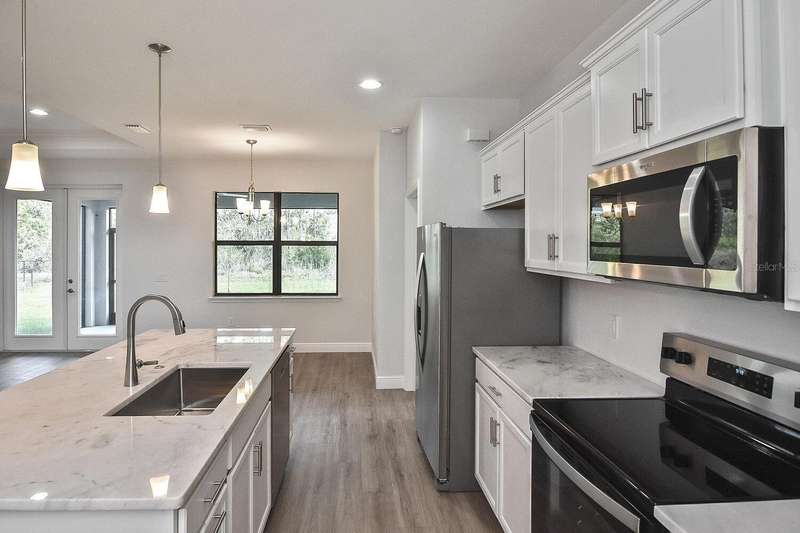 PRICED TO SELL! Step into this beautifully crafted 3-bedroom, 2-bath home with a versatile bonus den, situated outside a flood zone for peace of mind. The open-concept design features soaring 9'4" ceilings, with stunning tray ceilings extending to 10'4" in both the great room and master suite, offering an airy, expansive feel. The kitchen is perfect for hosting, featuring sleek marble countertops, stainless steel appliances, and soft-close cabinetry, plus a generously sized pantry. The spacious master suite provides a retreat with dual vanities, a luxurious fully tiled shower, and an impressive walk-in closet. Enjoy quiet mornings or evenings on the large, screened lanai, with views of a tranquil canal and private wooded preserve. With a 2-car garage and a 10-year structural warranty, this home is built for comfort and peace of mind. Located just minutes from local shopping, dining, schools, golf courses, and beaches, this home is an ideal spot to enjoy both serenity and convenience.
