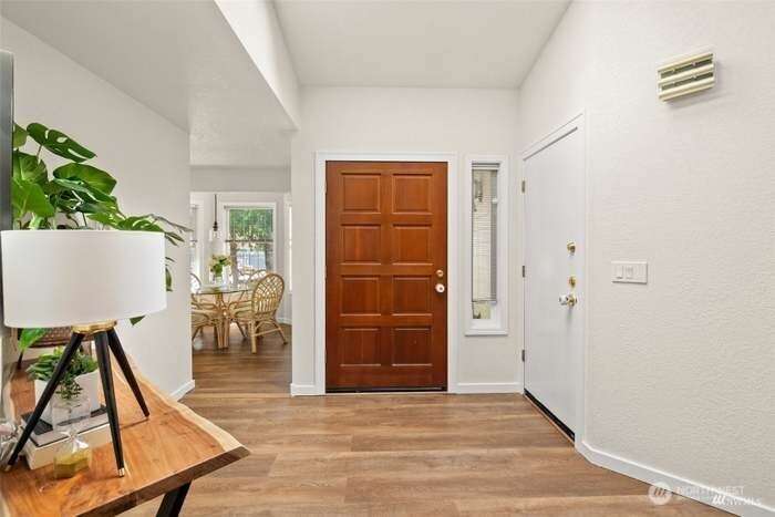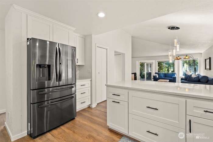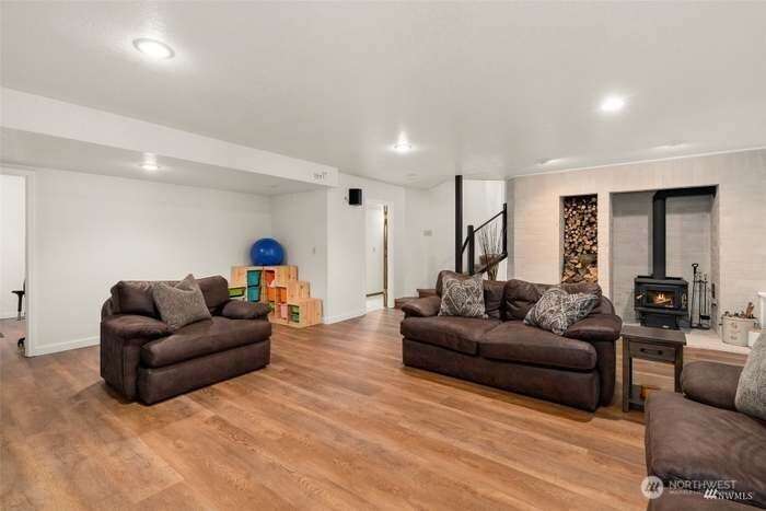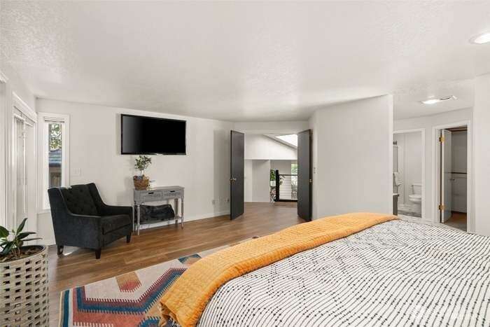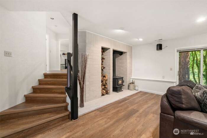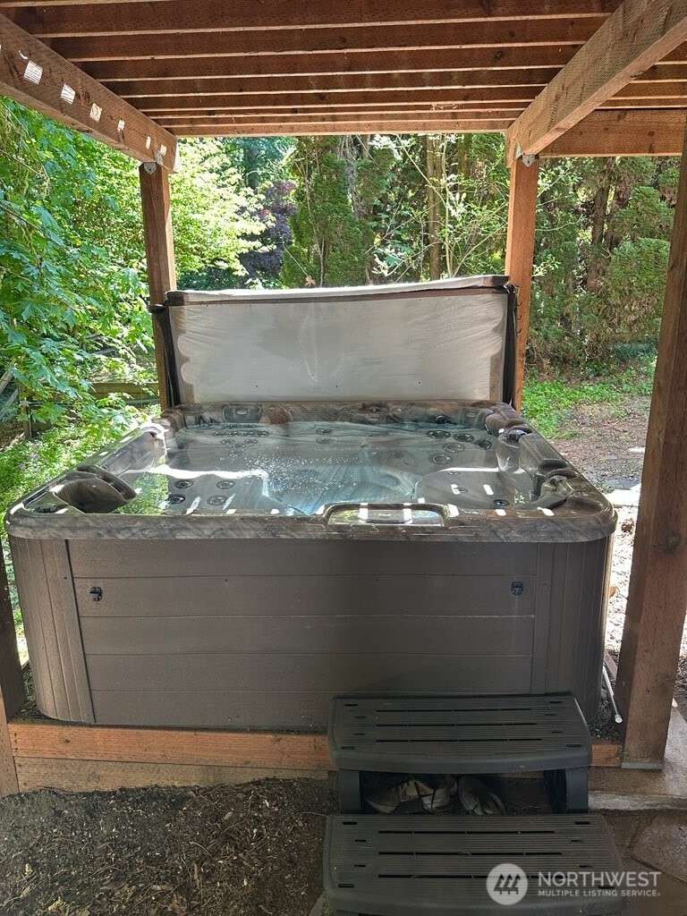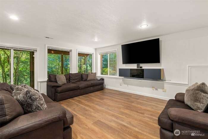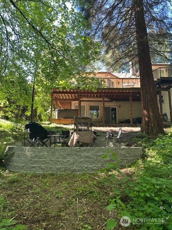 Unique custom home nestled in woodsy setting in Cloister at Munn Lake. This multi-level, 3 bedroom with Bonus Room and office space located downstairs. Two and half bath. Built for entertaining & restful retreat. Skylight entry opens into a large living, dining & upper level master suite, wrapped deck overlooking nature. A breakfast room off kitchen. Split bedrooms for privacy. Lower level has a large media/recreation room opens to patio & treed yard. Office, large laundry/storage & exercise alcove. Therapeutic hot tub located on the patio area and near fire pit. Lots of windows gives the feeling of being among trees. Common area witin walking distance of home. Trails and and beach for the lake.