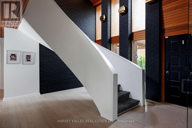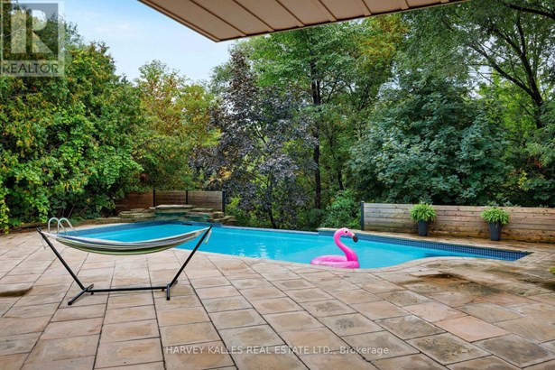 Say yes to the absolute best; this Markland Wood mid-century modern home is the pinnacle of style and comfort with unique details and a timeless aesthetic. Modern living and beautiful mid-century modern architecture? Check! Close to every amenity imaginable? You've got it! A beautiful backyard paradise on a ravine lot and an inground pool that makes you feel like you're on a tropical vacation every day, all day? Naturally. A brand-new mud room with direct access to the garage and side entrance? Oddly specific ask, maybe but yes, that too! Your new dream house offers so many perks that you may never need to board an airplane again. Designed by Award Winning Architect, Anthony Ferracuti (Global Architects), this 4+1 bedrooms, 3.5 bathrooms, plus a half bath home provides room to spare. The eat-in kitchen comes with professional-grade Frigidaire and Miele appliances, while a walkout basement makes entertaining a breeze, with its own kitchen, dining area, lounge spaces and sauna. Community features include Neilson Park Creative Centre, Markland Woods Golf Club, and walking/bike trails along the Etobicoke Creek Ravine (and CF Sherway Gardens, of course!) The home is also in the catchment area of top-rated schools, including St. Clement Catholic School. With an oversized pie-shaped lot, opportunities for outdoor enjoyment open up. This home was made for making memories. With an expansive primary bedroom complete with its own sitting area and a four-piece ensuite, it's hard to pick a favourite feature in this glorious oasis. This is your perfect home for everyday luxury. (id:6370)