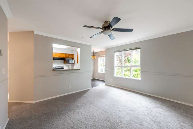 Very bright end unit with lots of large windows that's move in ready 2 beds, 2 full baths in well maintained CHELSEA GARDENS a 55+ community in MAYFAIR bldg where 2 pets (max 15" at shoulder allowed) . Freshly painted including ceiling and trims and new carpeting throughout. Kitchen boasts vinyl planking, stainless steel appliances, granite countertops and breakfast nook by east facing window overlooking gardens. Lvg room with cozy fireplace and crown moulding has sliders to the covered south facing wrap around deck great for container gardening and enjoying the sun. Both full baths have vinyl plank flooring, granite counter tops. CHELSEA has 3 guest suites, reflection ponds and outdoor pool, exercise room, woodworking shop, hot tub, library, English pub and rentable fireside room.