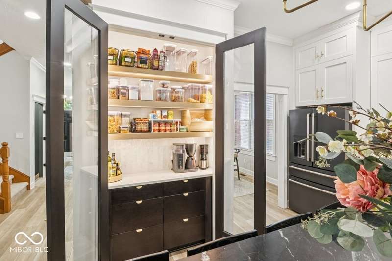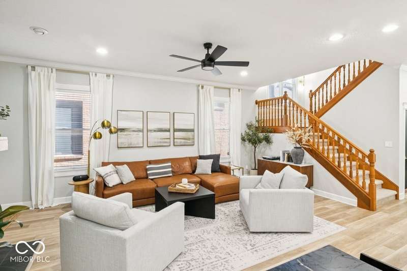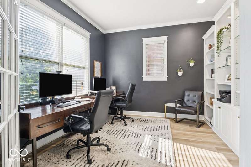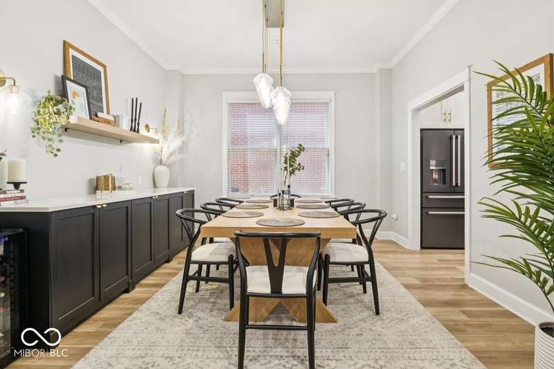 Immaculate. Timeless. Perfectly Appointed. In the heart of the historic Old Northside, this immaculate residence blends classic touches with the sophistication of modern design. Every detail has been thoughtfully updated, creating a home that feels both luxurious and effortlessly livable. Step inside to find light-filled spaces, tall ceilings, and a seamless flow between rooms. The chef's kitchen features sleek stone counters, high-end Cafe appliances, and a generous island that anchors the main level-perfect for entertaining or everyday living. The adjoining living and dining areas open to a beautifully designed patio and fenced yard, offering an ideal setting for quiet evenings or gatherings under the string lights. With four spacious bedrooms, plus a dedicated home office and an exercise room, there's room for everyone to work, recharge, and thrive. The primary suite is a true retreat-featuring a custom spa-inspired bathroom with oversized shower, and a walk-in closet designed with boutique-level organization in mind. The finished basement expands the living space even further with a stylish recreation area and bonus rooms that fit every lifestyle. Outside, the three-car garage and spacious backyard are a rare luxury in this coveted downtown neighborhood. From the craftsmanship to the convenience, every inch of this home exudes care, quality, and attention to detail. Just moments from Tinker Street, Mass Ave, Bottleworks, and the city's best dining and culture-this is Old Northside living at its finest.