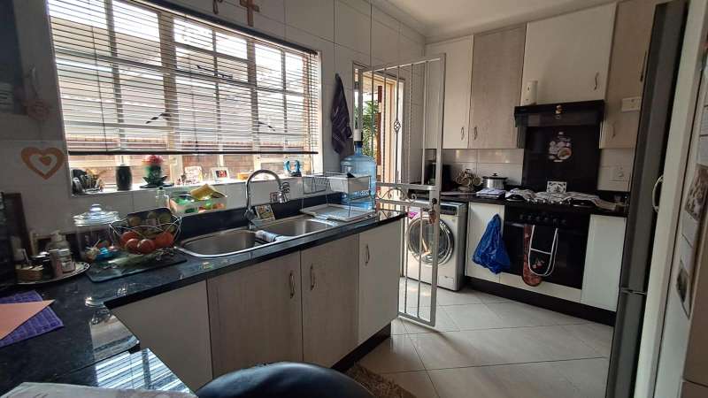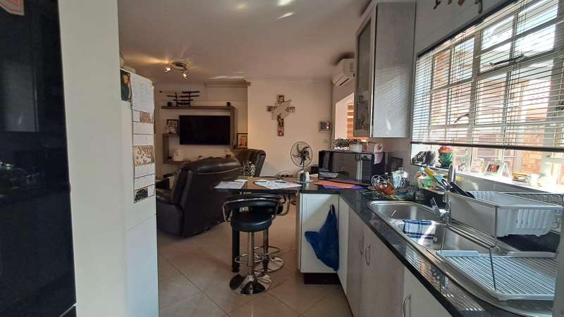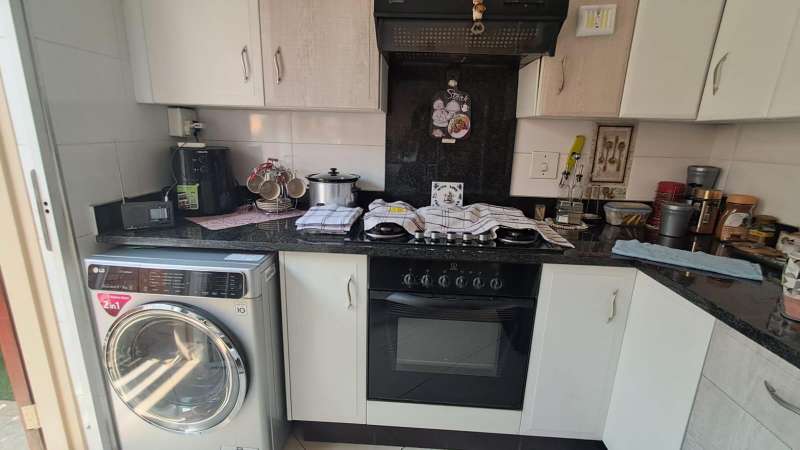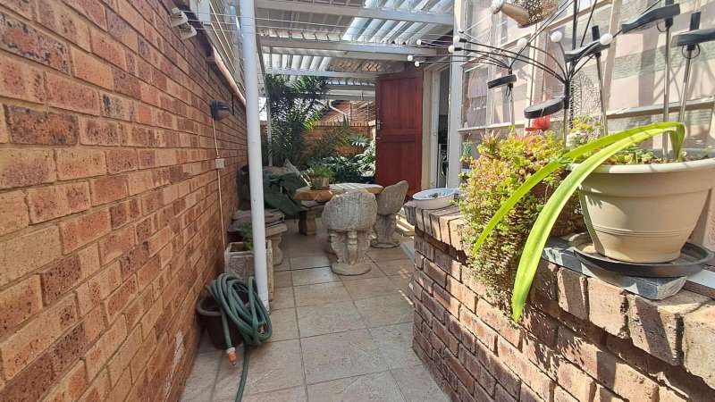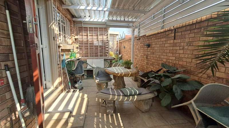 Sectional Title simplex with face brick, low on maintenance. Open plan lounge and dining area. Bay window was created to give more open space. Kitchen has been modernised, granite tops, and gas stove has been installed. Three bedrooms with build in cupboards. The main bedroom has an extended area for a cosy reading or study corner. The main en suite bathroom includes a shower and the second bathroom has a shower. The patio is under cover and has a built in braai. The garage has a water point for a washing machine. Single carport is available. Contact me for a viewing appointment.
