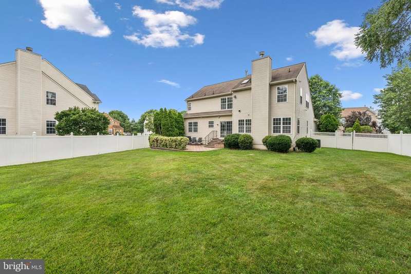 Welcome to 32 Equestrian Lane in Short Hills neighborhood. This beautifully maintained 4-bedroom, 2.5-bathroom home offers comfort and space in one of the area's most sought-after communities. From the moment you step into the two-story foyer with gleaming hardwood floors and dual coat closets youll feel right at home. Enjoy hardwood flooring throughout the main and upper levels, and neutral paint that adds a modern touch. The spacious eat-in kitchen features an island for casual dining, a pantry closet, dishwasher, garbage disposal, and sliding doors that lead to a stunning paver patio perfect for entertaining or relaxing in the expansive fenced in backyard. Gather in the inviting family room, complete with recessed lighting and a cozy gas fireplace, or unwind in the spacious living and dining room combination ideal for both daily living and hosting guests. The convenient laundry room is equipped with a washer, dryer, linen closet, and access to the attached two-car garage. Upstairs, retreat to the serene primary suite with two walk-in closets and a primary bath featuring a soaking tub, separate shower, double vanity, and ceramic tile flooring. Three additional bedrooms share a well-appointed hall bath with a skylight, double vanity, and additional linen storage. The finished basement offers endless possibilities for a home office, playroom, gym, or media room. Dont miss this move-in-ready gem that combines classic style with modern conveniences, all in a fantastic location close to schools, parks, shopping, and more! (Sprinkler system is being sold "as is")