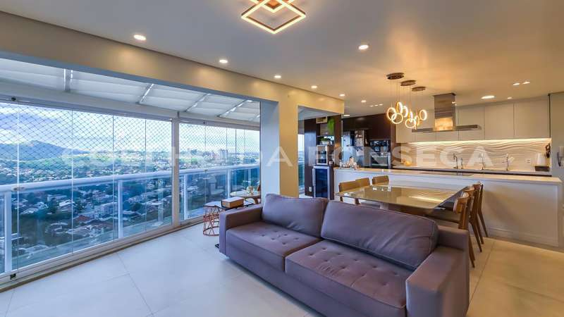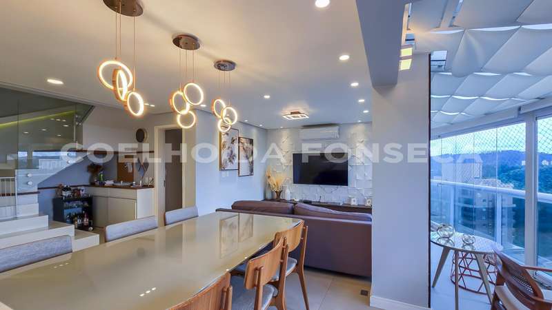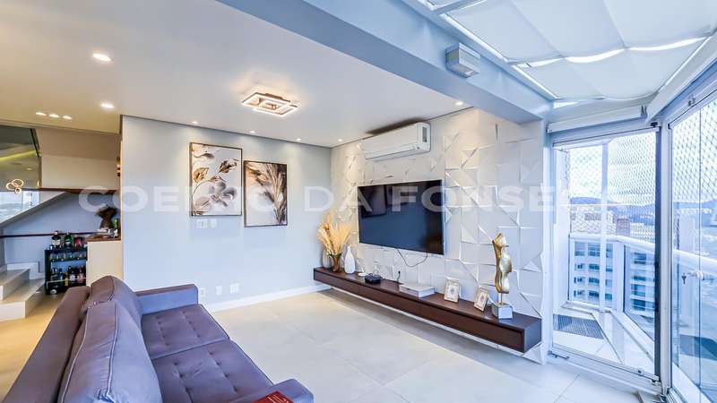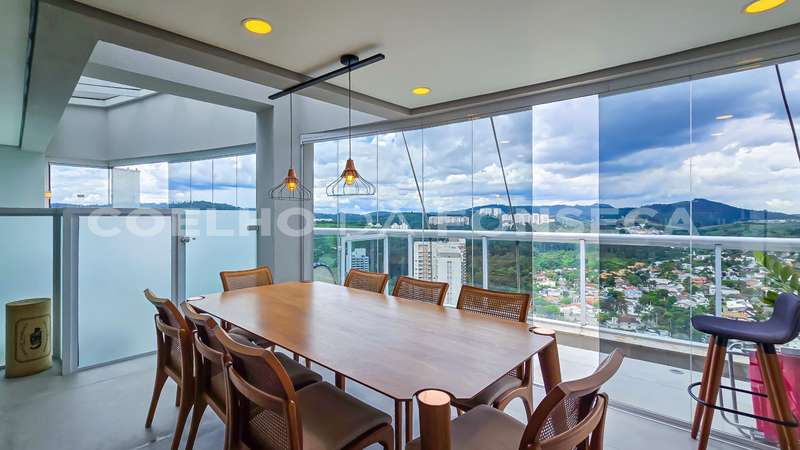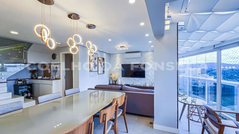 Cobertura no condomínio NOVARE ALPHA, com 230m² área privativa/útil, 3 dormitório(s), 3 suíte(s), 3 vaga(s), 4 banheiro(s), churrasqueira, escritório, terraço, mobiliado (a), duplex, ar condicionado, varanda gourmet, pé direito duplo.