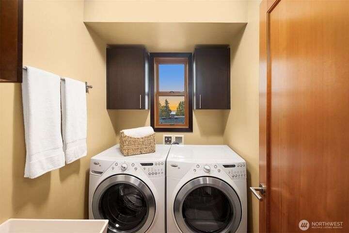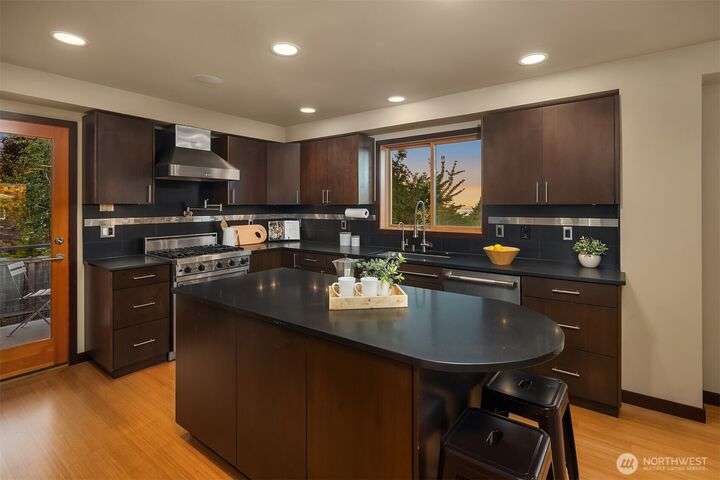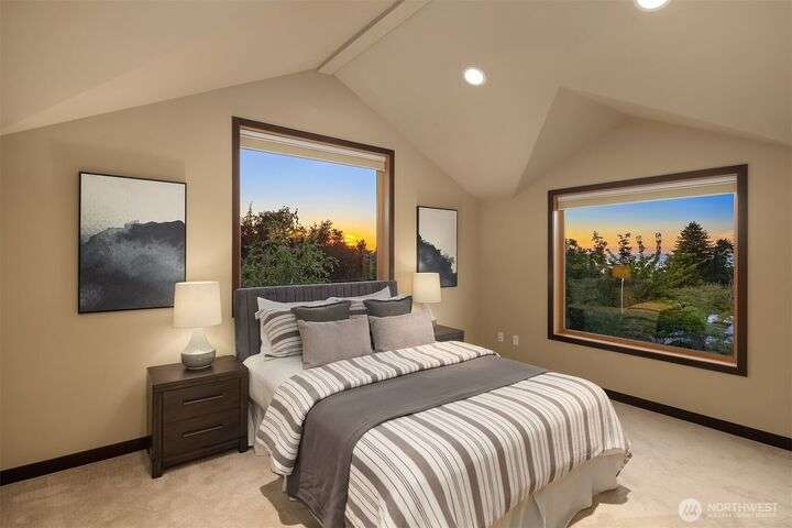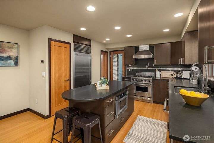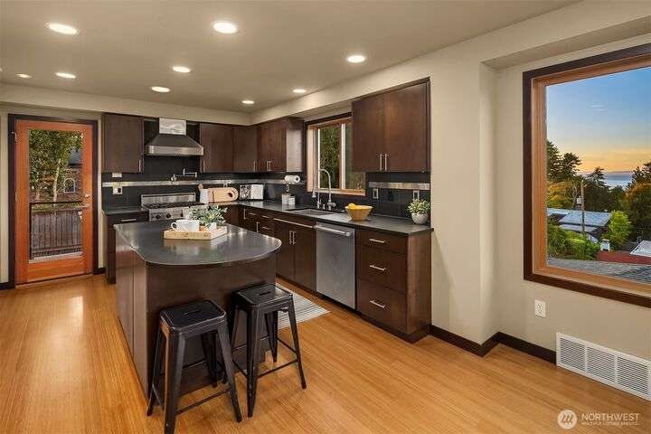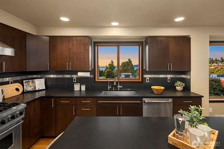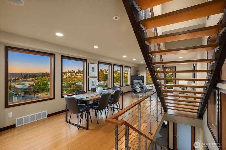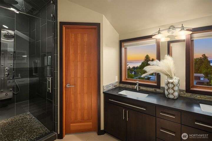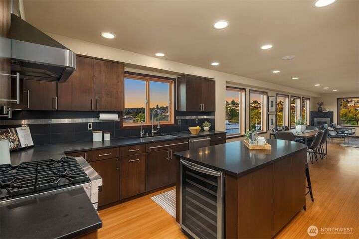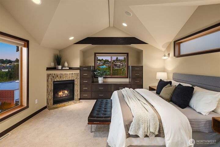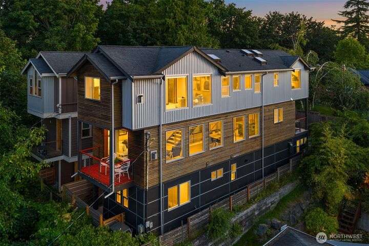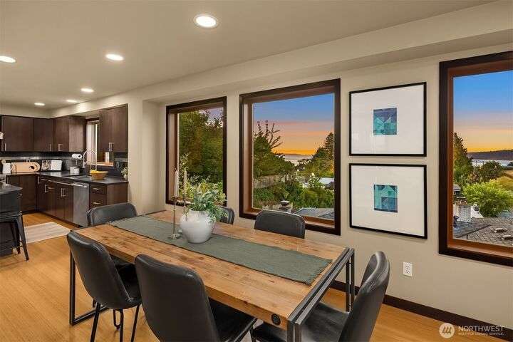 This entertainer’s dream framed by the Sound & Olympics. Sleek family rm, heated flrs, in-home gym & entertainer’s bar w/ kegerator, mini fridge & dishwasher. Chef’s kitchen offers the ultimate exp. w/ Sub-Zero fridge, Viking range, wine fridge, granite countertops & gas range. Bamboo flrs, central A/C & 3 gas FPs. Primary ensuite features a soaking tub, custom WIC & luxe rain shower w/ 8 body sprayers + a full guest suite. Smart tech incl full surround sound, wired security, smart locks, thermostat & outdoor lighting. Fenced yard w/ pet-grade turf & 2 designated parking spots round out this fun, high-tech smart home. Ask about special financing with Cornerstone.