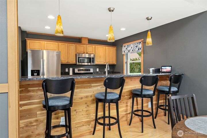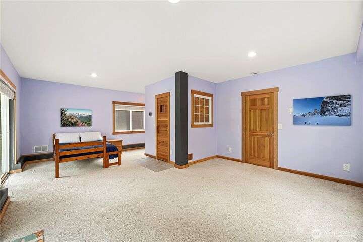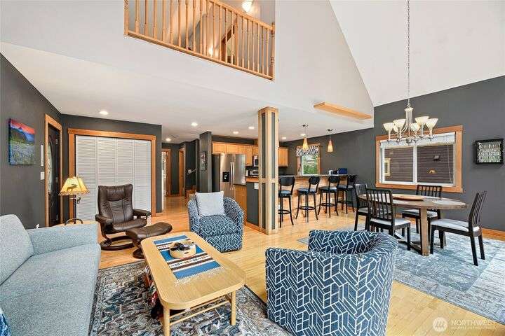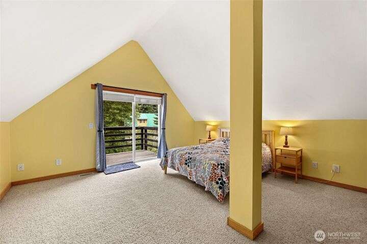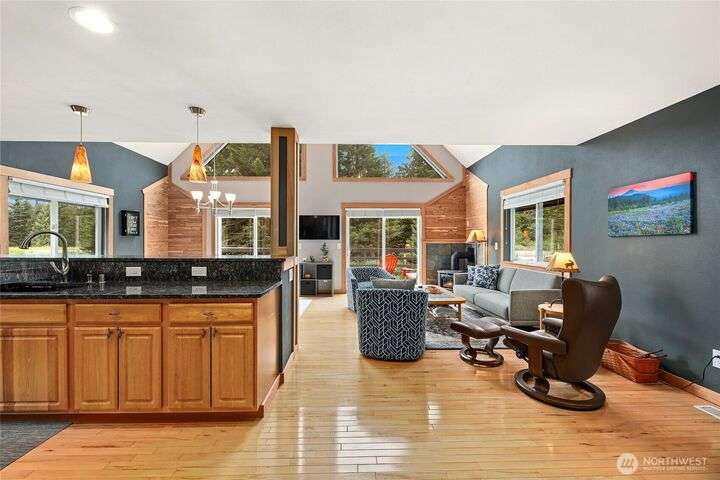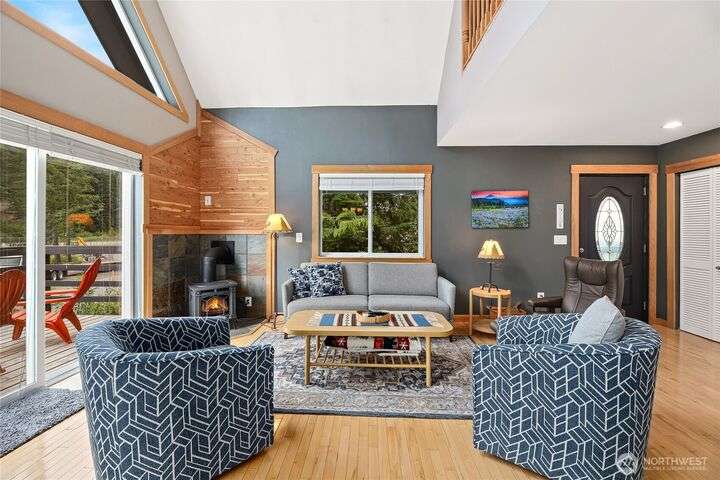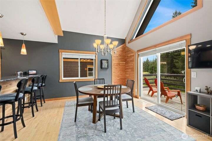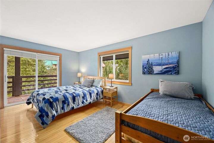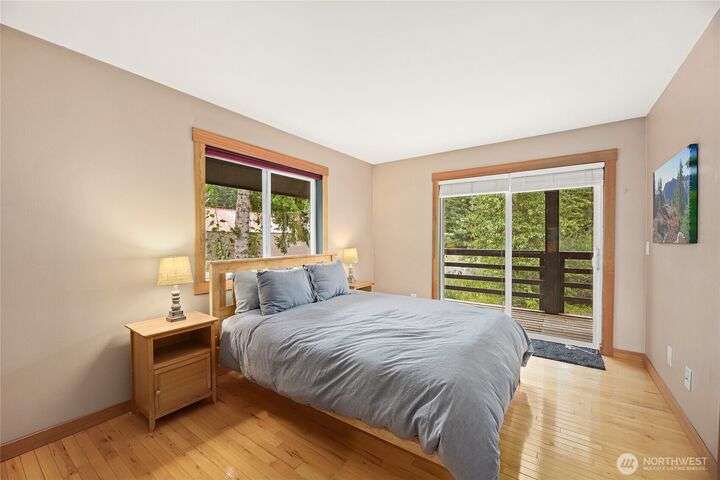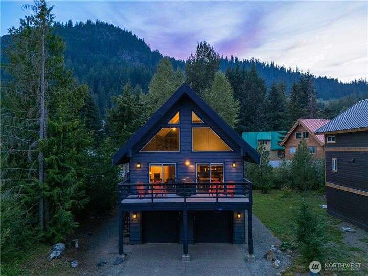 Well cared for and multi-group-friendly, this mountain retreat is just steps from ski slopes and local trails. The open-concept great room flows to a deck ideal for gatherings or get cozy inside by the fireplace after a long day on the slopes. Two bedrooms on the main level share a deck out back and the primary suite enjoys its own private retreat with private deck and separate open loft being perfect for an office or homework nook on the upper level. A spacious lower-level flex room with sauna offers space for a bunk room, playroom, or media room. Private backyard with plenty of sunlight and privacy and two-car garage, this home combines comfort, flexibility, and mountain adventure.
