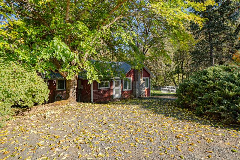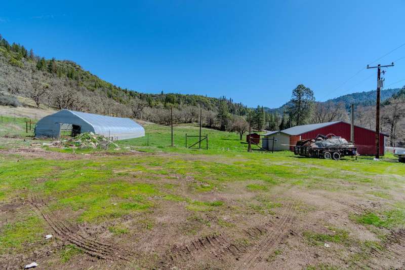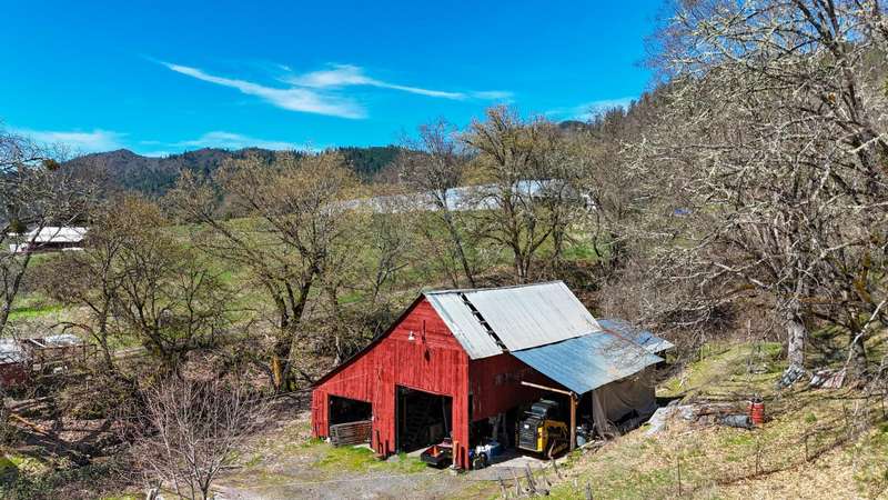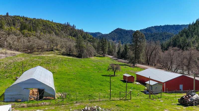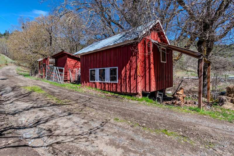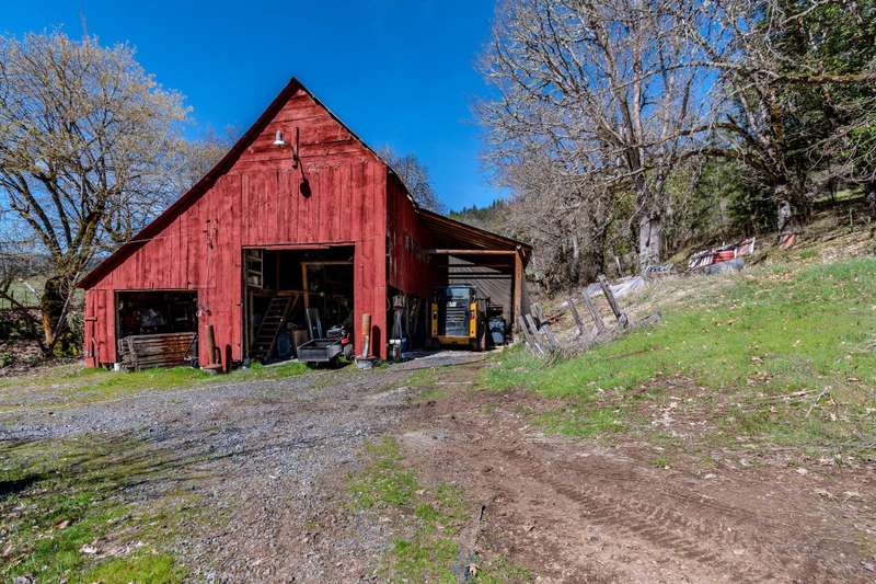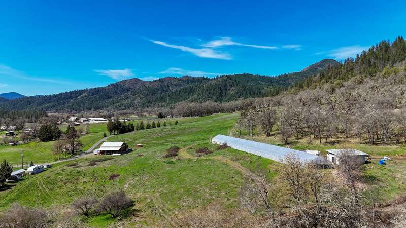 Discover a beautiful rural Southern Oregon farm with diverse business opportunities, agriculture, and peaceful living. The original farmhouse is situated on 39 gently sloping acres, featuring farmland, timber, meadows and views of Evans Creek from the front porch. This property is backed to BLM land offering private hiking and riding trails. Strong water rights support agricultural, livestock and equestrian ventures. The charming ADU generates income as a superhost on Airbnb. Certified organic greenhouses and a commercial kitchen can be re-established for additional revenue. The property includes two greenhouses (30x90 ft & 30x265 ft), a certified kitchen/cooler building, a rebuilt pole barn and a 40x60 steel framed shop with new 600-amp panel. Additional features include a chicken coop, RV storage with hookups, and a fully insulated garage with an office. A list of recent energy-efficient upgrades and photos of the aquaponic system and Airbnb business are available upon request.