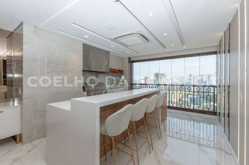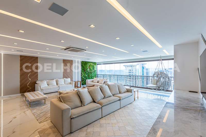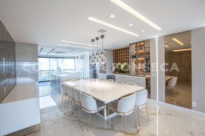 Apartamento no condomínio MYRA ALPHAVILLE, com 313m² área privativa/útil, 3 dormitório(s), 3 suíte(s), 5 vaga(s), 5 banheiro(s), churrasqueira, escritório, terraço, depósito, ar condicionado, dep. de empregados, varanda gourmet.