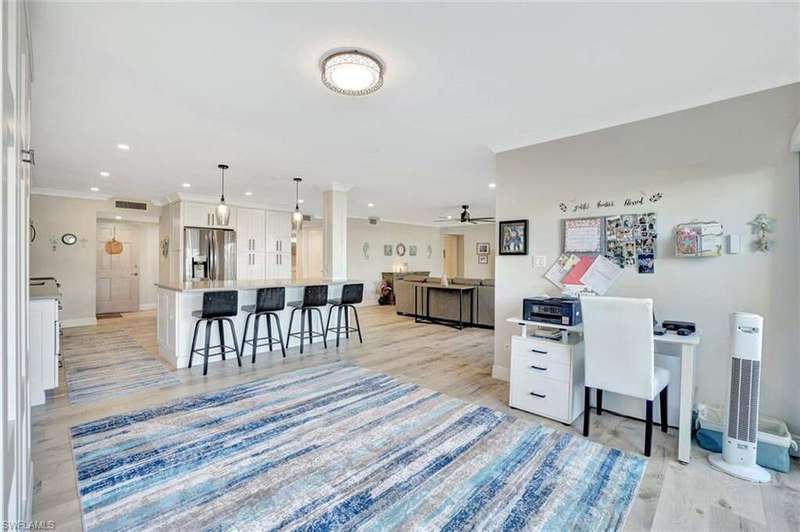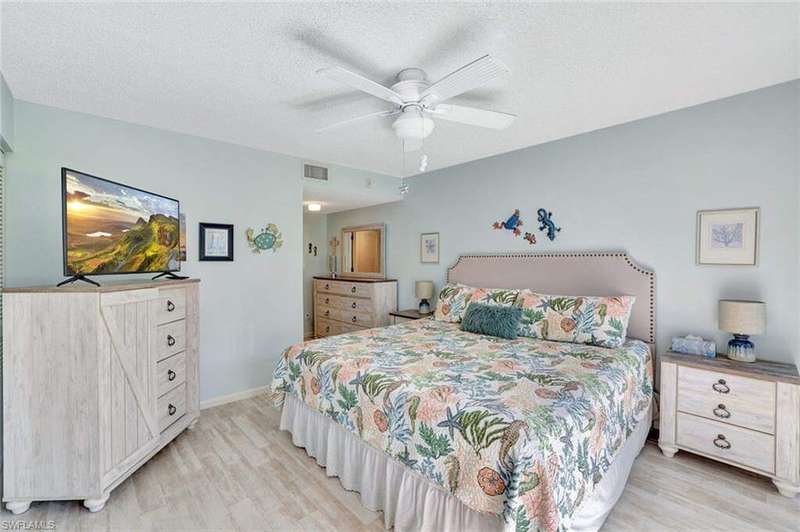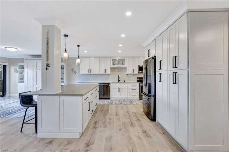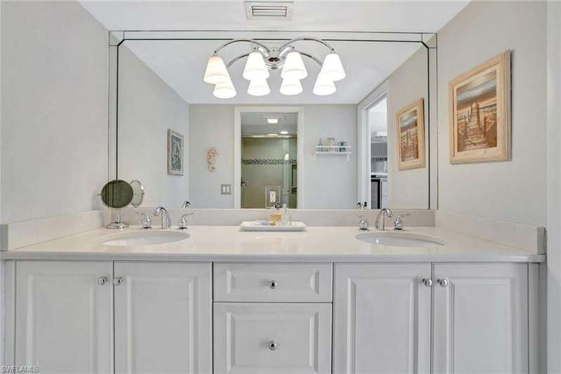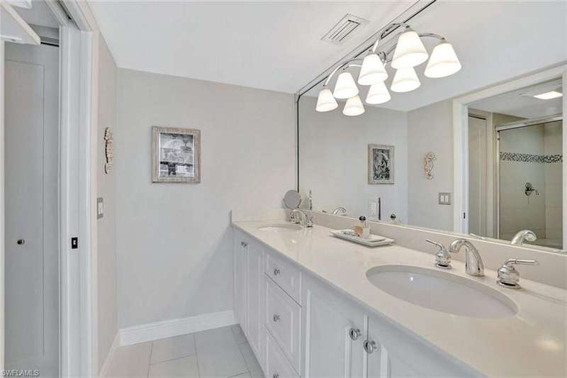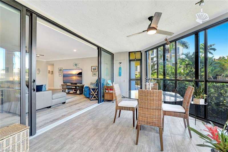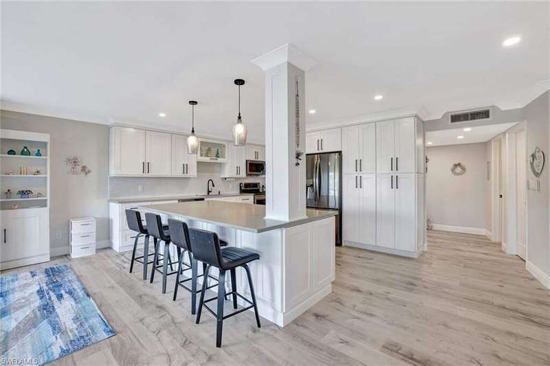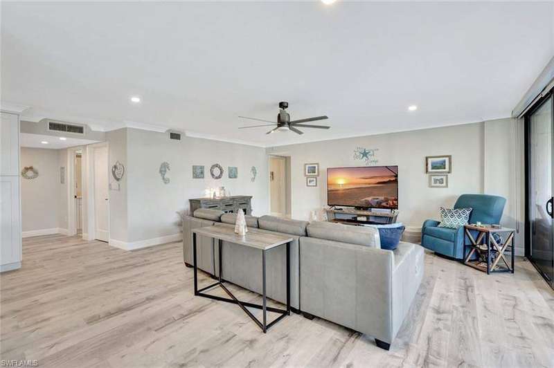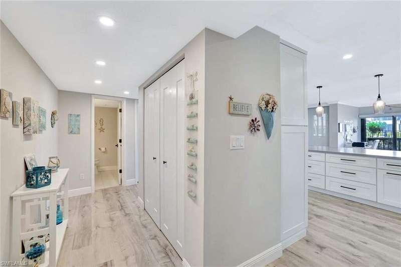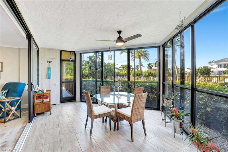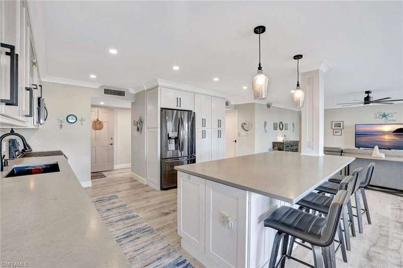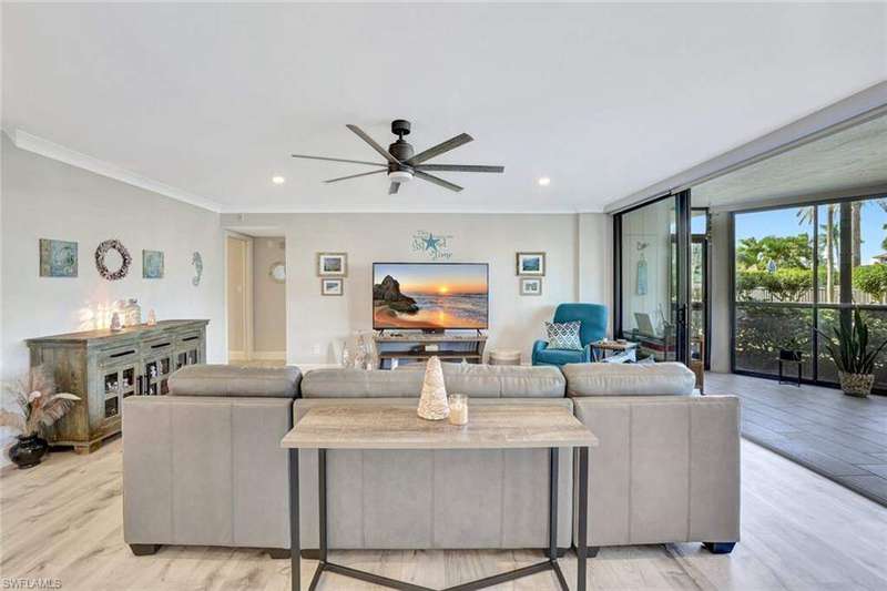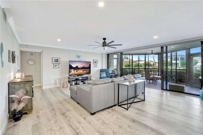 Welcome to this COMPLETELY UPDATED first floor unit in boaters paradise! A RARE GEM, this unit has its own deeded boat slip (slip #1) and has been beautifully renovated for you to begin enjoying paradise in beautiful Marco Island! This First Floor unit remains HIGH AND DRY. Tropical Isle is located at the south tip of Marco Island which provides the benefit for boaters of both quick and easy access to the gulf and NO bridges! Featuring two bedrooms, two and a half baths, and 1,660 square feet of living space, lovely renovated condo is a perfect blend of comfort and elegance. The layout is enhanced by large impact-resistant windows and sliders that allow all the natural light into your living space. The bright and spacious living room extends to a lanai, perfect for relaxing while overlooking the tranquil canal. The lanai features a tile floor, a screened enclosure with sliding glass doors, and plenty of seating space, creating an ideal spot to enjoy the serene views. The gourmet kitchen has white cabinets, a large center island made of honed concrete quartz ,and stainless steel appliances including a range, microwave, trash compactor, dishwasher, and refrigerator. The owner's suite is a true retreat with glass sliding doors that lead to the private balcony and lanai offering owners tranquility The en-suite bath is designed for luxury with a double sinks, full-width mirrors, and a walk-in shower with a glass enclosure and customer tile . The second bedroom has its own balcony and is served by an adjacent bath featuring a vanity and a glass enclosed shower and custom tile. Additional highlights include a laundry room with washer and dryer, as luxury laminate flooring throughout the main living areas. This residence also includes a convenient covered parking space! Tropical Isles offers numerous amenities, including a fitness center, library, community room, hobby room, rentable kayak racks, a heated pool, and ample covered parking with bike racks. Set in a low-density building on a quiet cul-de-sac, this condominium is a half a mile from South Beach an easy morning walk with access and close to dining, shopping, a movie theatre, and mini golf. Enjoy the island's museums, boutiques, restaurants, library, pickleball, tennis, golf, and parks, and an executive airport just off the island. Experience the ultimate Florida lifestyle in this exquisite waterfront condominium, where every detail has been carefully curated to provide an unparalleled living experience.