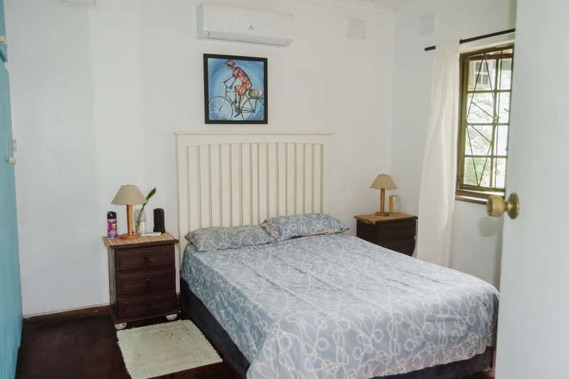 This cozy two bedroom house nestled in the heart of the leafy suburb of Widenham offers a quiet retreat especially ideal for the nature lover. A country style kitchen with blue and white cabinets opens to a snug dining area and around a feature wall to the nicely sized lounge. Parquet flooring in the lounge and bedrooms lends a sense of old world charm to the home, while Air conditioning units and ceiling fans help to regulate our warmer climate. There is a guest loo and a bathroom with a bath inside and a homemade outdoor shower for those who might like to join the birds chorus! An energy efficient gas geyser provides for your hot water needs. Off the lounge there is a covered patio where you can have your morning brew overlooking the garden greenery while being soothed by the sounds of the nearby stream. The back garden offers great potential for cultivation with a few fruit bearing trees already in place and you sport the chance of spotting a local Duiker or Bush Buck too! A single, extra length, lock up garage - plumbed for laundry - rounds off the offering. If you're looking for something smaller that feels close to nature but is still in suburbia within a short drive of shops and amenities.... this one should be on your list to view! Click to contact us and we'll book your personal tour today.