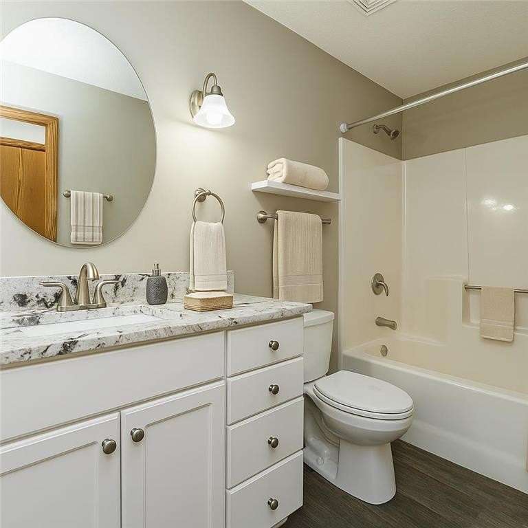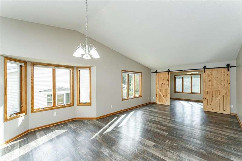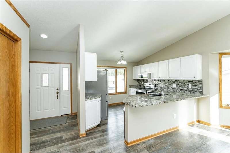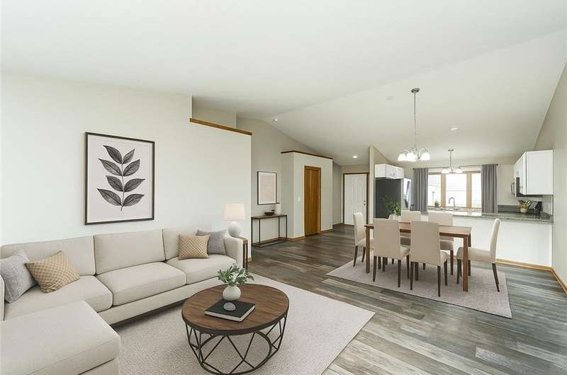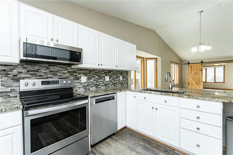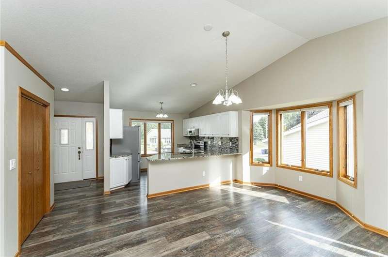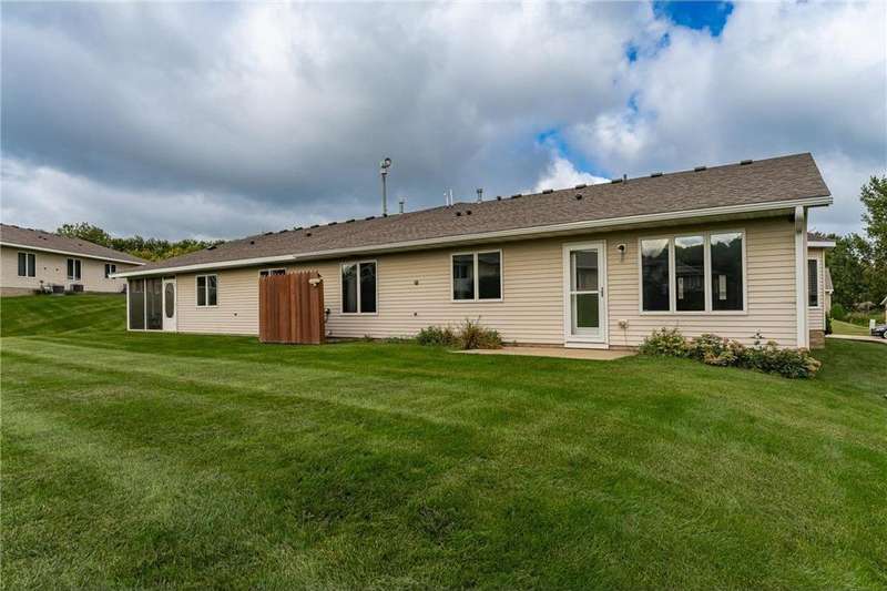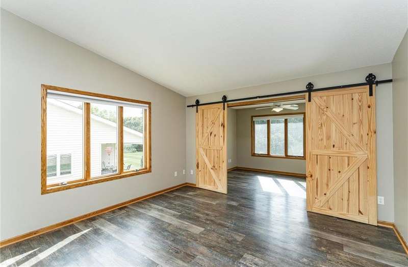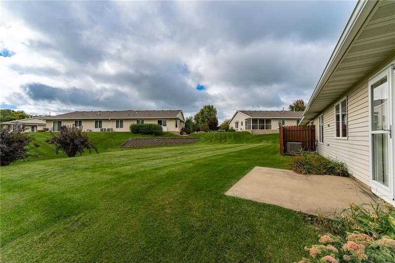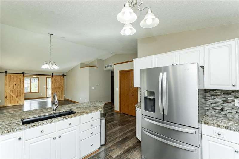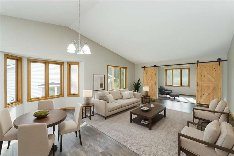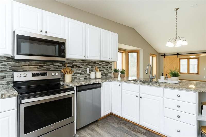 Enjoy main-floor living at its finest with an airy, light-filled layout. The spacious kitchen offers abundant cabinetry, generous granite countertop space, and casual counter seating, all seamlessly connected to the dining and living areas beneath a vaulted ceiling. Stylish sliding barns doors open to a cozy sunroom, perfect for morning coffee or evening relaxation, with direct access to a private patio retreat. The stylishly updated primary suite features a large walk-in closet and a private 3/4 bath complete with a step-in shower and counter-height vanity & comfort Hiegh stool. A second bedroom with a roomy closet, a full bath, and a convenient laundry room with sink add to the home’s thoughtful design. Additional highlights include a two-stall garage, updated roof, furnace, A/C, and water heater (all updated in 2018), plus handicap-friendly features for ease and accessibility. This totally updated, move-in ready home combines comfort, function, and peace of mind.