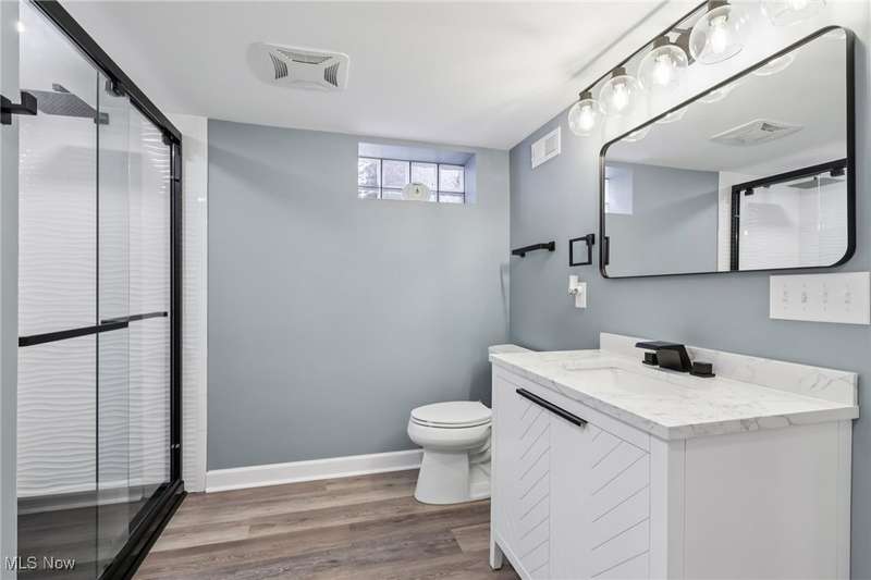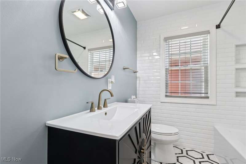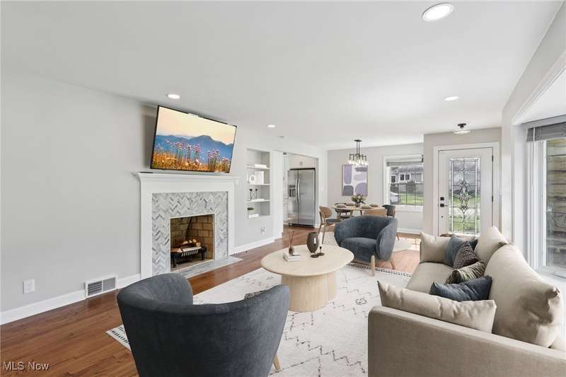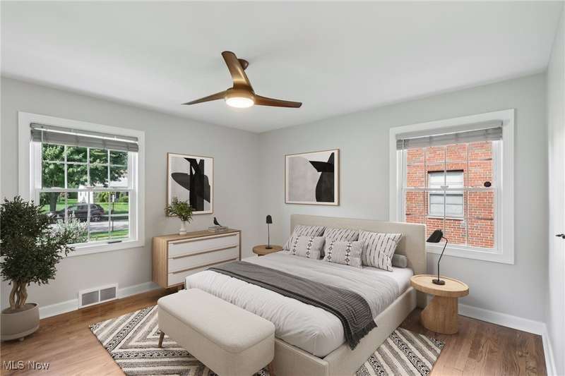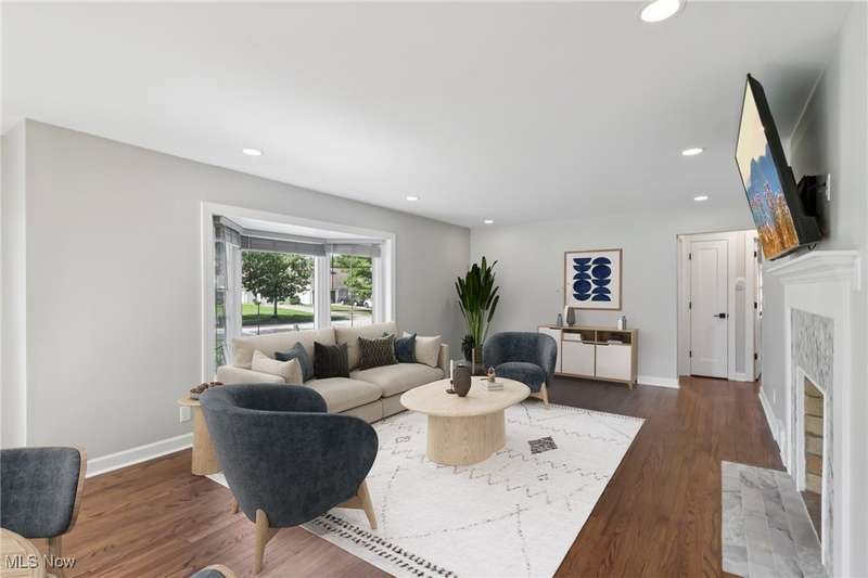 Welcome to 1073 Hereford Rd in Cleveland Heights, located in the historical Forest Hills community. This beautifully renovated brick ranch blends timeless 1950s charm with today's modern design and features a new fenced in backyard. The staged photos will help you envision the versatile layout for your future furniture placement. Every detail has been thoughtfully updated inside and out with top notch materials and quality of work. Head in through the front door and notice the spacious living room that showcases refinished hardwood floors and a striking wood-burning fireplace with herringbone tile. The open concept offers a bright dining area that flows seamlessly into the brand-new kitchen, featuring Shaker-style soft close cabinetry, quartz countertops, a stylish herringbone backsplash, sideboard serving area and stainless steel appliances, including a counter-depth refrigerator and 5-burner gas range. All of the bedrooms feature rich hardwood flooring and matching wood ceiling fans, with crisp white panel doors and updated hardware provide a fresh, cohesive look throughout. The main bath blends classic white subway tile with an octagon tile floor, accented by a black vanity and brushed gold fixtures for a touch of drama. The expansive lower level offers endless possibilities with the sandstone fireplace with room for a billiards table, a wet bar or a priceless space for movie nights. The spa-like full bath features a walk-in shower with wave-pattern tile, rainfall showerhead, hand-held wand and four spray jets. Every major mechanical system has been upgraded: 95% energy-efficient furnace and A/C, new 200-amp electric panel with updated meter and service line, 50-gallon hot water tank, new plumbing, fully insulated walls and attic, energy-efficient windows throughout, waterproofed basement, sump pump, and more. The 2-car garage with opener has a newer floor and driveway. Ask about the 7 year property tax abatement and schedule your private tour today!