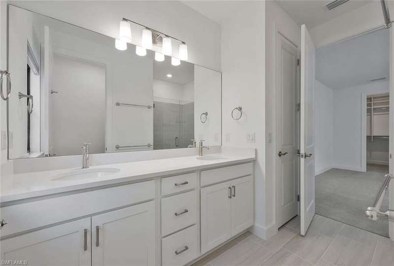 Welcome home to this stunning end-unit townhouse in brand-new SONOMA OAKS! You and your guests will enjoy this spacious open floorplan that features 3 bedrooms / 2.5 baths / 2 car garage and a screened-in lanai with brick pavers and more! Built in 2024, this unit offers over 2000 square feet of living space with high-end upgrades throughout. Featuring impact-resistant hurricane windows and doors, upgraded carpeting in the upstairs area, and custom ceiling fans and kitchen lighting, this unit truly is one of a kind. But that's not all! Each closet is fully customized by Inspired Closets, the windows each have blackout honeycomb blinds, the sliding glass doors feature a vertiglide patio blind from Hunter Douglas, and all bathroom hardware has been upgraded by Baldwin Brass. The home has an ADT alarm system with doorbell camera ready to be activated and is wired for wall-mounted TVs. Everything is ready for you to move in and start enjoying the Naples lifestyle that features the best selection of dining, shopping, golfing, and gorgeous beaches. Sonoma Oaks is a pet-friendly, family-friendly gated community that includes a heated community pool and cabana and is conveniently located between Vanderbilt Beach Rd and Collier Blvd.
