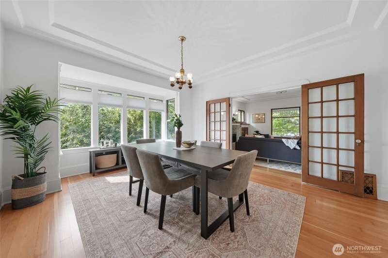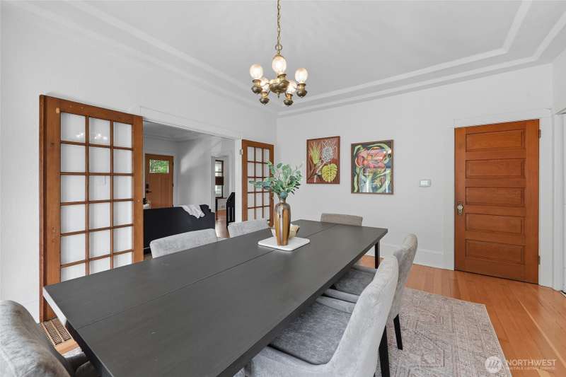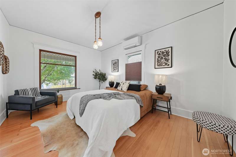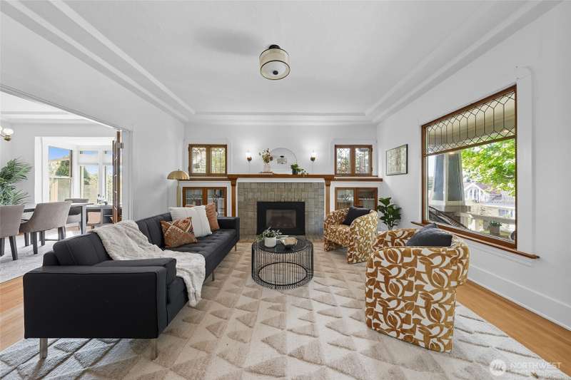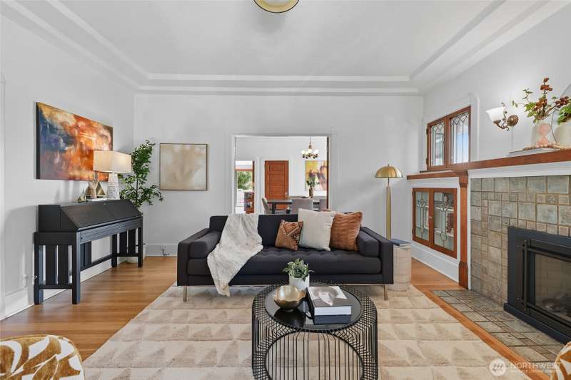 Discover timeless charm in the heart of TangleTown! Just 1 block from vibrant shops & dining this 4-bed, 1.75-bath Craftsman seamlessly blends historic charm w/modern living. Elevated from the street, showcasing original wood floors, stunning leaded windows, rich wood mantle & doors, period lighting, spacious dining rm, & generous kitchen. Modern comforts include NEW deck off the kitchen, SS Appliances, Heat Pump w/ductless mini-splits to keep you cool in summer, updated electrical panel & wiring, exterior paint, & re-insulated attic for year-round coziness. Basement has big bed w/bath, media rm, MIL potential, laundry & storage area. Sunny fenced yard w/garden spcs, a detached garage w/patio area above, great for outdoor entertaining.