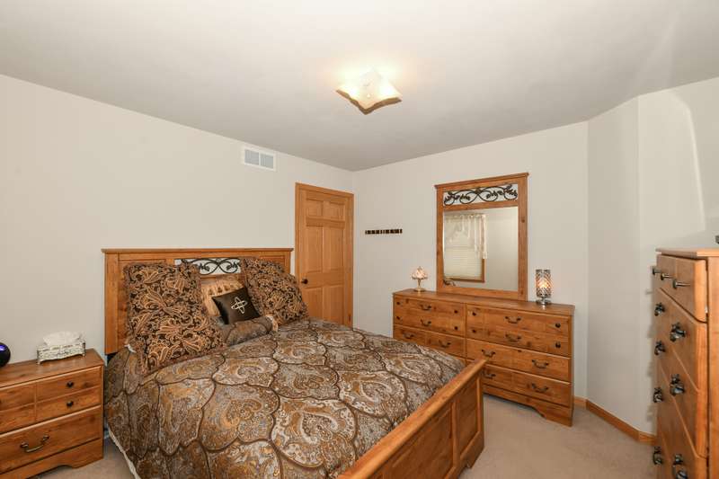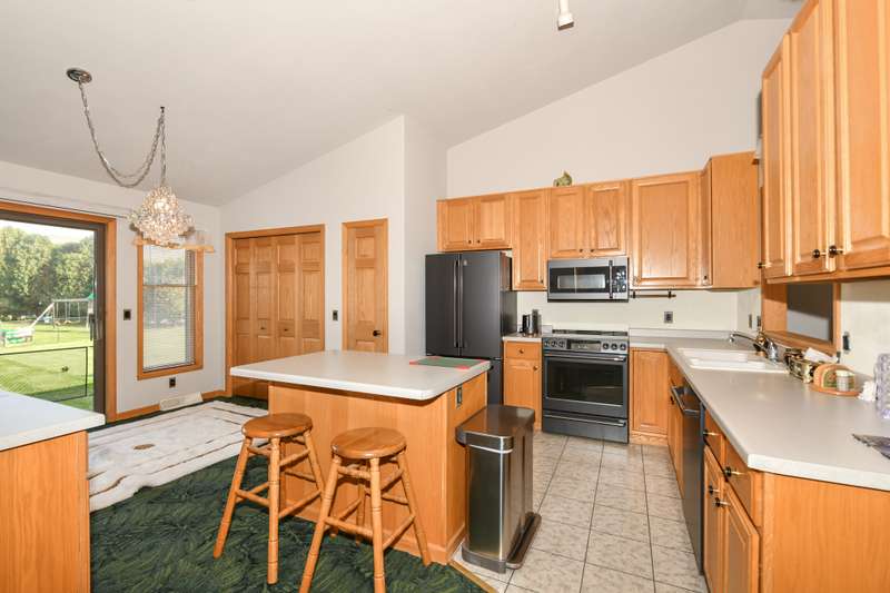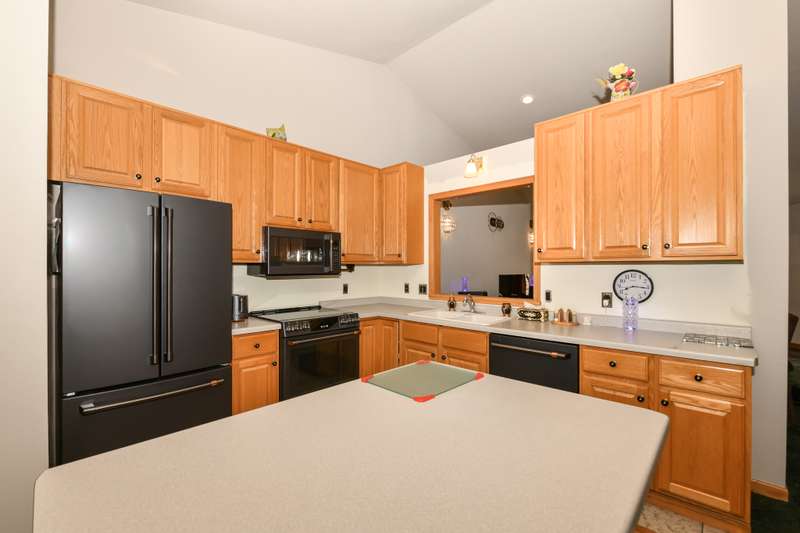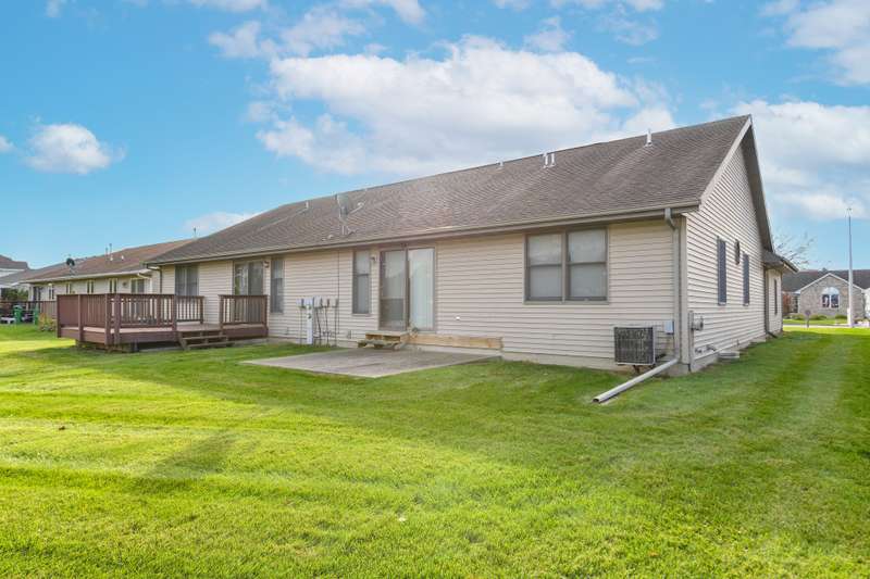 Modern private entry side by side ranch condo with loads of interior updates. 2 bedroom, 1.5 bath with full private basement space and 2 car attached garage. Open concept kitchen with vaulted ceiling, newer brushed nickel appliances included, island, pantry, and adjacent to dining room with full sized washer/dryer included and patio door access to concrete entertaining space and pleasant greenspace. Primary bedroom has walk in closet and jack and jill full bath. Poured concrete foundation, large rec room, storage shelves, newer high efficiency furnace, and large circuit panel make for excellent lower level. Wonderful opportunity for a truly loved space, call today!
