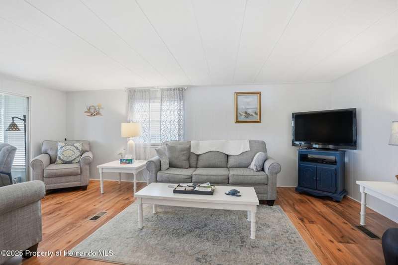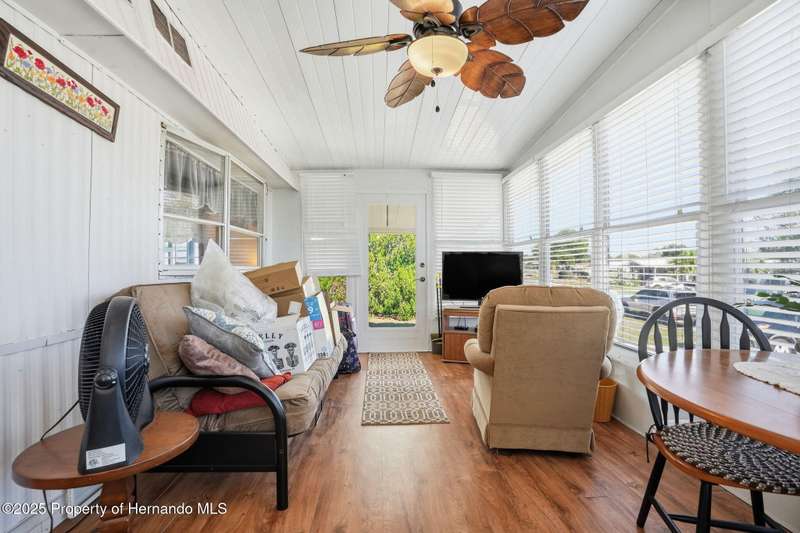 Looking to live in one of the most desirable 55 plus HOA's in Central Florida where you OWN YOUR OWN LAND? Now is your opportunity! Situated in close proximity to the front gate, pool and golf course this partially furnished, meticulously maintained 2-bedroom, 2 bath home shows pride of ownership. Beautifully updated, the interior of the home is light, and bright with a comfy cozy open floor plan! Step through your sliders to your beautiful all season Florida room with thermal windows and door and enjoy a cup of coffee. Outside you have a spacious backyard, landscaping with drip irrigation system for flower beds, screened lanai which leads to the storage shed complete with your washer and dryer. Amenities include heated swimming pool, clubhouse, tennis, pickleball fitness room, community center, library, and much more. Rubber roof and vapor barrier were replaced in 2019 and flooring replaced in 2020 by previous owners.