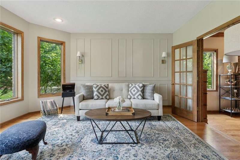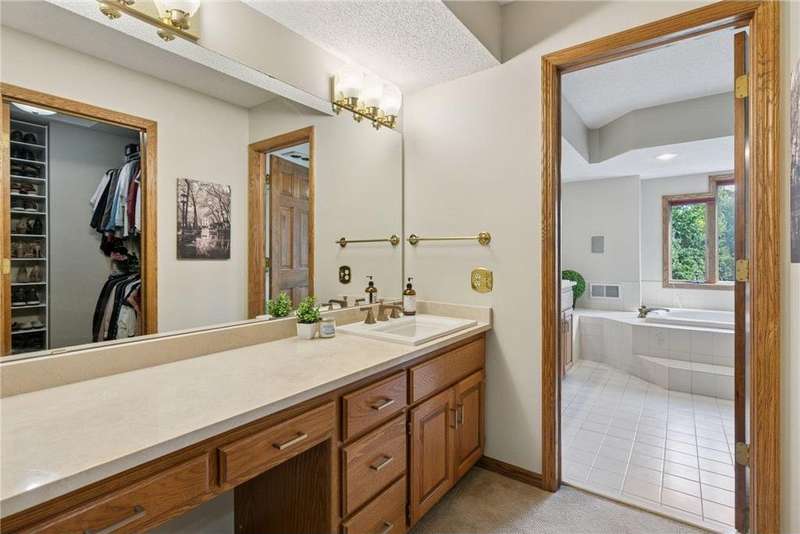 Stately, pristine two-story home nestled on a private, wooded lot within a highly desirable neighborhood and located in top-rated Lakeville Schools! This meticulously maintained residence combines timeless elegance, thoughtful updates, and quality construction that exceeds new builds, offering a truly grand layout and an inviting, majestic setting. From the moment you step into the expansive two-story foyer, you'll feel the pride of ownership and attention to detail throughout. The heart of the home is the open-concept kitchen, featuring granite countertops, ample cabinetry, casual dining space, and stainless appliances—perfect for everyday living and entertaining. Adjacent to the kitchen is a spacious family room with a gas fireplace, a sunny 4-season porch that steps down to the deck, and an updated formal dining room with a convenient butler's pantry. The main level also features an updated formal living room. Upstairs, the luxurious primary suite offers a true retreat, featuring a cozy sitting room with French doors and a gas fireplace, walk-in closet, dual vanities, a jetted tub, and a separate walk-in shower. Two additional upper-level bedrooms each include walk-in closets, ceiling fans, and share a spacious Jack-and-Jill bathroom. The finished walk-out lower level adds even more functionality and charm, with a large family room, a wet bar, gas fireplace, 4th bedroom, and a 3/4 bath, ideal for entertaining or multigenerational living. Oh, did we mention the XL storage room? Enjoy unmatched outdoor living in the beautifully landscaped yard that was professionally designed. Savor the serene backyard with mature trees, privacy, and multiple spaces to relax or host. Features include a large deck, sprawling paver patio, in-ground fire pit, French drain system, and WiFi-controlled irrigation. Trees line the rear of the lot for a true backyard oasis feel. Ideally located just 25 minutes from downtown Minneapolis, with easy access to shopping, dining, parks, and major commuter routes. This home blends luxury, location, and lifestyle, and is ready for you to move in and enjoy. Truly a must-see to appreciate all the features and space this beautiful home has to offer. Don't wait, schedule your private showing today!