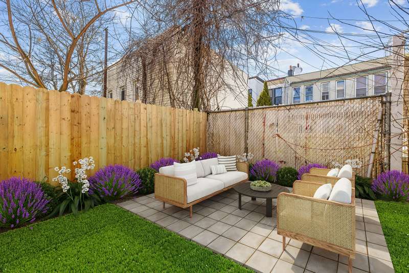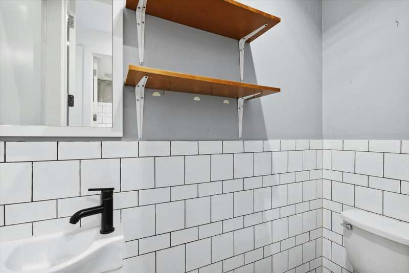 This 3-bedroom, 1-bathroom duplex apartment enjoys northern and southern light, hardwood flooring throughout, and a partitioned garden area. The upper floor is comprised of a renovated kitchen, appointed with grey cabinetry, tiled backsplash and stainless steel appliances, including a microwave and a dishwasher, as well as a small living/dining area and three well-lit bedrooms. Access out to the backyard is located in one of the back bedrooms. The full bathroom is complete with under-sink storage and a soaking tub.