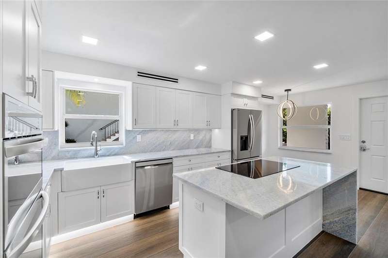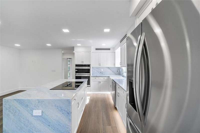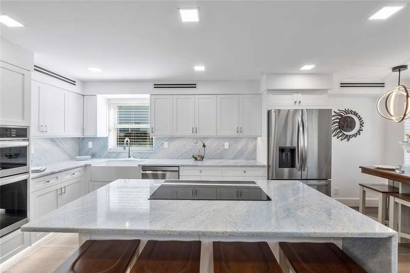 OCEAN RIDGE'S BEST KEPT SECRET! Freshly painted walkway lit w/LED lights. Completely luxury renovated unit: porcelain tile flooring, LED ceiling lights, Island Kitchen with induction cooktop & granite countertops. Modern LG appliances, farmhouse sink, expansive cabinet storage. Undermount cabinet light & book match on countertops w/ backsplash. Washer/ Dryer hook up . Half bathroom w/ custom vanity w/ lighted mirror and high toilet. Custom interior doors w/ glass panels, barn doors & pocket doors. Master suite w/ beautifully custom bathroom w/ high toilet, large tile panels and shower with two niches. Hurricane impact windows and sliders. ALL AGES BUILDING, private beach, porch close to community pool. Heated pool, boat dockage, 2 clubhouses with picnic/BBQ areas, fitness center.