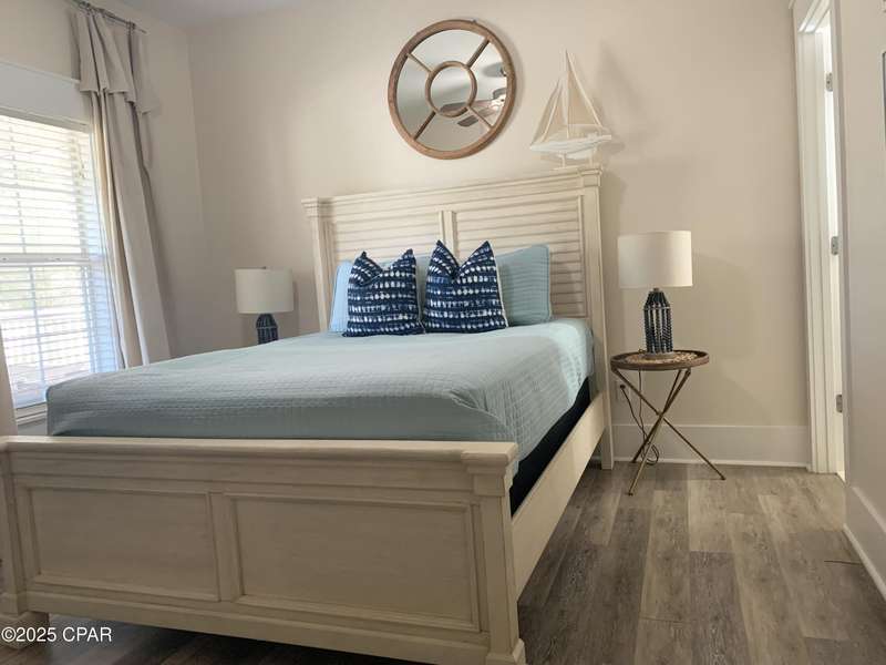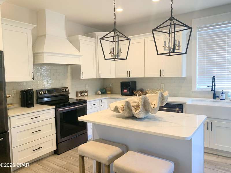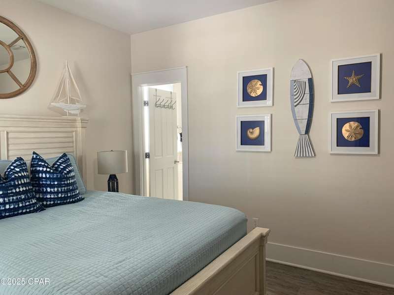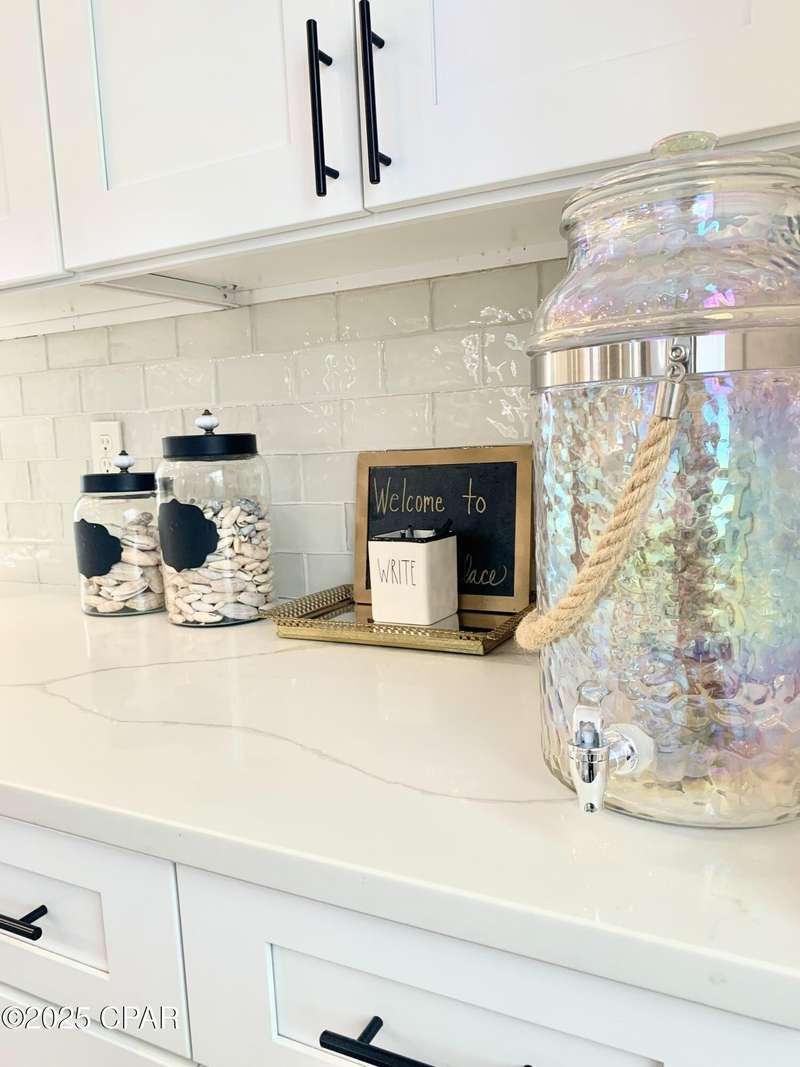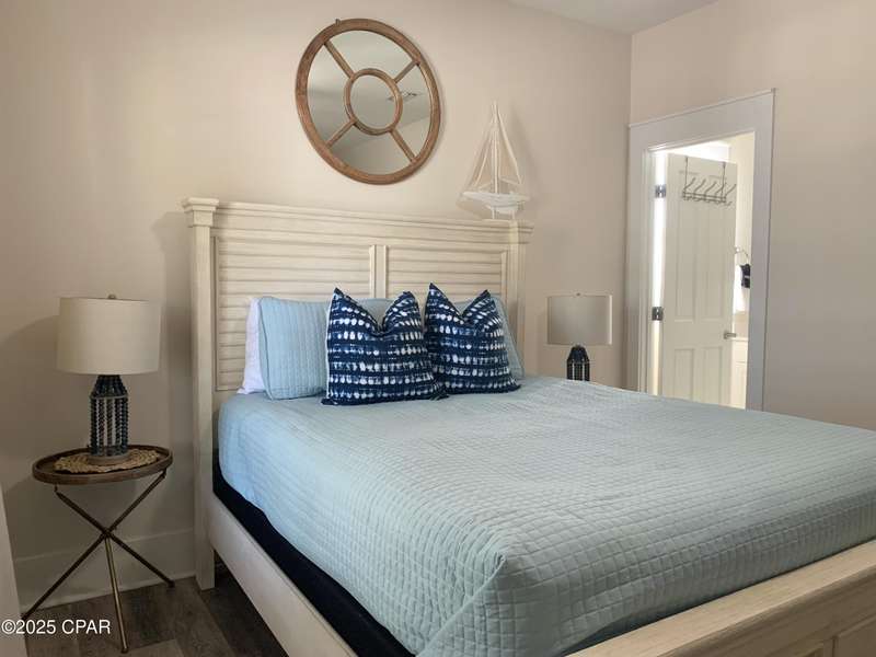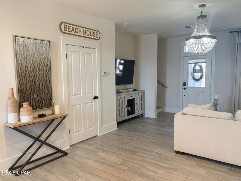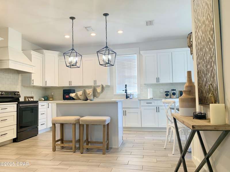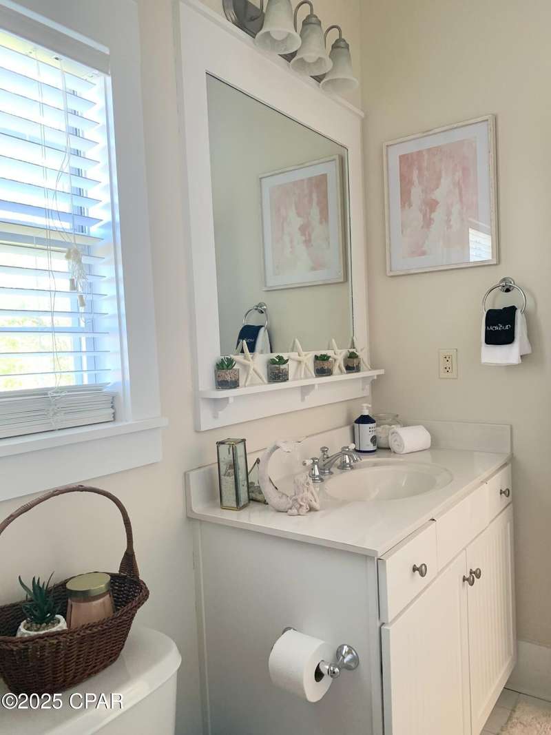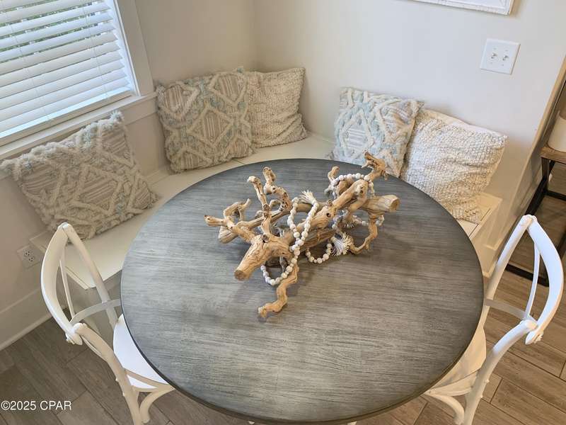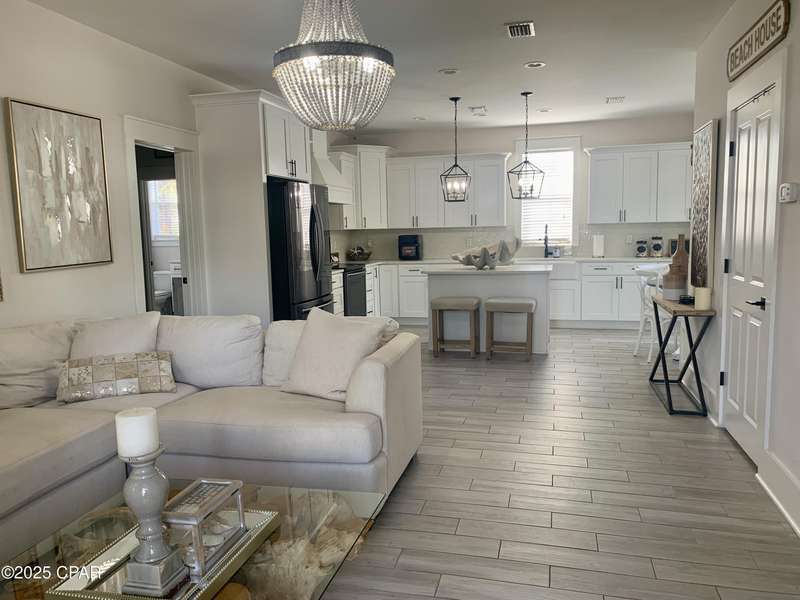 Style and function come together in this 3-bedroom, 3.5-bath home in Barefoot Cottages, offering a relaxed beach vibe with thoughtful design throughout. The open-concept main level welcomes you with upgraded finishes and a kitchen designed for easy coastal living. Quartz countertops, stainless steel appliances, and abundant cabinetry make meal prep simple after a day on the sand. The quartz-topped island adds extra seating and storage, while the dining area features built-in bench seating. The large primary suite includes a walk-in closet and private bath. A half bath with washer and dryer completes the main floor. Upstairs, two additional bedrooms feature laminate flooring, TVs, and their own private bathrooms, making them ideal for guests or family. One upstairs bedroom opens to a screened porch, perfect for enjoying evening breezes. A second screened porch is located at the front entry, offering a comfortable spot for morning coffee or relaxing after a day on the water. This home is conveniently located near the community's larger pool and clubhouse, which includes fitness equipment and an upstairs gathering area. Barefoot Cottages has two additional pools, a hot tub, BBQ areas, and walkable pathways throughout the neighborhood great for morning strolls or walking the dog. St. Joseph Bay and nearby sugar-sand beaches are just minutes away, and both Port St. Joe and Mexico Beach provide easy access to dining, shopping, and coastal activities. The home is sold furnished and is ready for use as a primary residence, second home, or vacation rental.