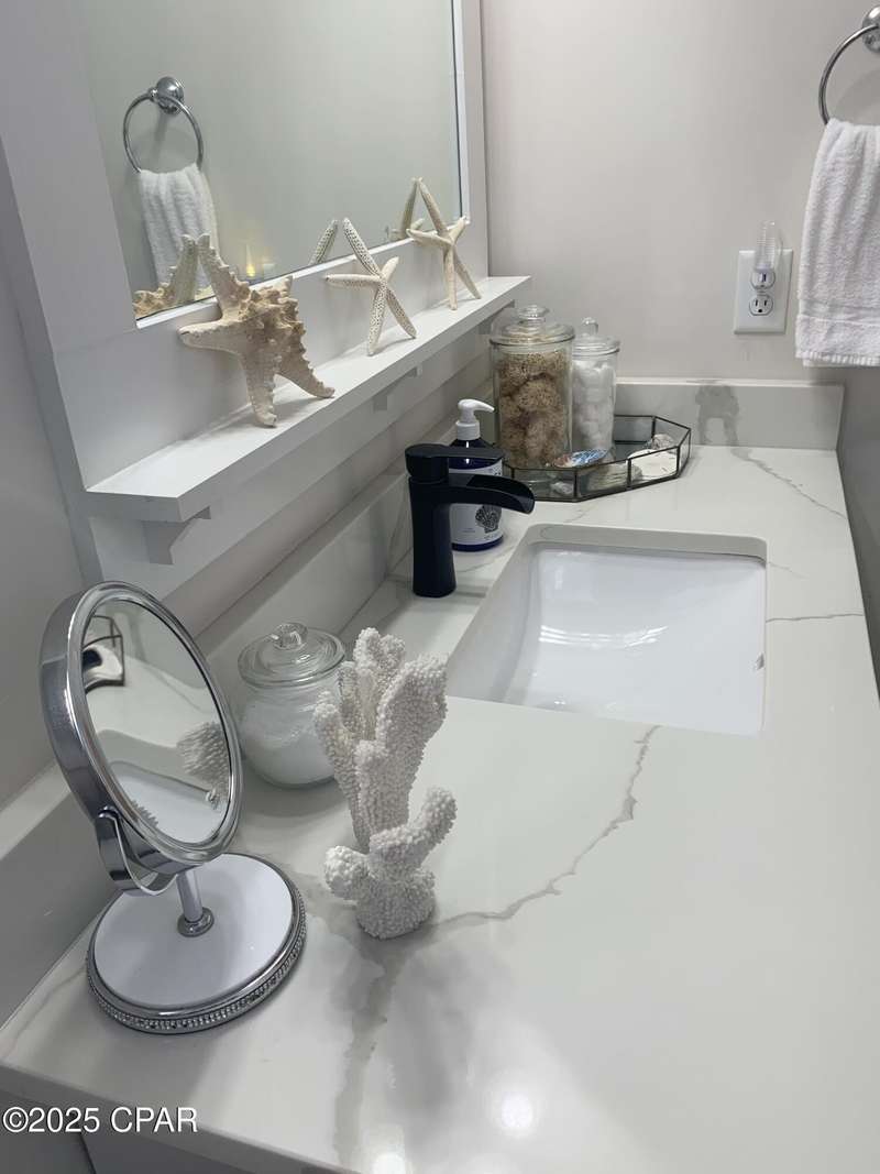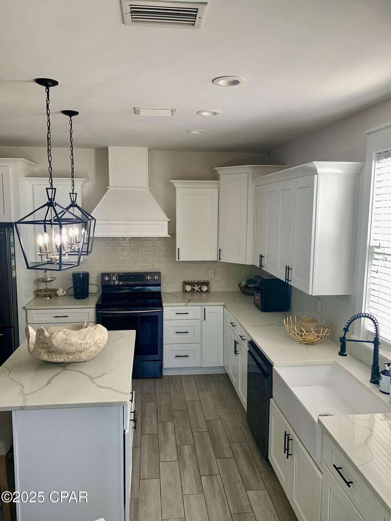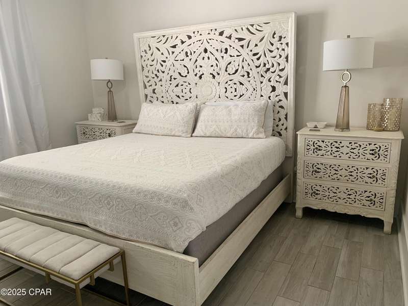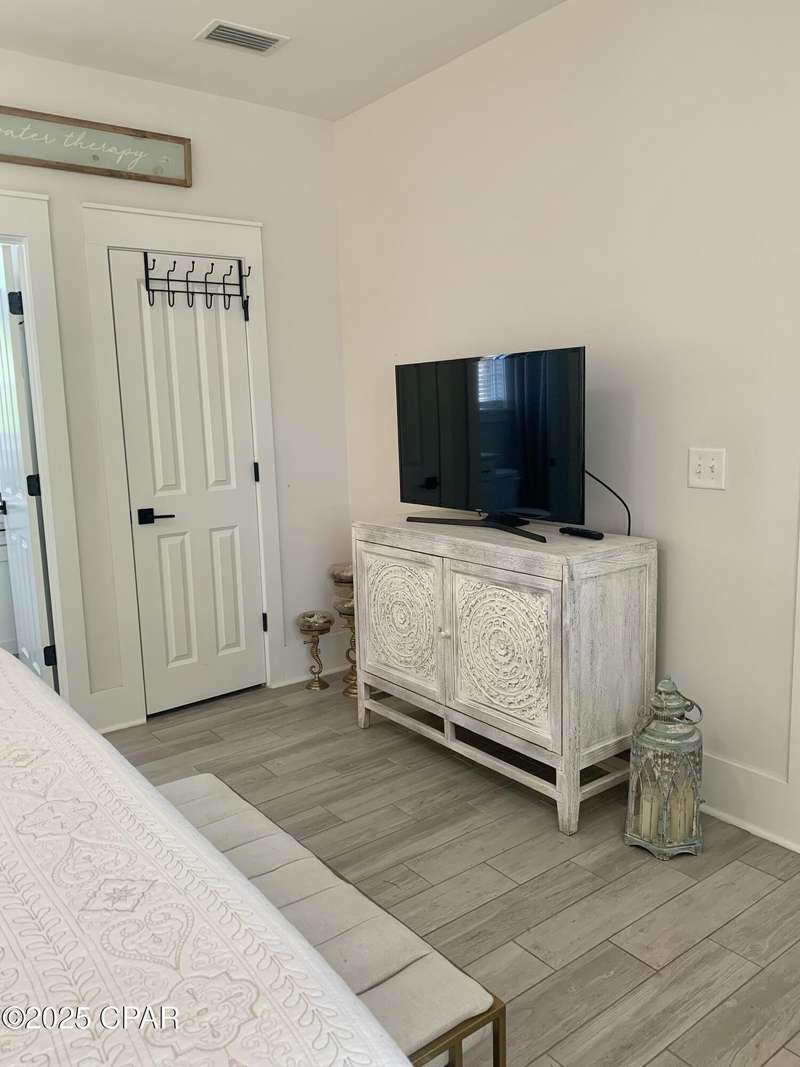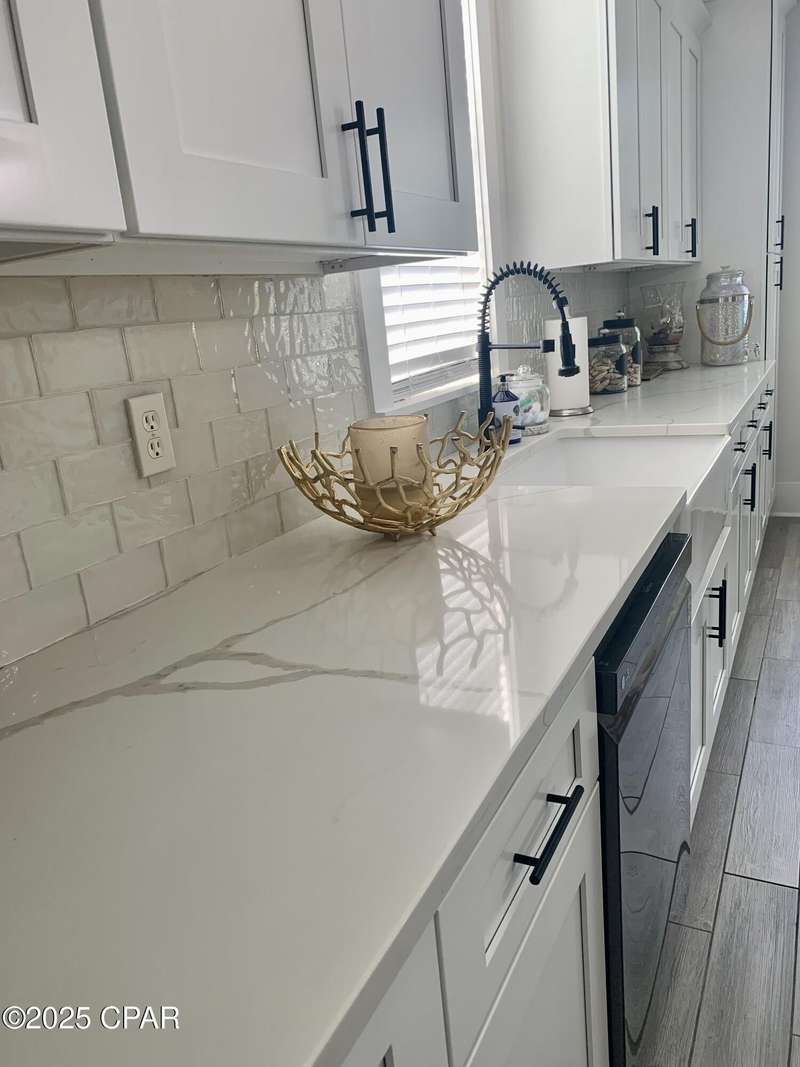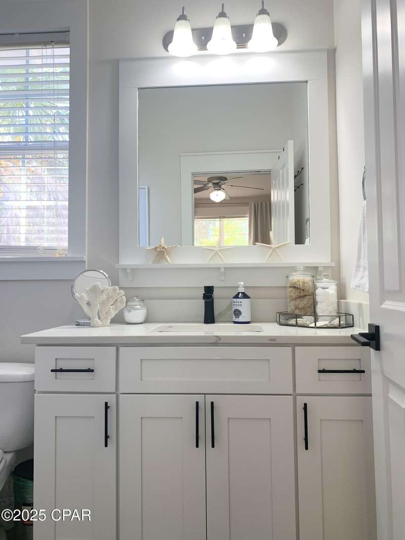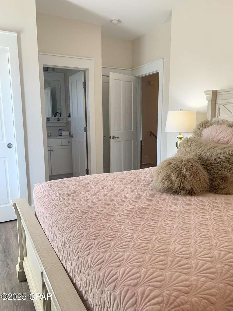 Style and function come together in this 3-bedroom, 3.5-bath home in Barefoot Cottages, offering a relaxed beach vibe with thoughtful design throughout. The open-concept main level welcomes you with upgraded finishes and a kitchen designed for easy coastal living. Quartz countertops, stainless steel appliances, and abundant cabinetry make meal prep simple after a day on the sand. The quartz-topped island adds extra seating and storage, while the dining area features built-in bench seating. The large primary suite includes a walk-in closet and private bath. A half bath with washer and dryer completes the main floor. Upstairs, two additional bedrooms feature laminate flooring, TVs, and their own private bathrooms, making them ideal for guests or family. One upstairs bedroom opens to a screened porch, perfect for enjoying evening breezes. A second screened porch is located at the front entry, offering a comfortable spot for morning coffee or relaxing after a day on the water. This home is conveniently located near the community's larger pool and clubhouse, which includes fitness equipment and an upstairs gathering area. Barefoot Cottages has two additional pools, a hot tub, BBQ areas, and walkable pathways throughout the neighborhood great for morning strolls or walking the dog. St. Joseph Bay and nearby sugar-sand beaches are just minutes away, and both Port St. Joe and Mexico Beach provide easy access to dining, shopping, and coastal activities. The home is sold furnished and is ready for use as a primary residence, second home, or vacation rental.
