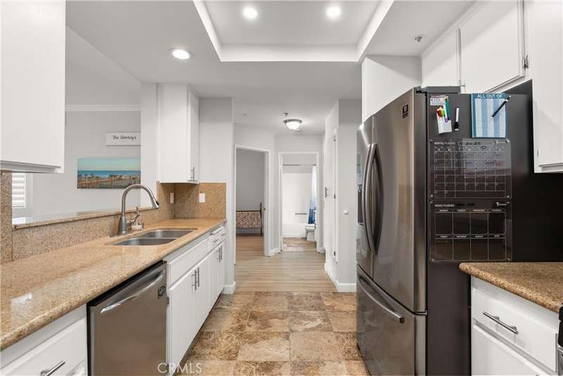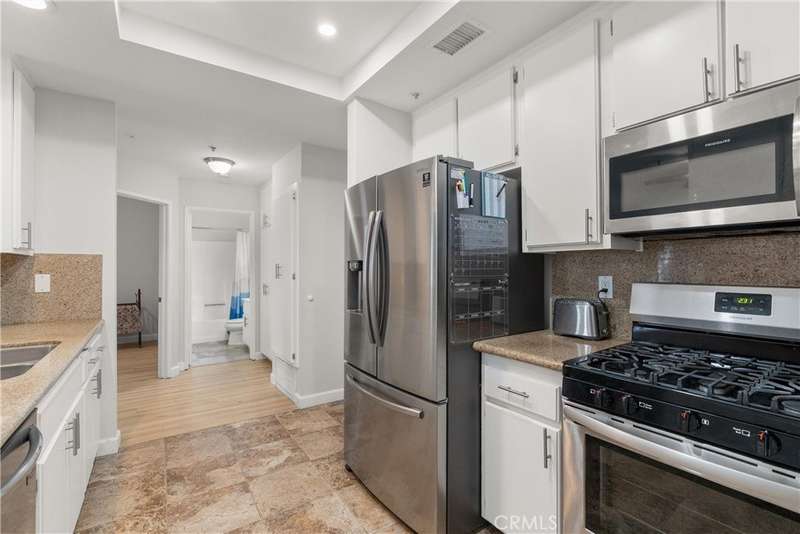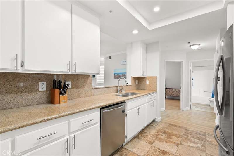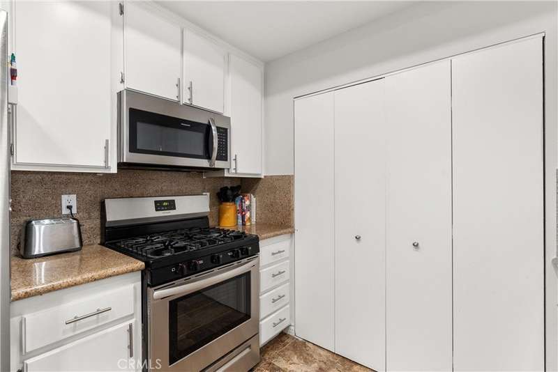 Life inside Greenbrier Terrace moves at a gentler pace. This fully gated community welcomes you with swaying trees, landscaped courtyards, and the promise of relaxation around one of four sparkling pools and four inviting spas. Here, there’s always space to stretch out, breathe deep, and unwind. Inside, the home opens to soaring ceilings that elevate the living space and fill it with light. Luxury vinyl flooring underfoot and crown molding above add warmth and refinement, while sliding doors lead you to a spacious balcony, your personal retreat for morning coffee, quiet evenings, or lively gatherings with friends. The kitchen is both stylish and functional, complete with granite counters, stainless steel appliances, and generous storage. The primary suite offers balcony access, a walk-in closet, and a dual-sink bath, while the second bedroom and full bathroom provide space for guests, family, or an office. Comfort is effortless with central A/C and the convenience of inside laundry. A true standout feature is the two-car attached garage with direct access, a rare find that blends ease with security. Beyond your door, the resort-style amenities invite you to rest, recharge, and embrace the feeling of retreat. Perfectly situated in the heart of Orange County where you’re close to shopping, dining, and freeways. Whether you seek solitude, celebration, or the simple joy of everyday living, this home offers it all. Welcome to your Garden Grove retreat.