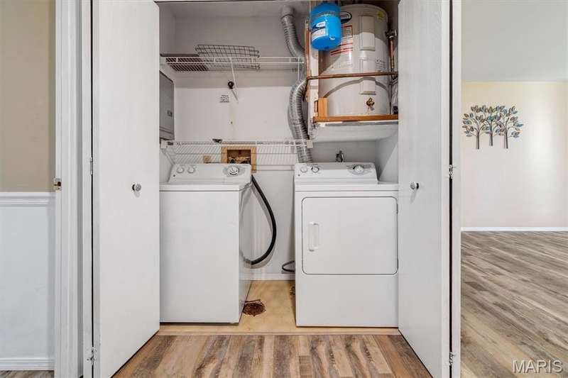 Garden Villa in Convenient St Peters! Welcome to 420 Cambridge Place—a spacious ground-level condo designed for comfort and convenience. Featuring wall-to-wall luxury vinyl plank flooring and an open floor plan, the living, dining, and kitchen areas flow seamlessly to create an inviting space for everyday living and entertaining. Step outside from the living room to your private patio overlooking green space—perfect for unwinding with a book or catching sunsets. Inside, you’ll find two generously sized bedrooms with ample closet space, plus a large dual-entry bath and in-unit laundry tucked away behind closed doors for ease and efficiency. Plus, washer and dryer are included with the sale! Additional storage on the patio provides room for larger items. Enjoy a low-maintenance lifestyle with a condo fee that covers water, sewer, trash, lawn care, snow removal, pool, clubhouse, and more. With one parking space and a building entrance, this home checks all the boxes. Just minutes from Mid Rivers Mall, dining, shopping, and major highways, this condo is the perfect blend of affordability, convenience, and community living.