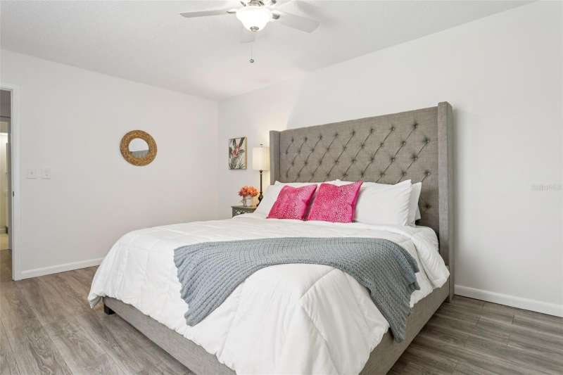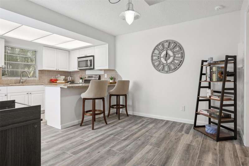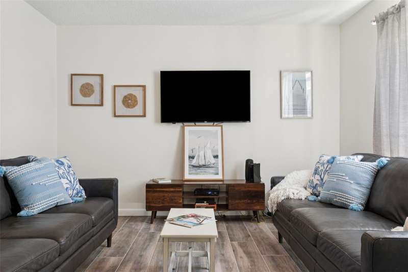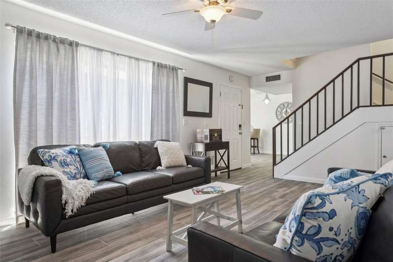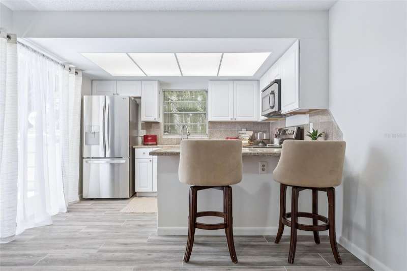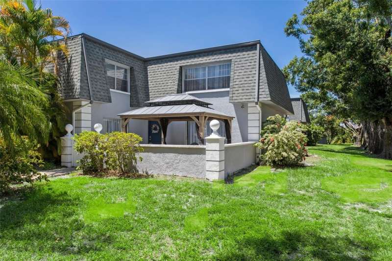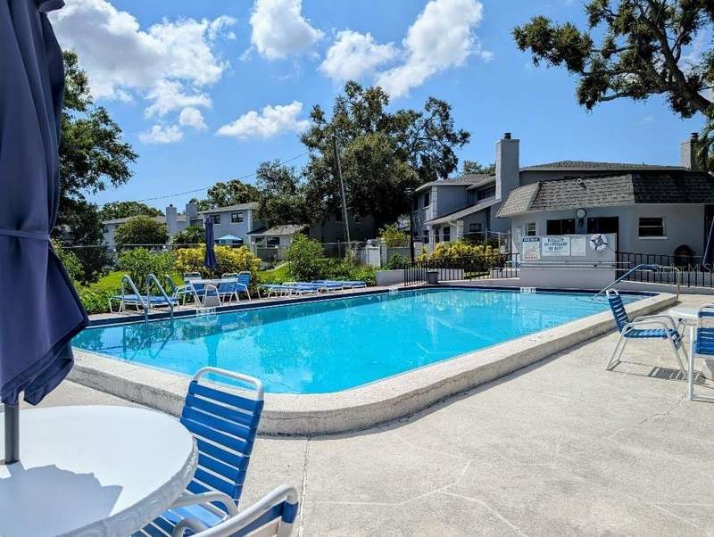 Under contract-accepting backup offers. PRICE DROP $15k! Move-In Ready! Desirable Calais Village, FRESHLY PAINTED 2-story condo/townhome with 2 Bedrooms / 1.5 Baths, assigned 1-car Carport. CHARMING garden gate welcomes you into private walled 14x20 COURTYARD with covered CABANA - your perfect Outdoor Living Space. Fresh neutral palette throughout, New WIDE PLANK tile floors and OPEN natural flow between 12x18 Living Room and Kitchen/Dining combo area. Kitchen has STONE countertops with Barstool counter and STAINLESS appliances including double oven range. Sliding glass doors in both the Living Room and Kitchen open onto the Courtyard area, making entertaining a breeze! Downstairs GUEST HALF-BATH + Laundry closet with WASHER/DRYER included. Additional extra storage closet under the stairway. Both bedrooms are upstairs with lots of natural light. 12x15 PRIMARY BEDROOM features 2 built-in closets with organizers, and the 12x13 Secondary Bedroom has closet organizers as well. Spacious HALL BATH has updated vanity and storage/shelving unit, linen closet & separate tub/shower area. Calais Village offers refreshing COMMUNITY POOL and tennis-pickleball-basketball courts. Ideally located just minutes to VIBRANT Downtown St. Pete, restaurants, shopping, and Gulf Beaches. NOT in a Flood Zone! Monthly condo fee includes SPECTRUM HD CABLE & STREAMING + INTERNET, WATER & Sewer, POOL, community amenities, ROOF, building maintenance, lawn service and more! GREAT LOCATION. GREAT PRICE. Don't miss this one!
