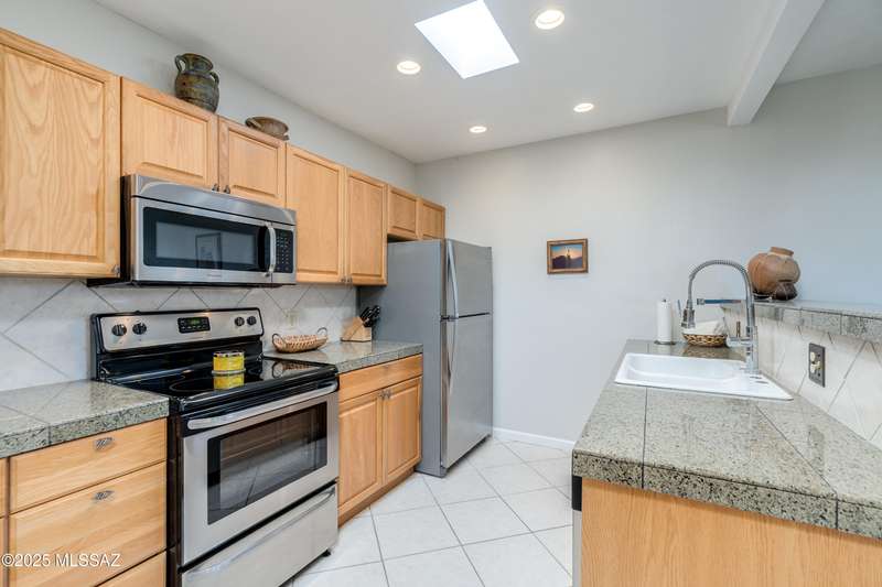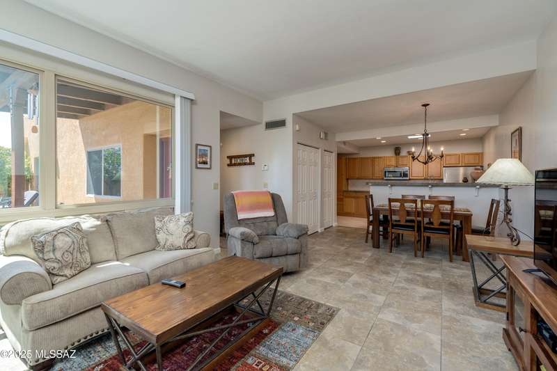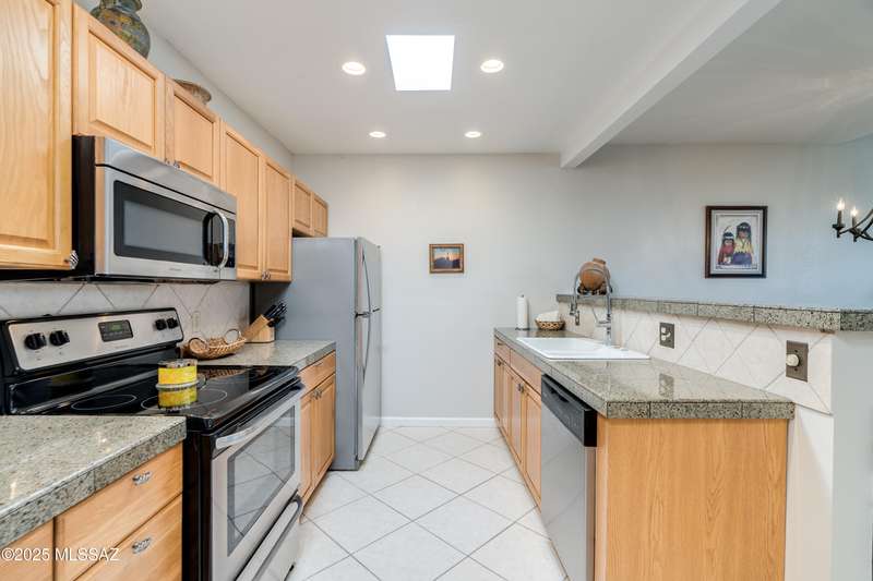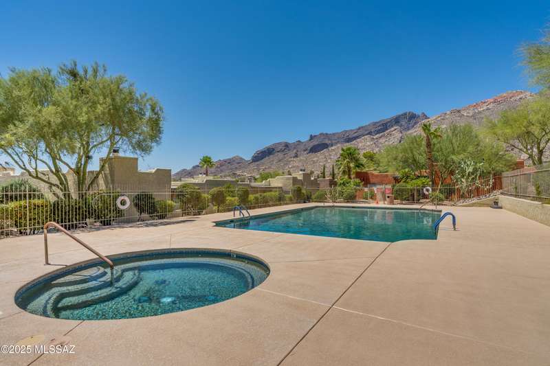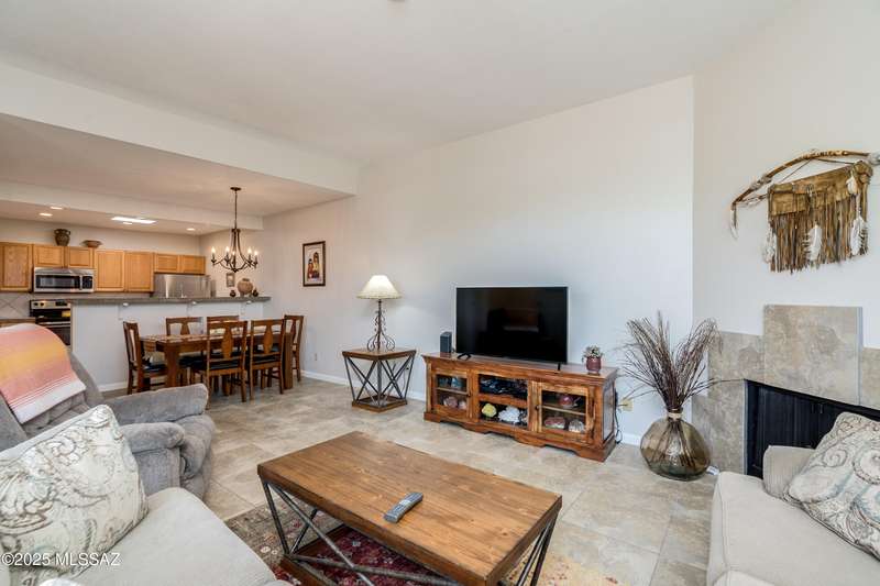 Beautiful updated condo in desirable Reflections in the Catalinas. Great room floor plan with fireplace, high ceilings & natural light makes this unit welcoming. Updated with granite and stainless steel appliances in the kitchen, large ceramic tile flooring. Both baths have been updated. Walk-in closets in both bedrooms plus a laundry room. South-facing and close to parking. Amenities include a pool, spa, rec room, gym, bbq area. HOA covers roof, water, exterior paint. Located near DeGrazia, shopping, dining, hikining, qolf & more!