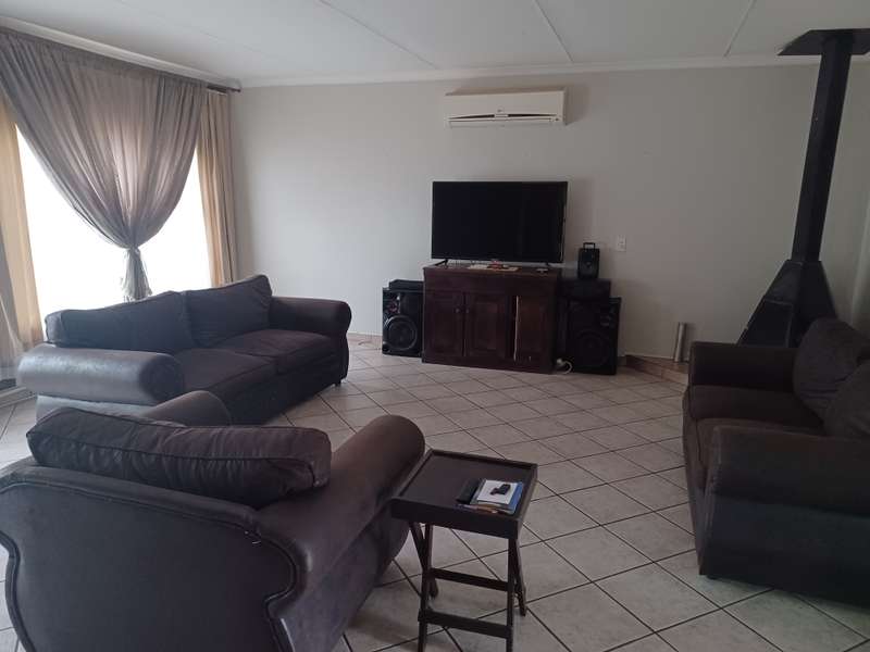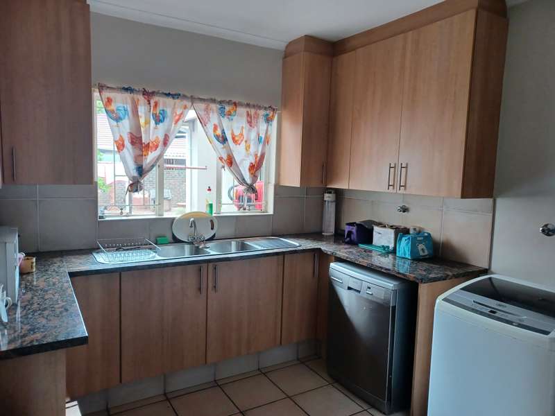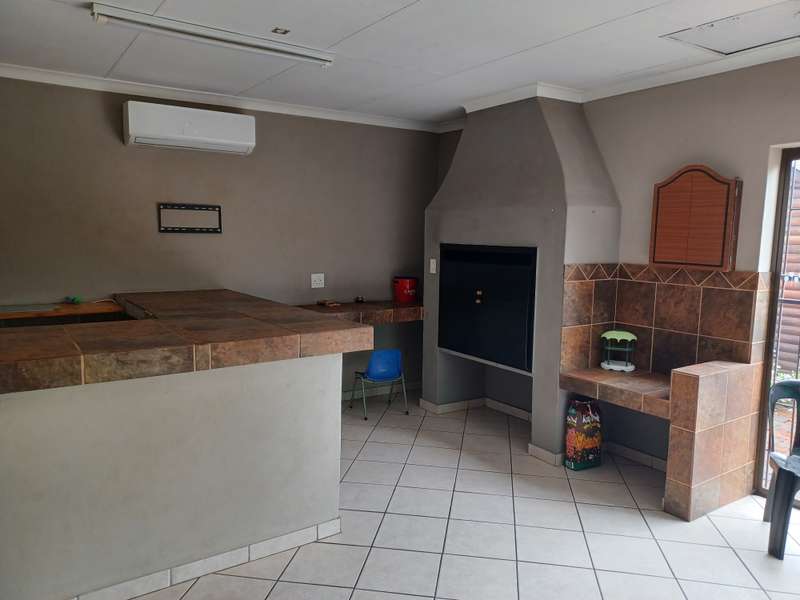 This well kept 3 bedroom 2 bathroom house is situated in a sought after area in Delmas. All bedrooms has built in cupboards and the main bedroom with on suite bathroom. Very nice well designed kitchen with separate scullery, and laundry. 3 Garages with one garage that leads to the back for parking of a 4th vehicle or Caravan. Open plan Lounge and Dinning room, with a nice big enclosed entertainment area with a built in braai. Property fully enclosed with palisades in front, and concrete walls on 3 sides. One big 1 bedroomed flat, with kitchen, bathroom and lounge in the back of the garages. Neatly tiled and very spacious. A Wendy house in the back garden for storing all your garden tools. Well laid out small garden. If you don't like cutting grass, then this one is for you!! 24hour armed security alarm installed with beams in garden. Aircon in main bedroom. This property is well priced, and very neat, just to move in!! Very low maintenance, as most of the outside is face brick. Call me today, and I will gladly take you on a tour!!!