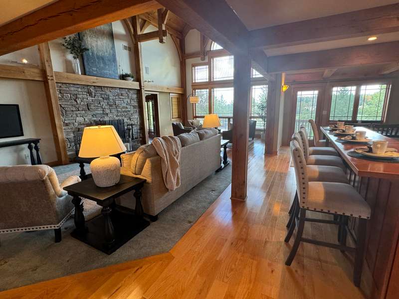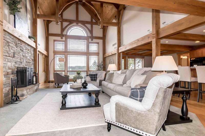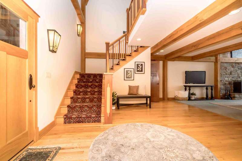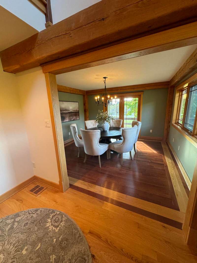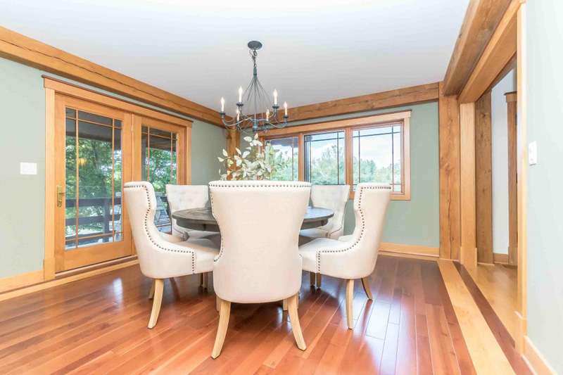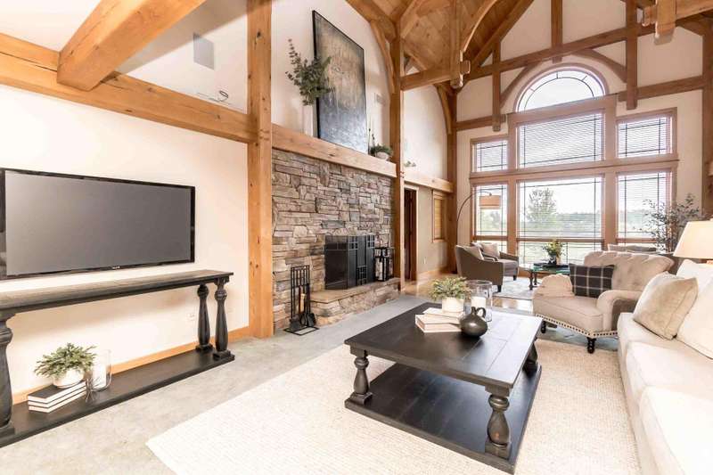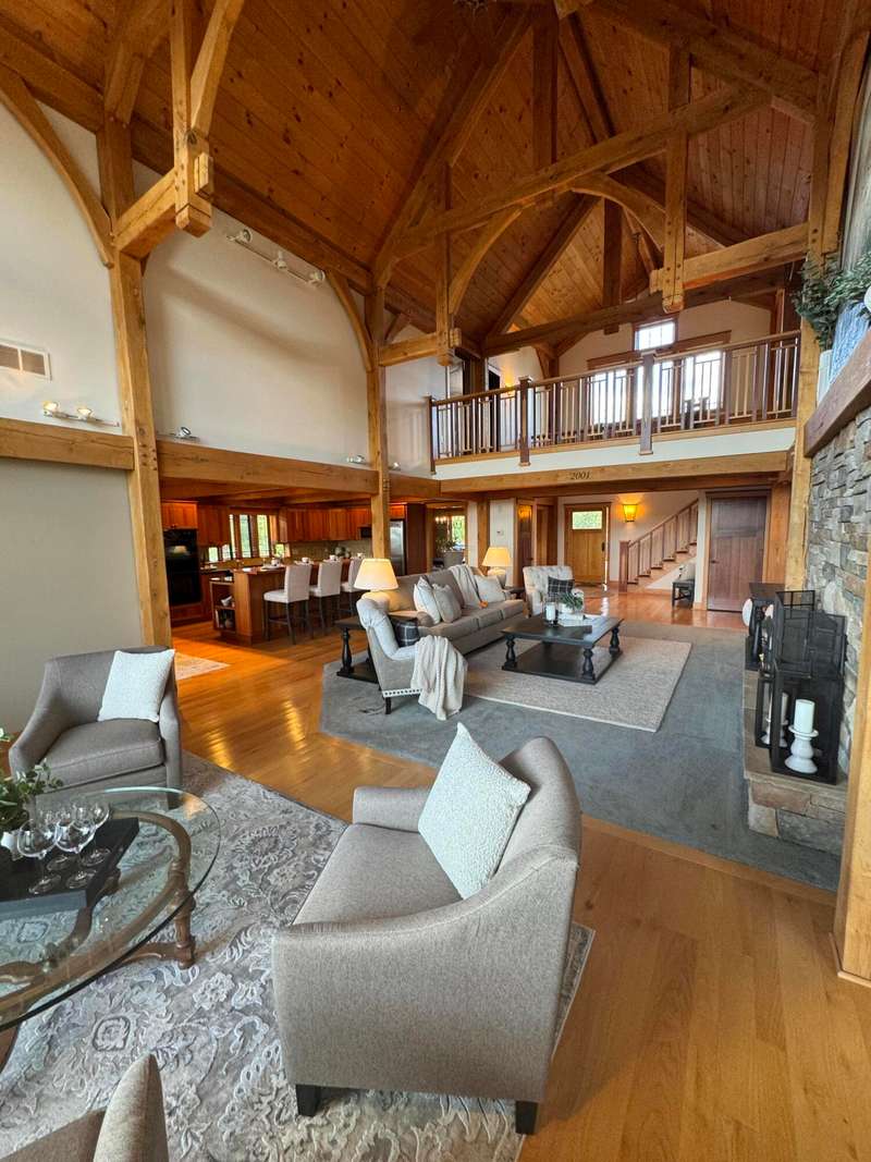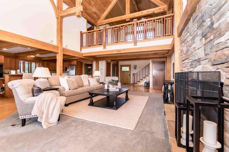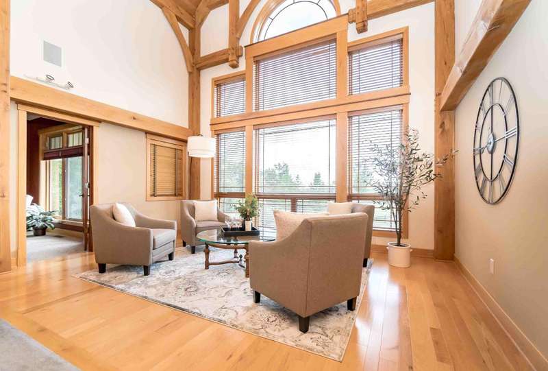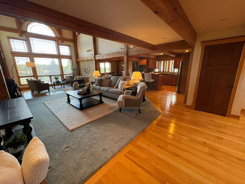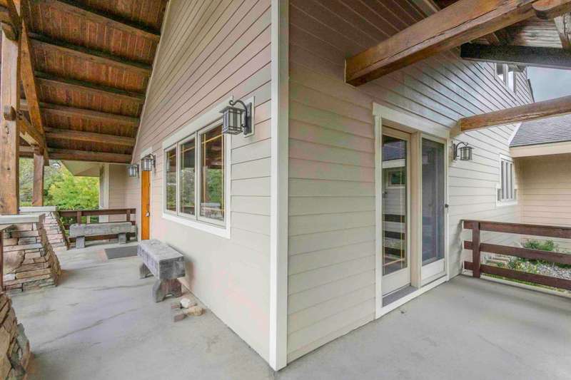 Nestled on a sprawling property, this stunning Timber-frame home offers elegance and modern comfort. With its signature architectural details, exposed beams, wide overhangs, and handcrafted woodwork, this residence exudes charm and craftsmanship. The expansive lot is a nature lover's paradise, offering privacy, lush landscaping, room for horses (or other animals) and plenty of space for outdoor living. Warm hardwood floors and large windows that flood the space with natural light. The gourmet open kitchen features a large center island, a cozy breakfast nook and a formal dining room. The spacious living areas, complete with a stone fireplace and coffered ceilings, create an inviting atmosphere for family gatherings. See new carpet installed! Scroll for updated pictures at the end.