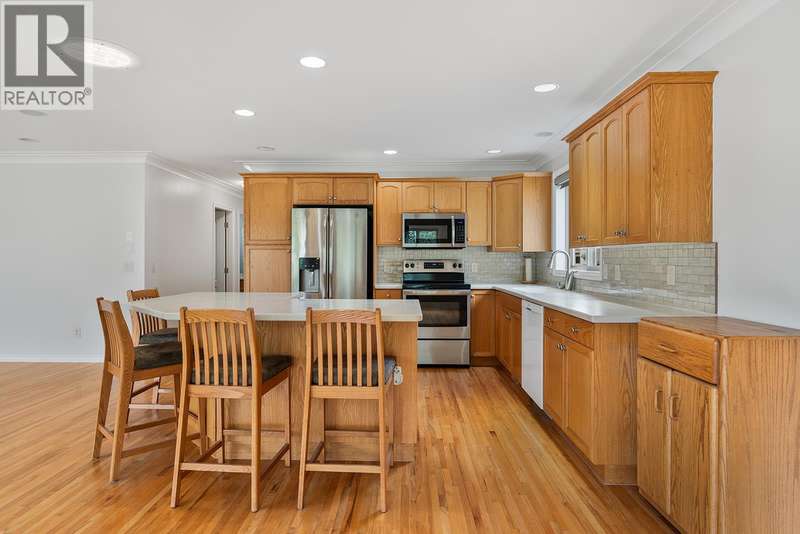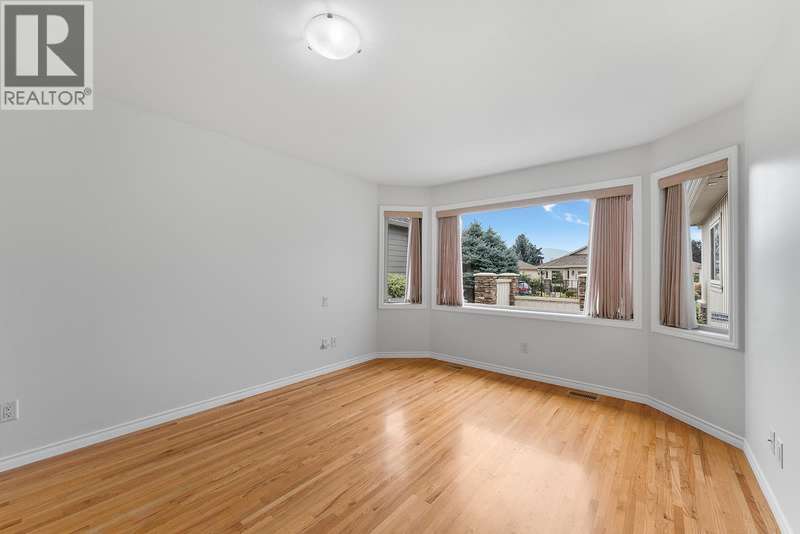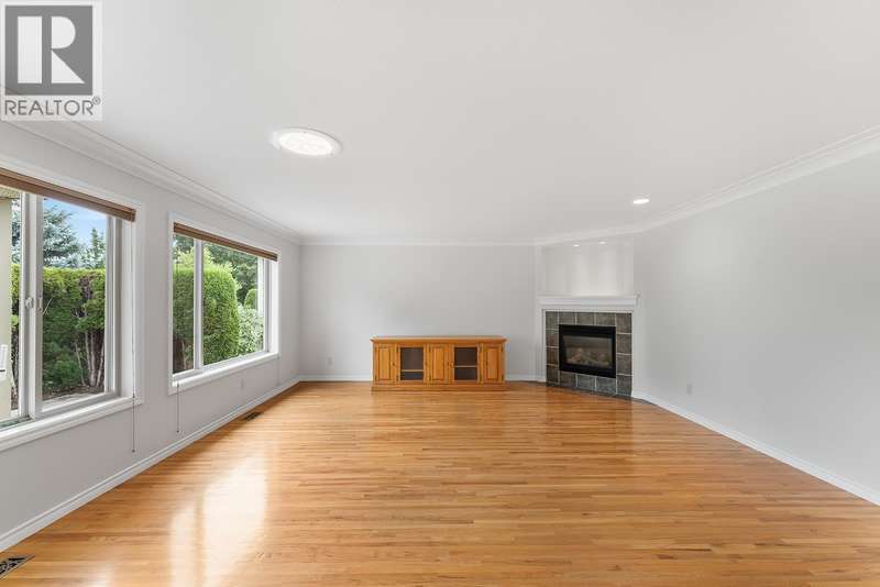 One of the nicest locations in Balmoral! This freshly painted no-step rancher has two bedrooms and a den. Enter through the bright, sunny courtyard into an inviting open-concept living and dining area featuring hardwood floors and large windows that fill the space with natural light. The island kitchen offers Corian countertops, maple cabinetry and a cozy breakfast nook that opens to the Great room with corner gas fireplace and a peaceful covered patio backing onto the greenbelt. The primary bedroom includes three closets and a newly updated 3-piece ensuite. The additional bedroom, den and a 4-piece main bathroom provide flexibility for guests or office space. The mudroom includes a washer/dryer, a laundry sink, plenty of cabinets and access to the crawl space. The double garage is a good size with cabinets and a workbench. Additional features include PEX plumbing, 100-amp service, Hot water on demand, amazing solatubes and a built-in vacuum! Located in a walkable neighborhood close to shopping, dining, medical offices, and transit, this is retirement living at its best! (id:7434)