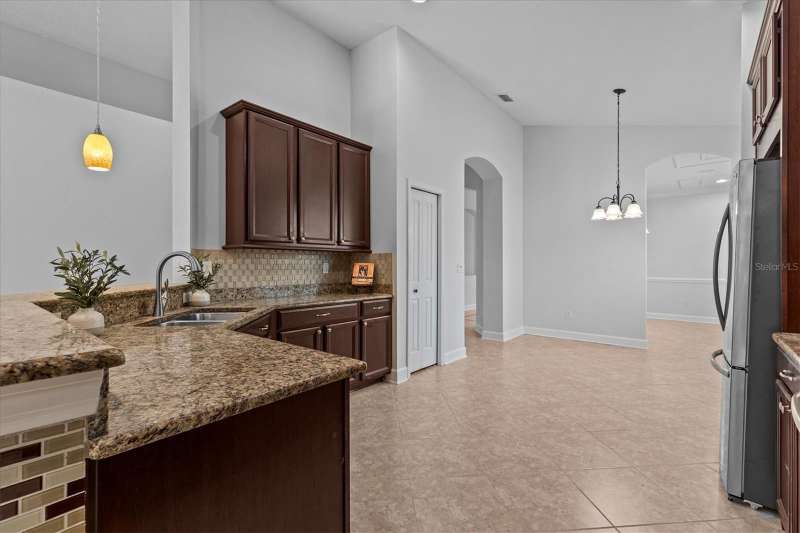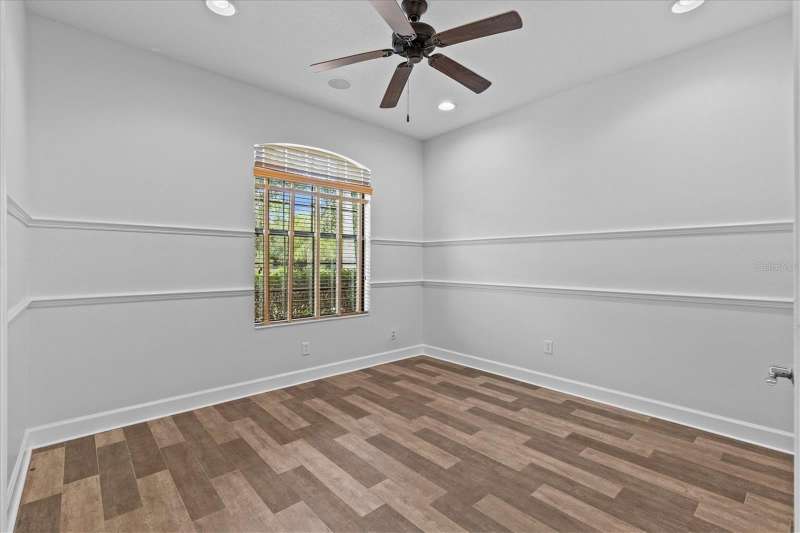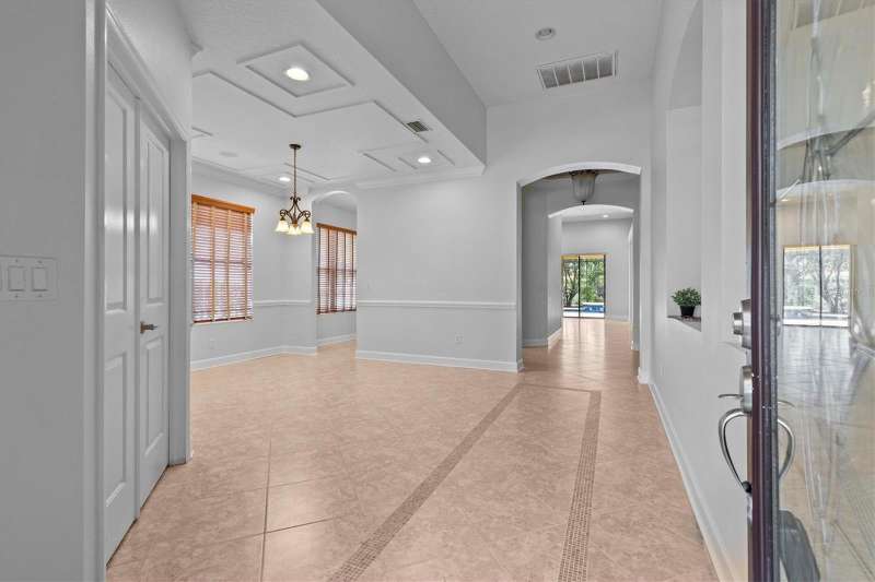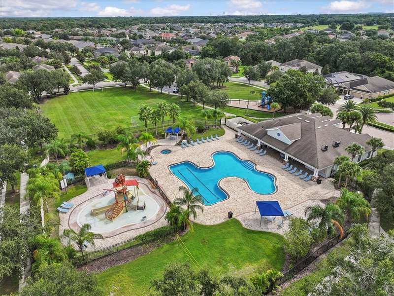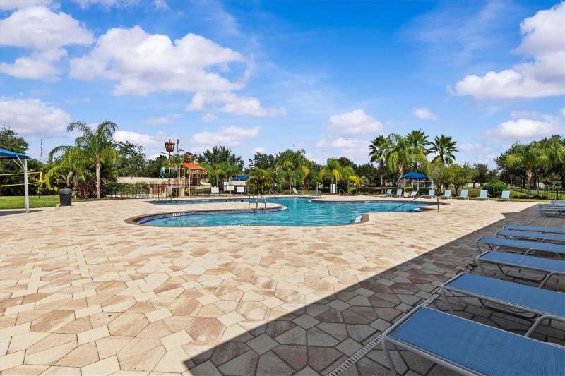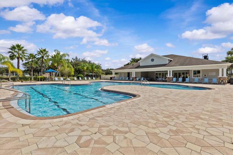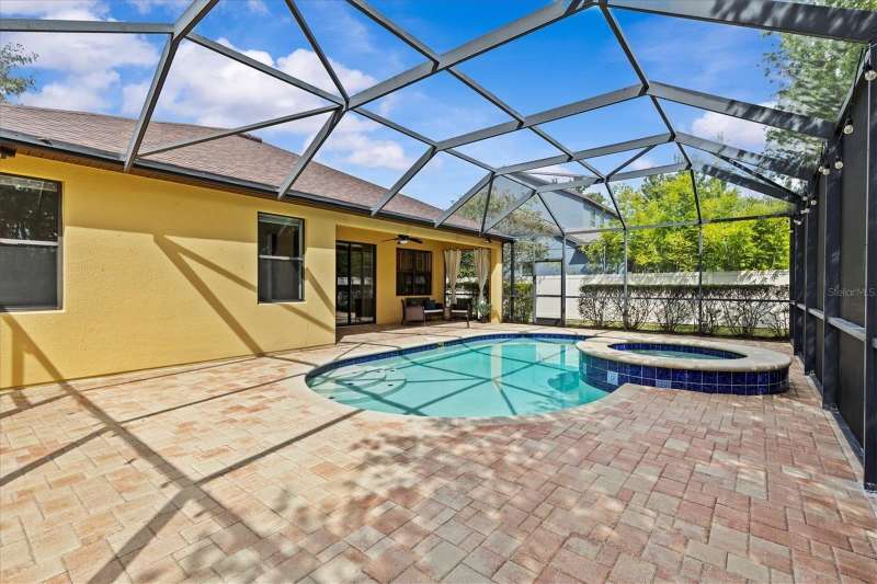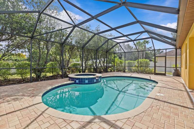 Under contract-accepting backup offers. Former Model Home with deluxe style Pool in Channing Park! Welcome to this stunning upgraded home with soaring ceilings, custom trim work throughout, private pool, spa, and new screened enclosure, perfectly located in the highly desirable Channing Park community of Fish Hawk. This beautifully maintained 3-bedroom, 2-bathroom, 3-car garage home offers the ideal single-story layout with a thoughtful split floor plan, stylish design features and upgrades throughout. Step inside to find fresh interior paint, upgraded luxury vinyl plank and tile flooring (no carpet!), a private office with solid French doors, a formal dining room, and a spacious family room. The open kitchen is a true centerpiece with granite countertops, full backsplash, breakfast bar with pendant lighting, breakfast nook, and NEW stainless-steel appliances (dishwasher and refrigerator – 2025). Your primary suite retreat includes private pool access, walk-in closet, and a spacious bathroom with dual vanities, garden tub, and a walk-in shower. Two additional bedrooms share a full bath, offering comfort and convenience for family or guests. The backyard is designed for relaxation and entertaining with a screened lanai, paver decking, sparkling pool, and spa, all overlooking lush landscaping with no rear neighbors close by. Major updates bring peace of mind with a NEW ROOF (2024), a gas water heater, whole-home water softener, plus washer & dryer included. Enjoy resort-style amenities just down the street, including a clubhouse, community pool, splash park, playgrounds, basketball courts, skate park, dog park, and more. Located minutes from top-A rated schools, shopping, dining, healthcare, major highways, Lithia Springs Park, and Alafia River State Park, this home truly offers the best of location and lifestyle.