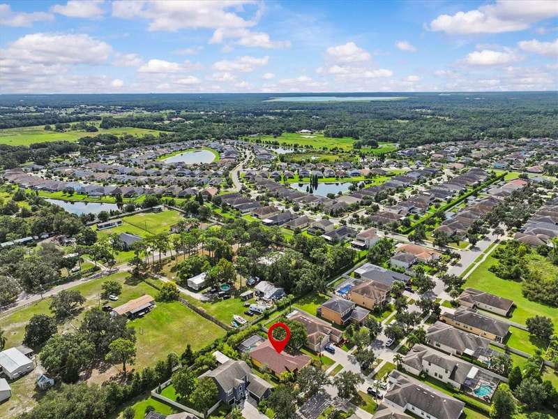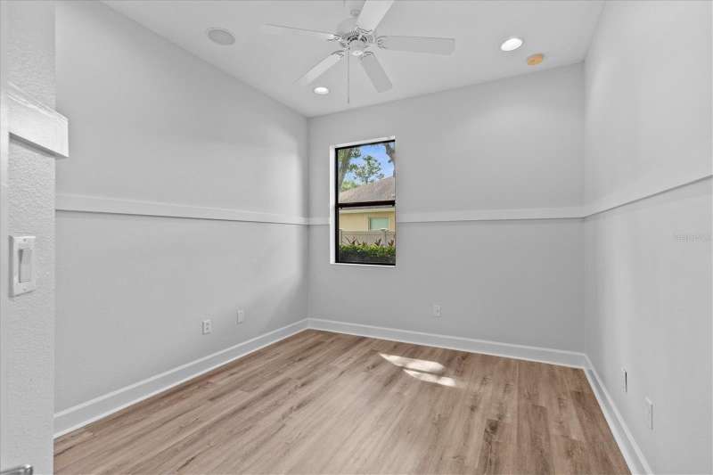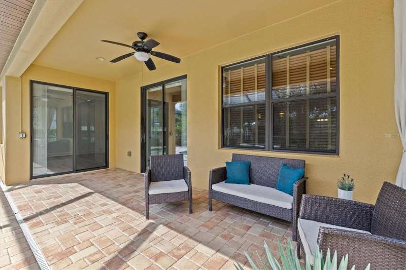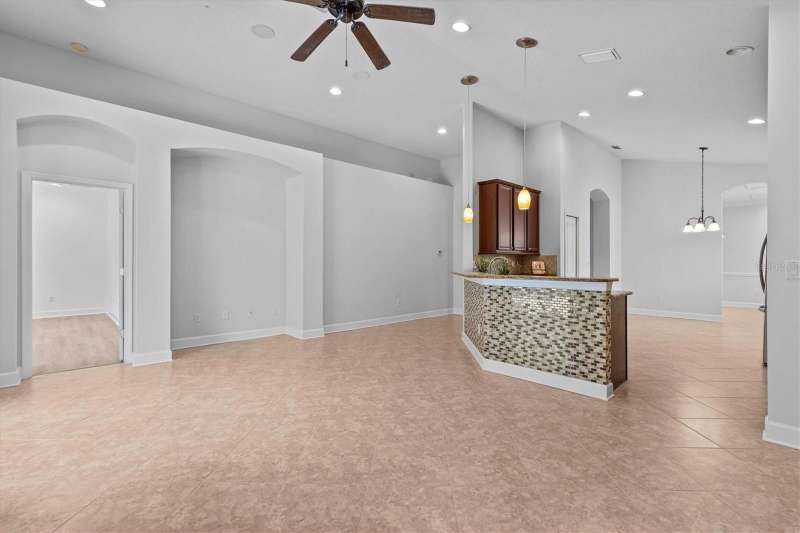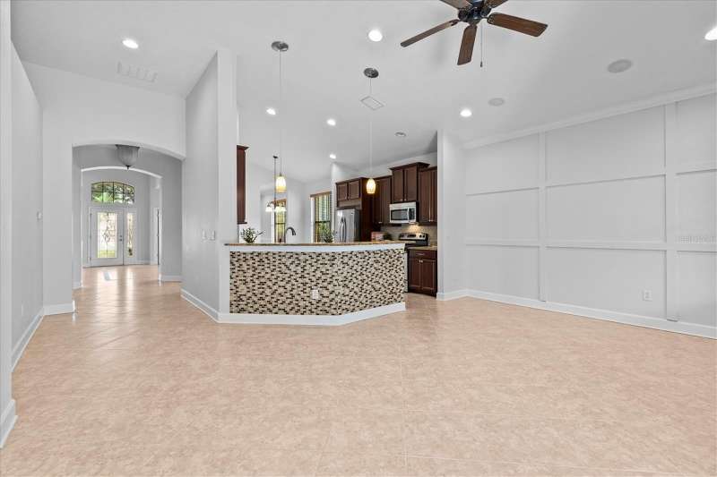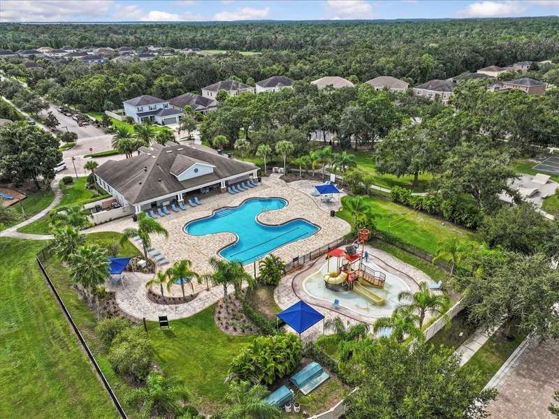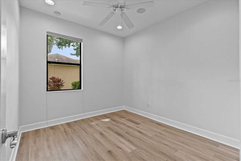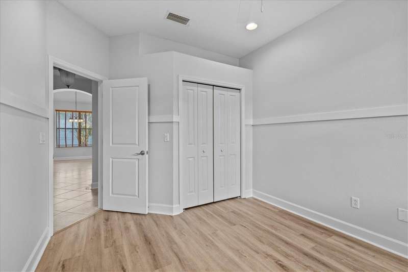 Under contract-accepting backup offers. Former Model Home with deluxe style Pool in Channing Park! Welcome to this stunning upgraded home with soaring ceilings, custom trim work throughout, private pool, spa, and new screened enclosure, perfectly located in the highly desirable Channing Park community of Fish Hawk. This beautifully maintained 3-bedroom, 2-bathroom, 3-car garage home offers the ideal single-story layout with a thoughtful split floor plan, stylish design features and upgrades throughout. Step inside to find fresh interior paint, upgraded luxury vinyl plank and tile flooring (no carpet!), a private office with solid French doors, a formal dining room, and a spacious family room. The open kitchen is a true centerpiece with granite countertops, full backsplash, breakfast bar with pendant lighting, breakfast nook, and NEW stainless-steel appliances (dishwasher and refrigerator – 2025). Your primary suite retreat includes private pool access, walk-in closet, and a spacious bathroom with dual vanities, garden tub, and a walk-in shower. Two additional bedrooms share a full bath, offering comfort and convenience for family or guests. The backyard is designed for relaxation and entertaining with a screened lanai, paver decking, sparkling pool, and spa, all overlooking lush landscaping with no rear neighbors close by. Major updates bring peace of mind with a NEW ROOF (2024), a gas water heater, whole-home water softener, plus washer & dryer included. Enjoy resort-style amenities just down the street, including a clubhouse, community pool, splash park, playgrounds, basketball courts, skate park, dog park, and more. Located minutes from top-A rated schools, shopping, dining, healthcare, major highways, Lithia Springs Park, and Alafia River State Park, this home truly offers the best of location and lifestyle.